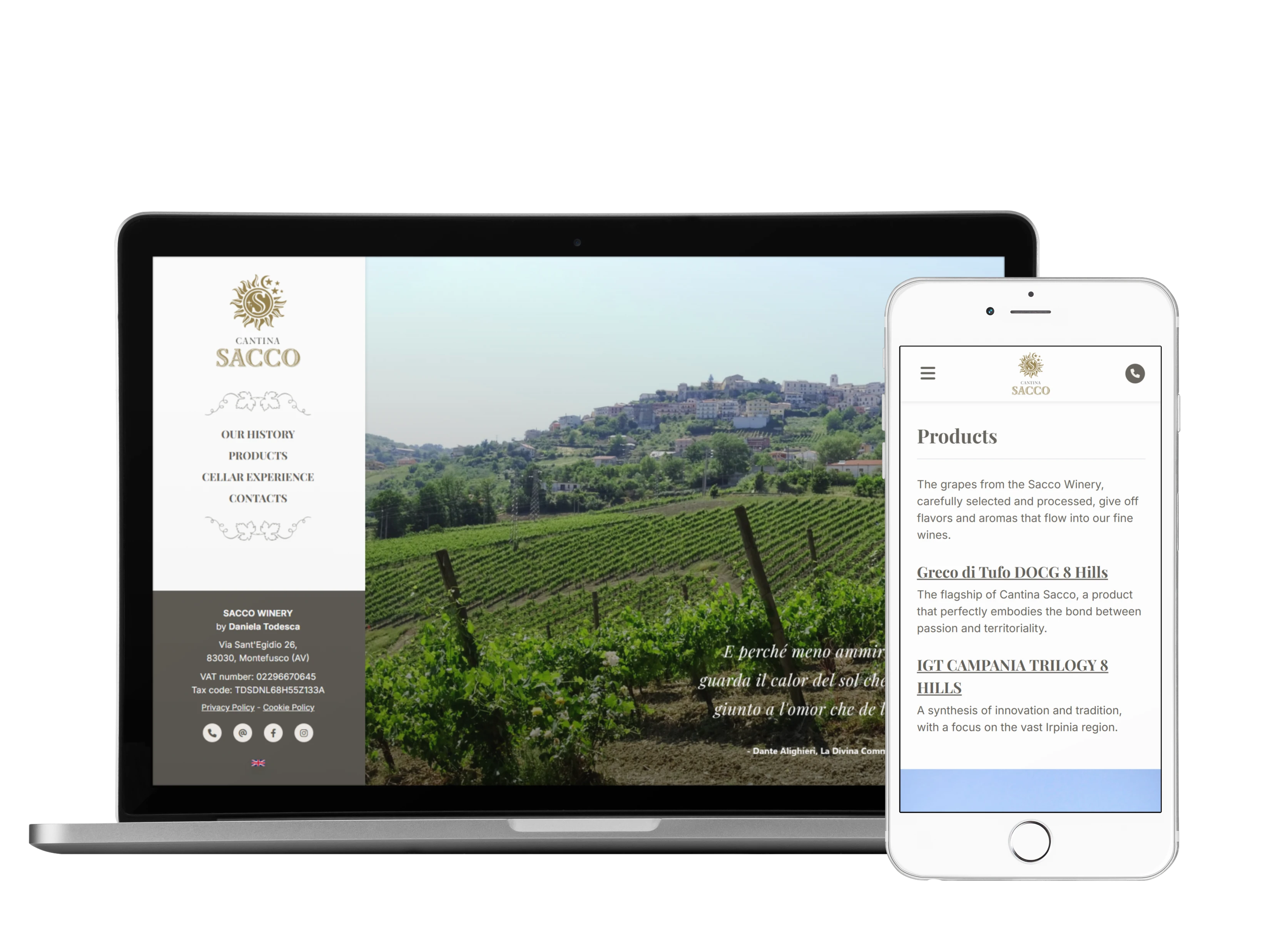 For Cantina Sacco, a winery rooted in tradition and terroir in Montefusco, Italy, I created a bespoke website experience that reflects the brand’s passion for slow-crafted wines and regional heritage. The design focuses on clean visuals and intuitive flow to highlight the winery’s story and product catalog while enhancing the overall brand perception online.