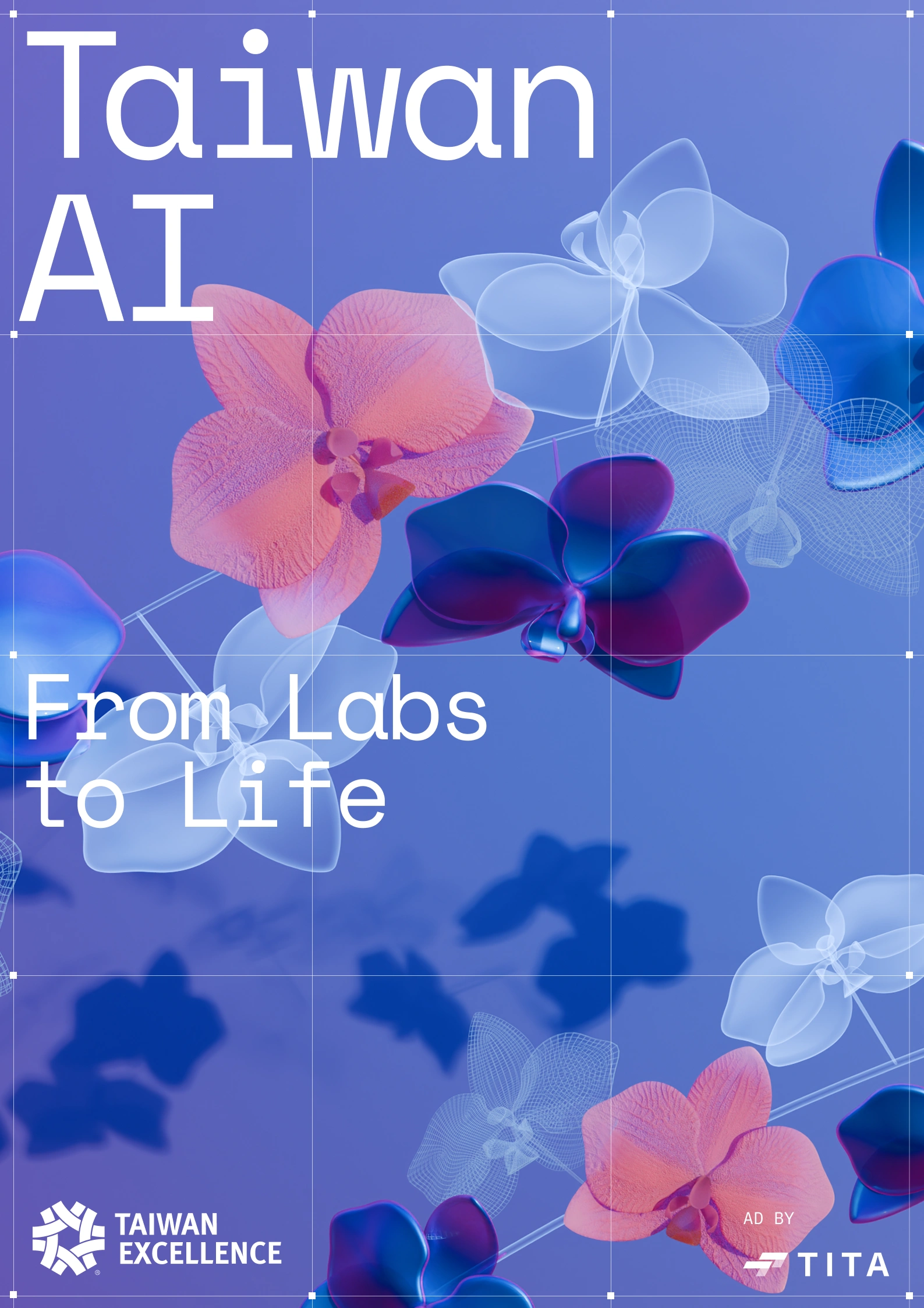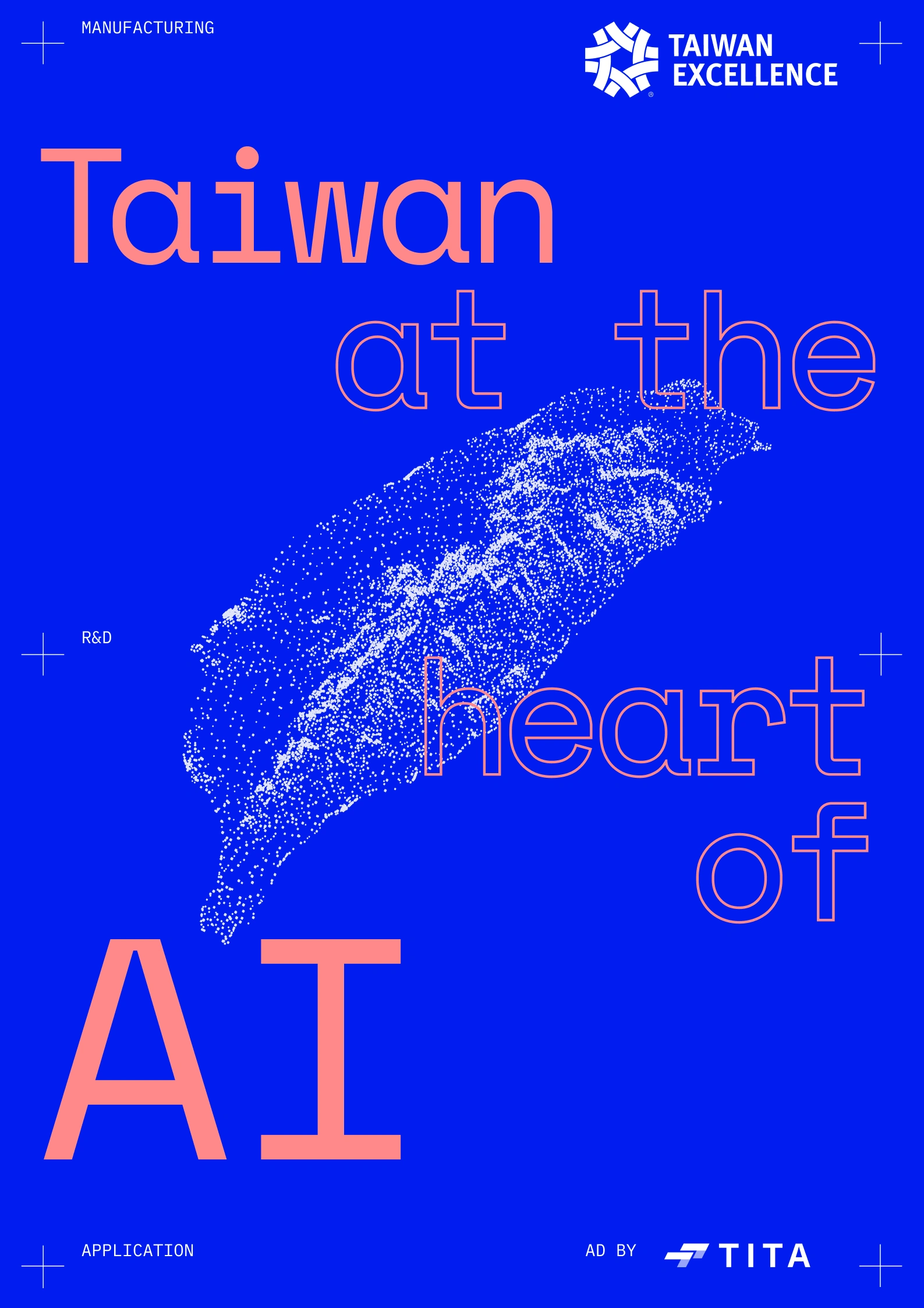 For the first key visual, the core concept was to connect Taiwan's unique topography as the starting element for a series of transformations, visually linking real shapes like the island, the globe, and the city with more abstract concepts like data-processing and neural networks. We developed a particle system to trace and outline these shapes, providing a perfect animation system to transition from one shape to the next.