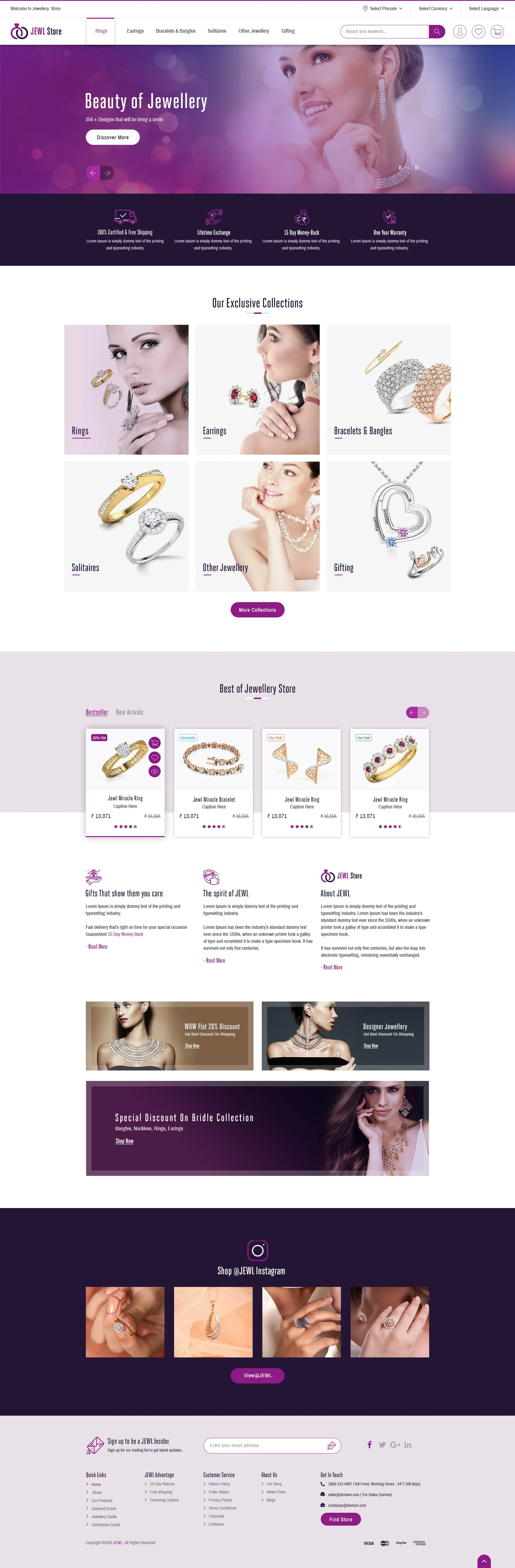 The jewellery store landing page is designed to showcase elegance, craftsmanship, and trust through a refined e-commerce experience.