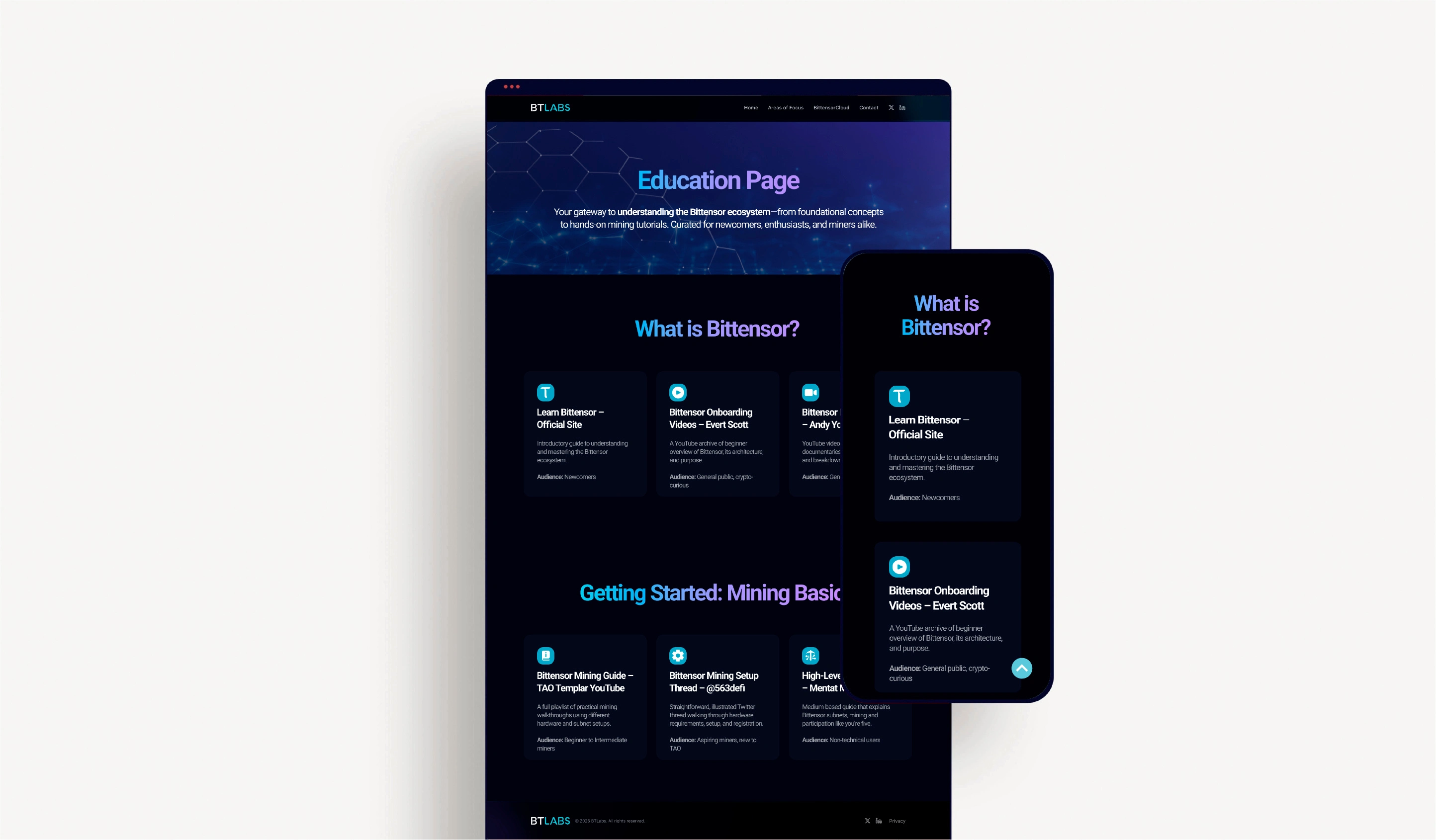 Developed brand and website design for BTLABS with a deep-tech aesthetic.