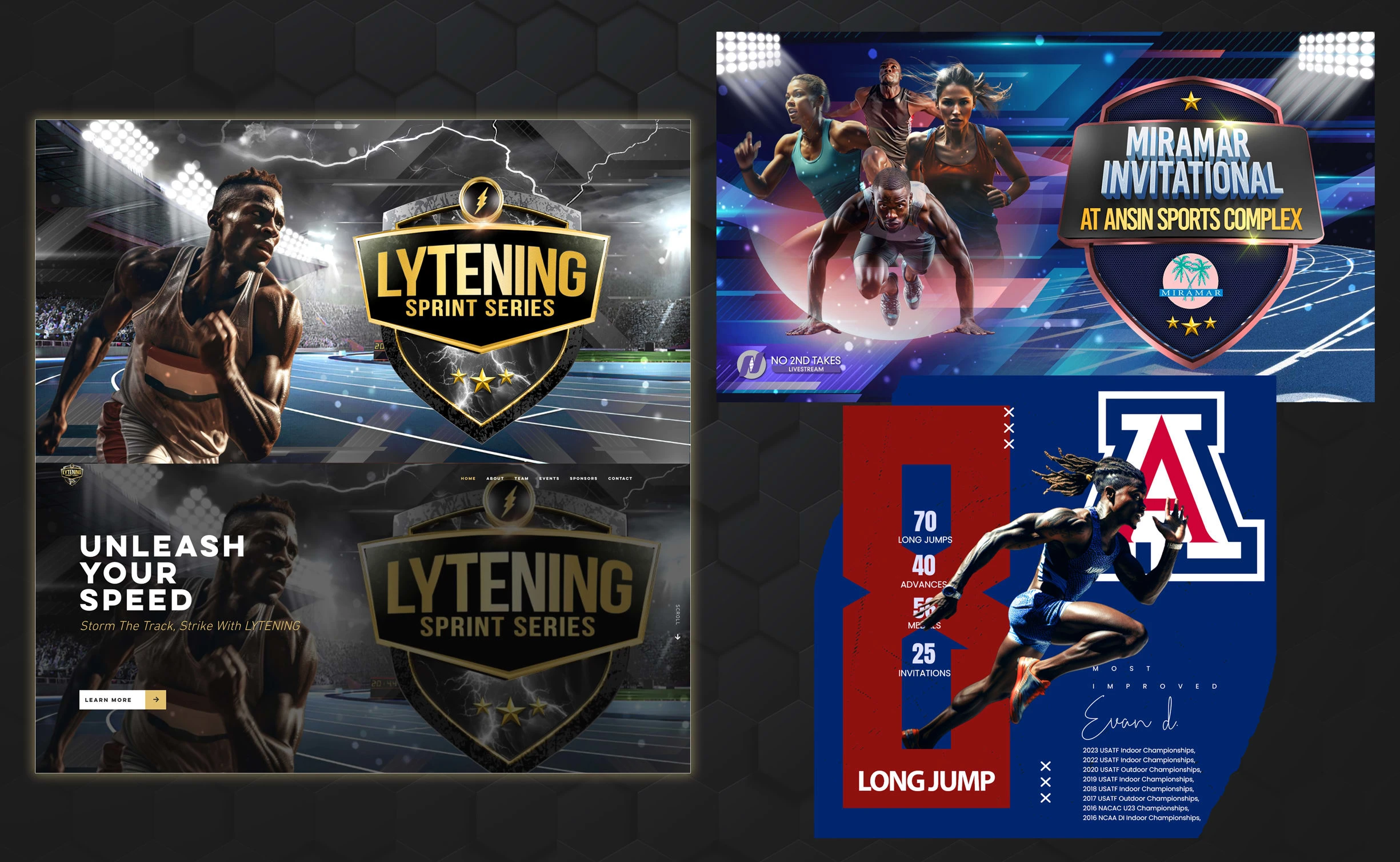 Created a graphics package for an International Track & Field event. Graphics included player profiles, a landing page, and a promotional event graphic.