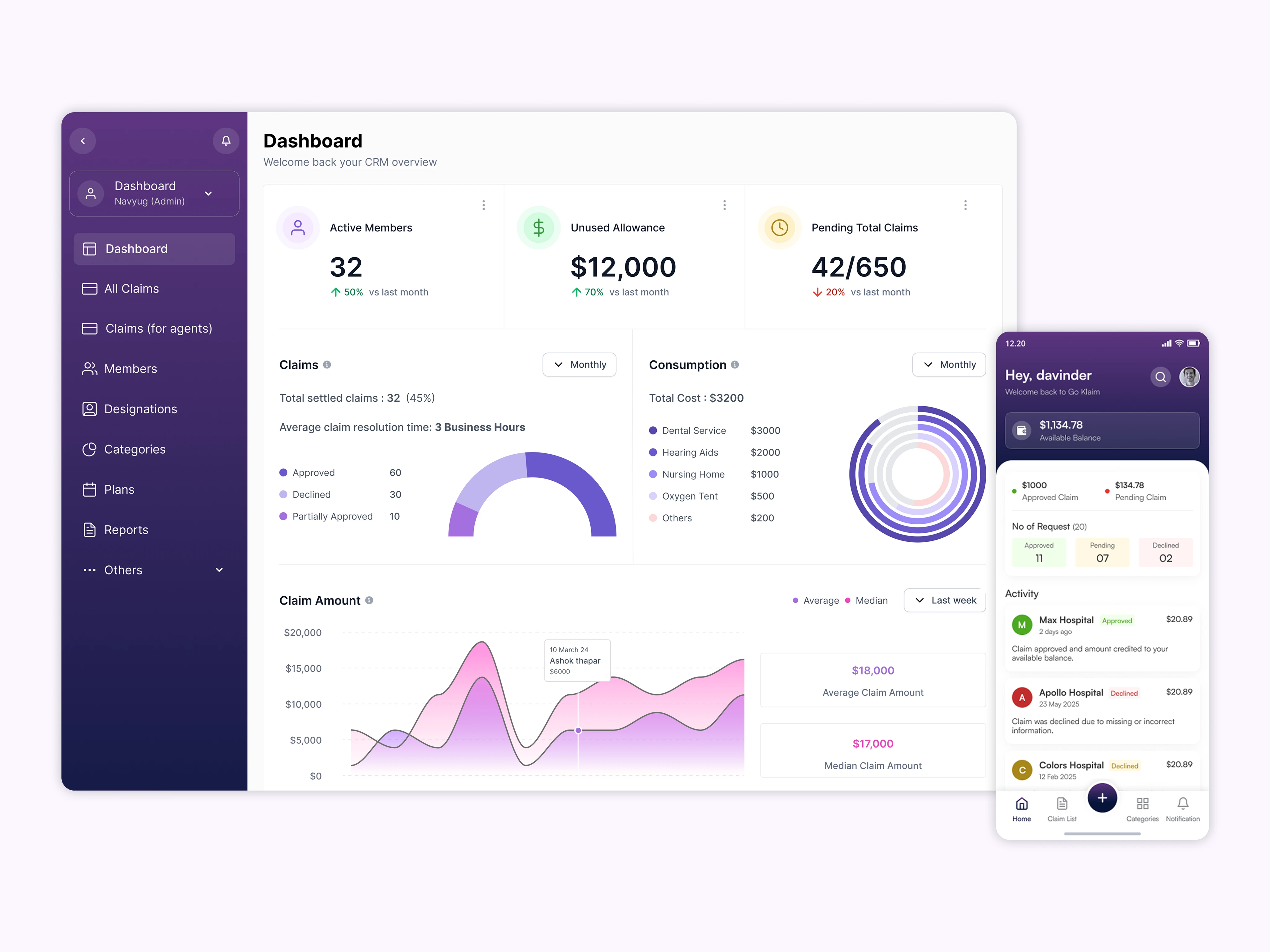 Designed an end-to-end B2B SaaS claims platform for enterprises - spanning web and mobile, launched demo-ready in 8 weeks with scalable UX and clear workflows.