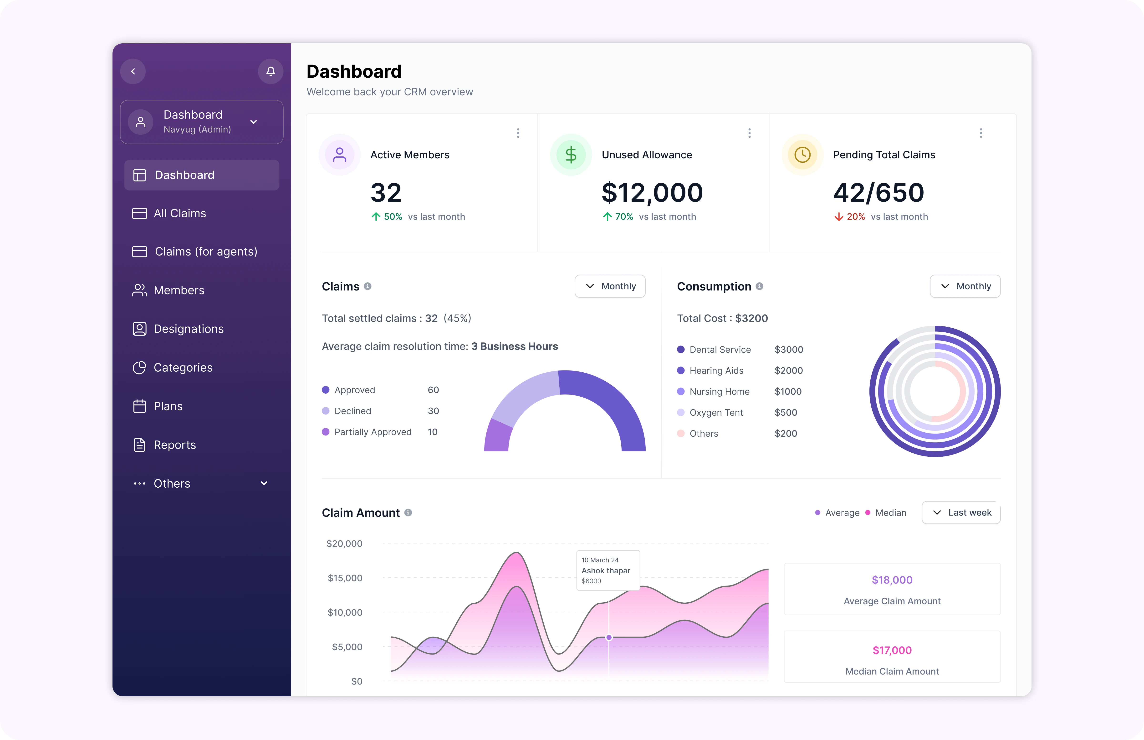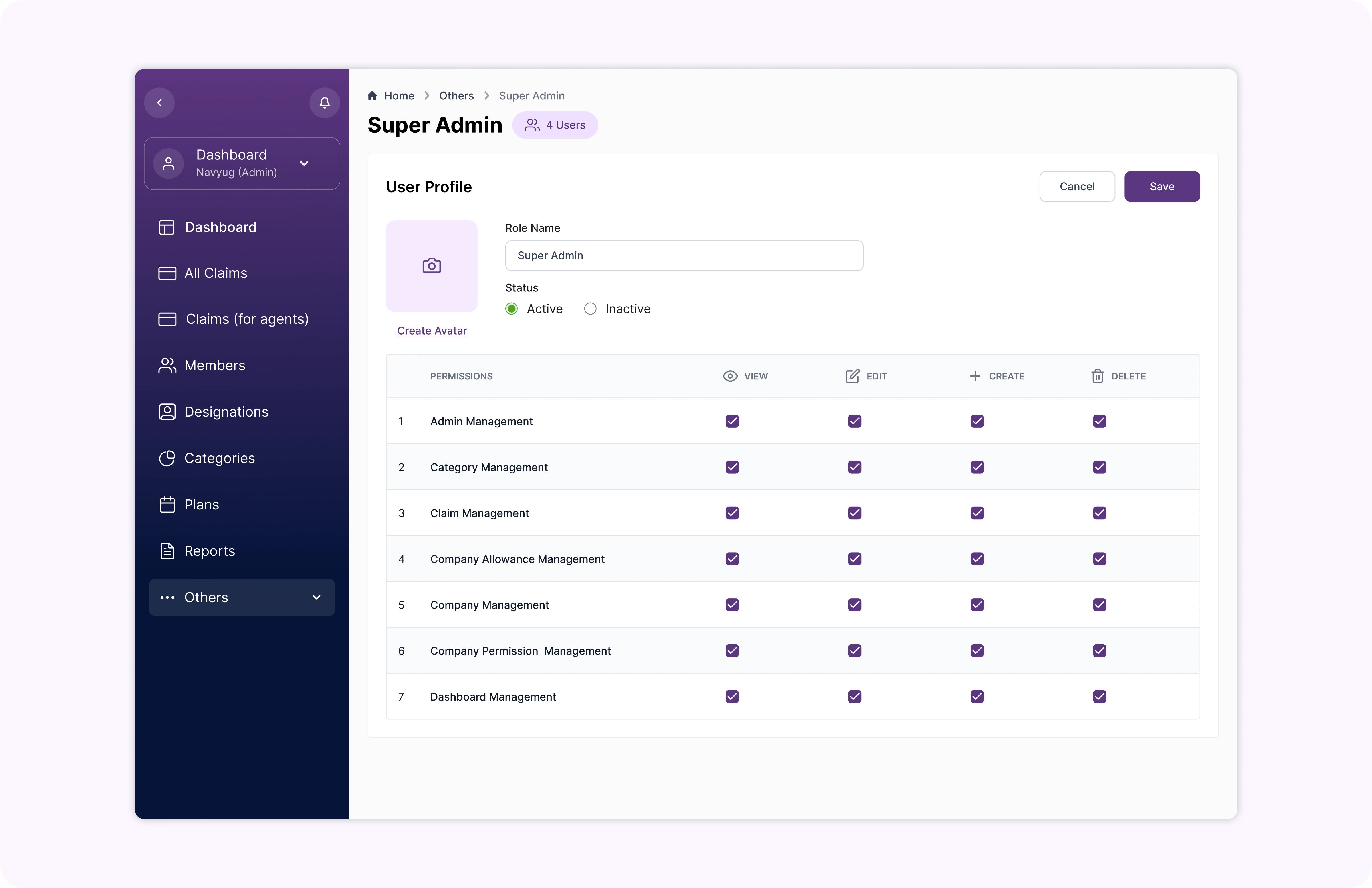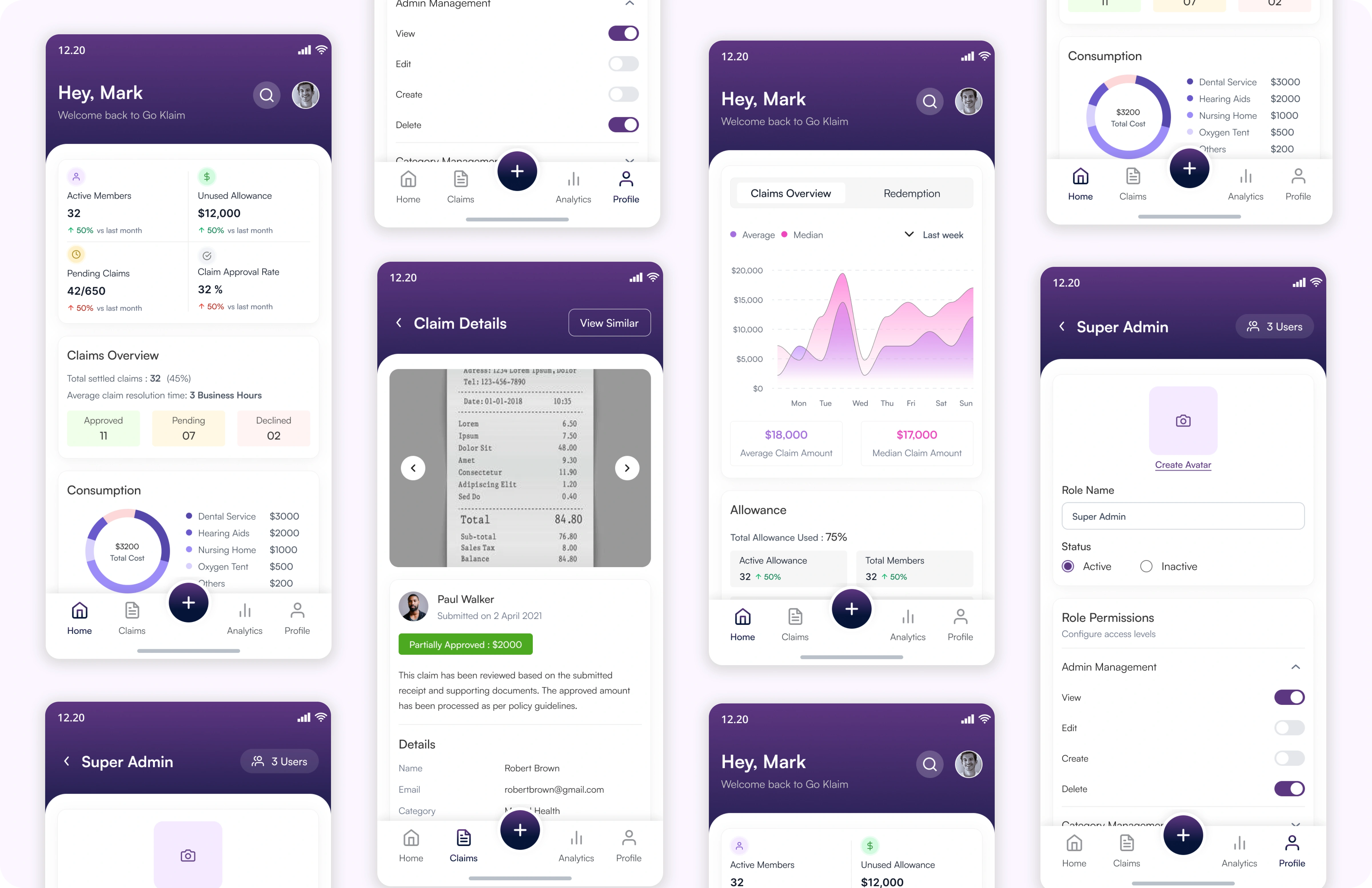 Role based access and management (Super admins, admins, claim agents)