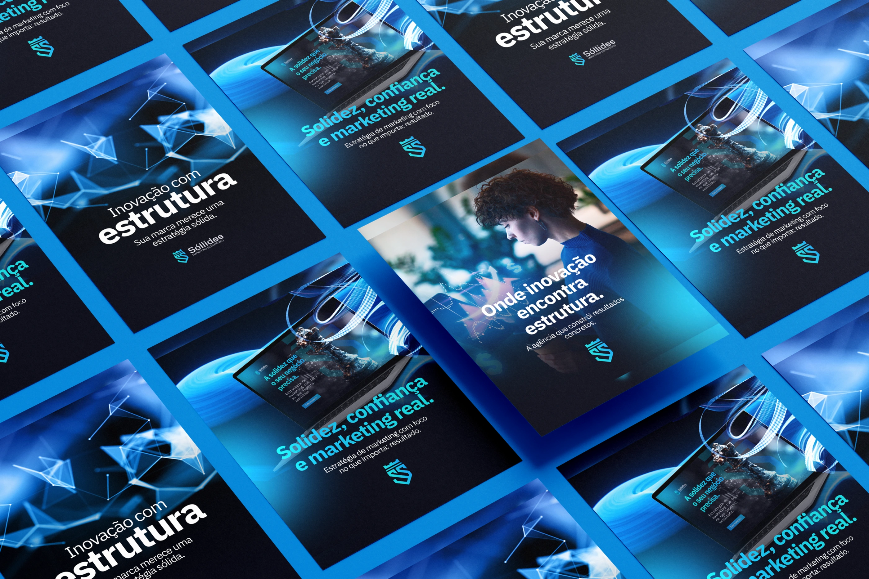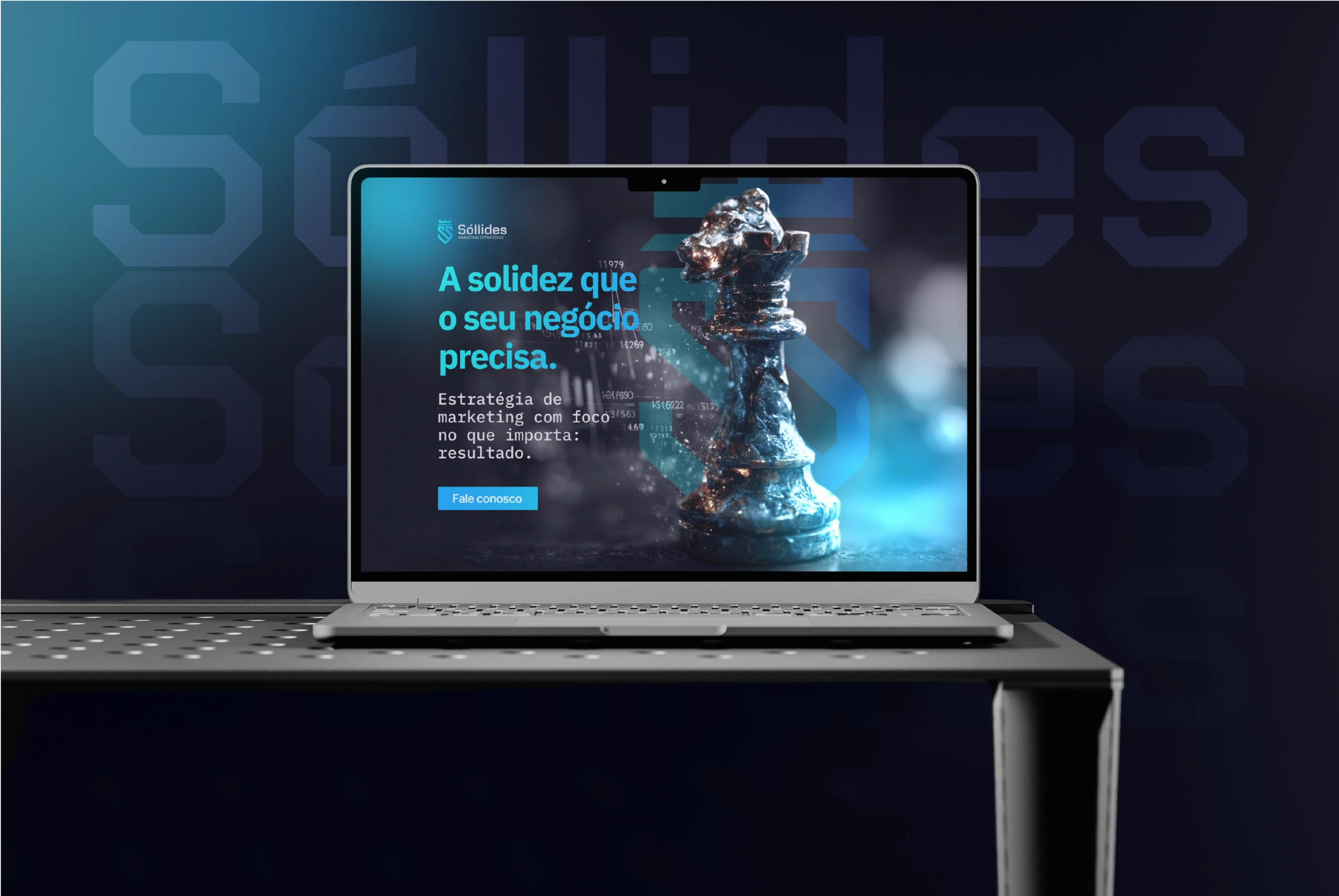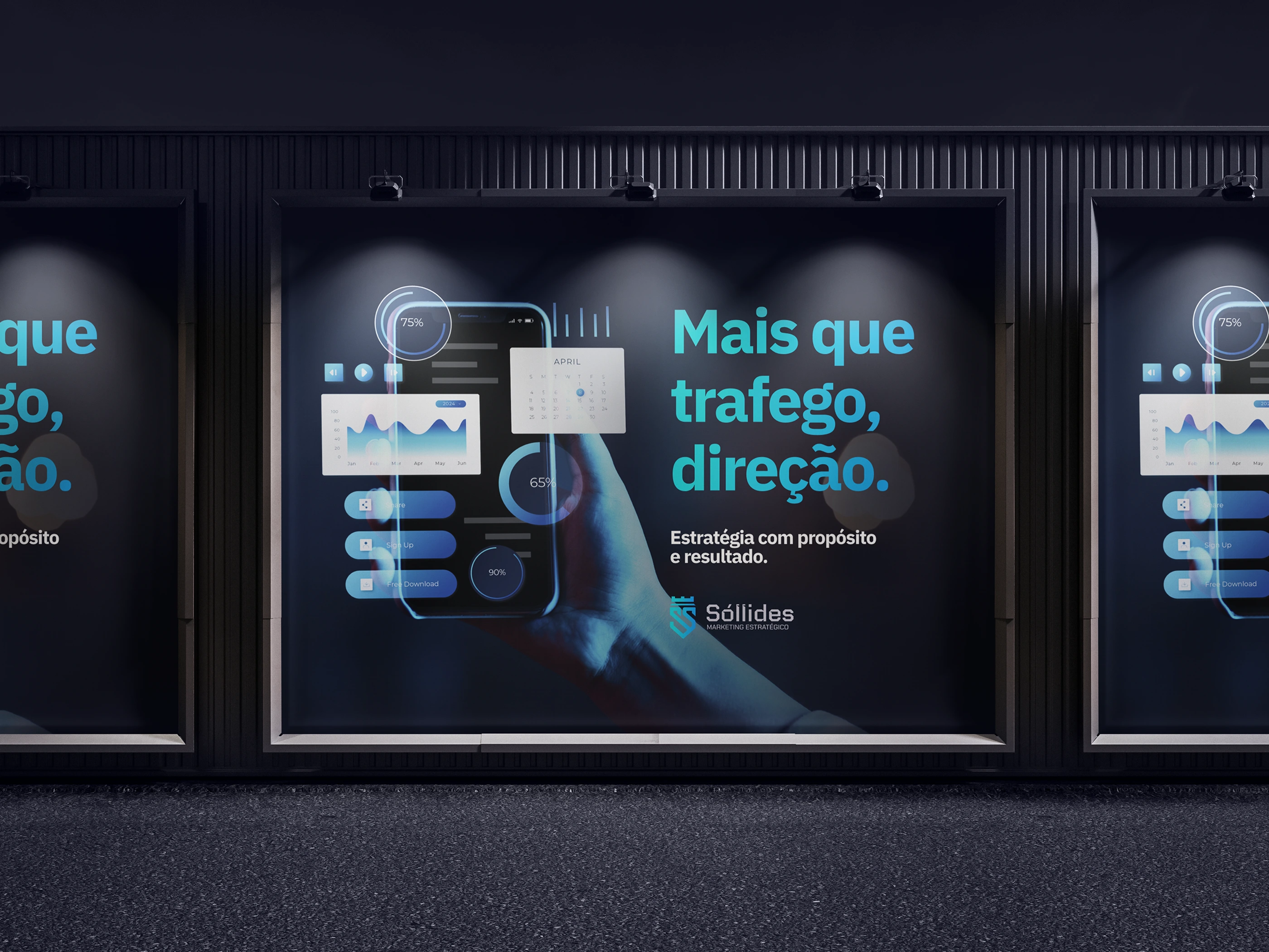 Sóllides is a digital marketing agency specialized in paid traffic, offering strategic solutions for Brazilian entrepreneurs in the US and Brazil. Its visual identity combines modernity and minimalism, conveying trust, innovation, and professionalism.