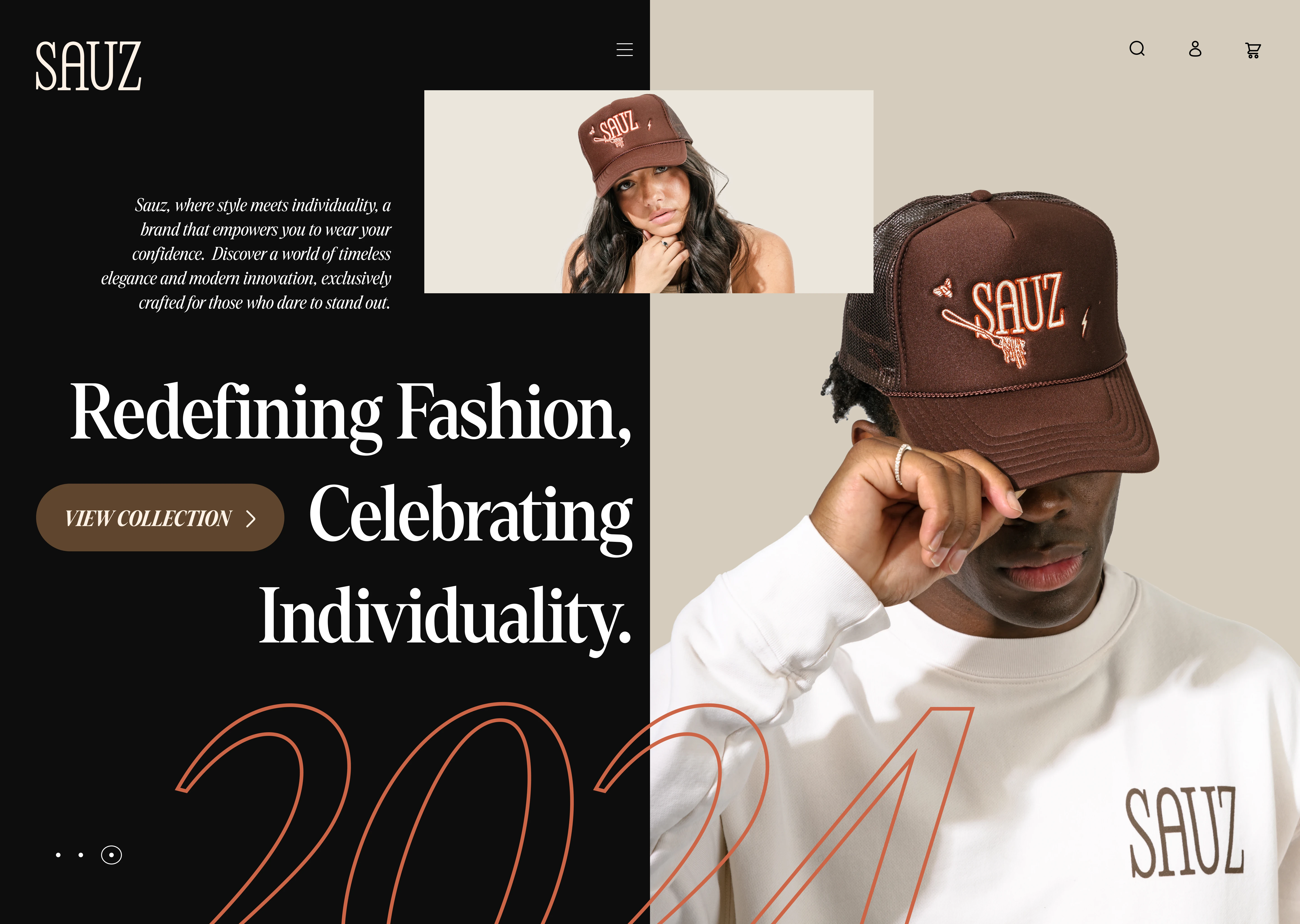 The clothing store hero section created for SAUZ successfully merges the brand's identity with its new venture into clothing. The design not only captures attention but also effectively communicates SAUZ's story, encourages user interaction, and contributes to an overall positive online shopping experience.