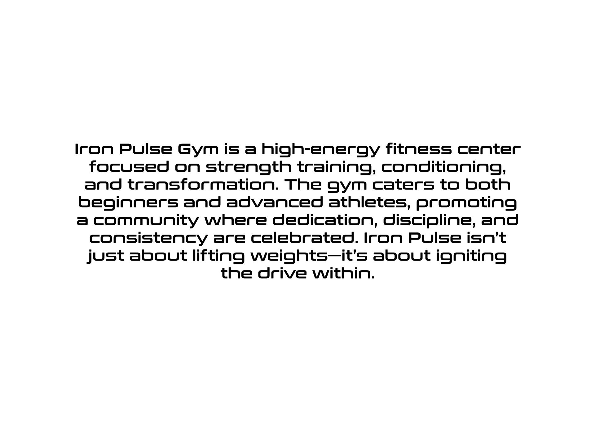 Iron Pulse – Fuel Your Potential! High-energy gym for strength, conditioning, and transformation. Join the movement, achieve your goals.