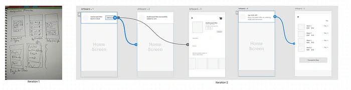 The Feature-led solutions were now converted into wireframes to see how they might work and impact the experience of the users.