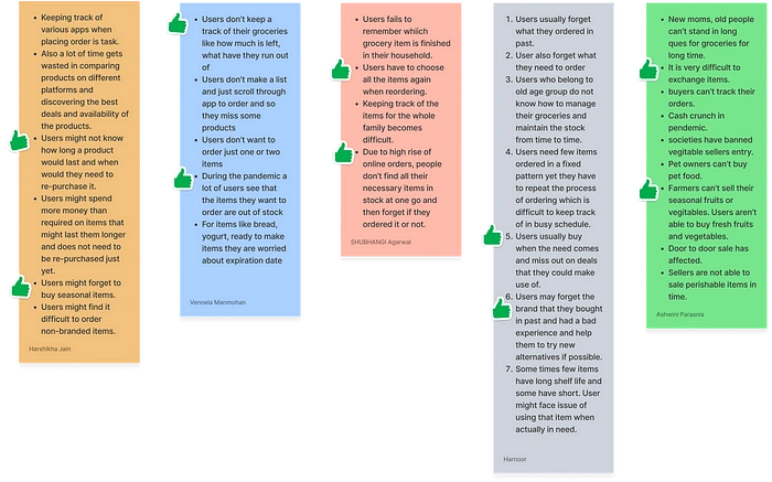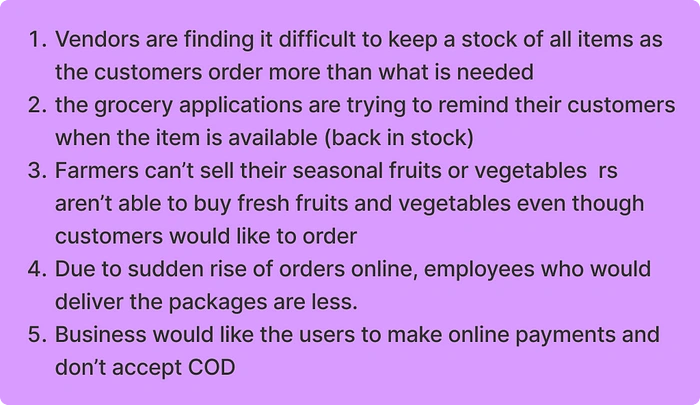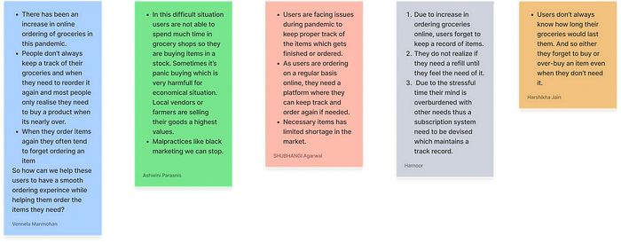 We all agreed that this problem needs to be addressed. It’s better to order groceries online than step out in this pandemic. Many new users have started using this service so it will be easy to reach more users. We thought that it would be a good problem to solve and we could also get good research insights within the time we have on our table.