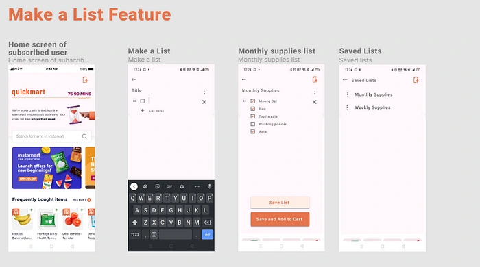 Make a List feature: This feature will help the users to create and save their list of items which can be used repeatedly for placing the order.
