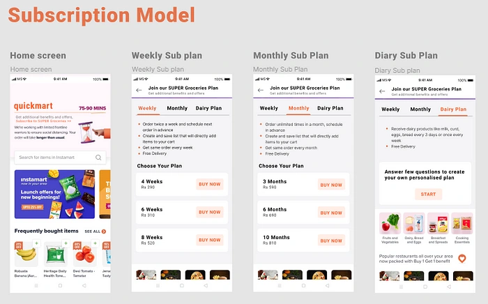 Witnessing the changes that are here to stay due to Covid this project is focused on understanding the pain points, the journey of user buying grocery online and design a subscription plan that will reduce the hassle a user has to go through.