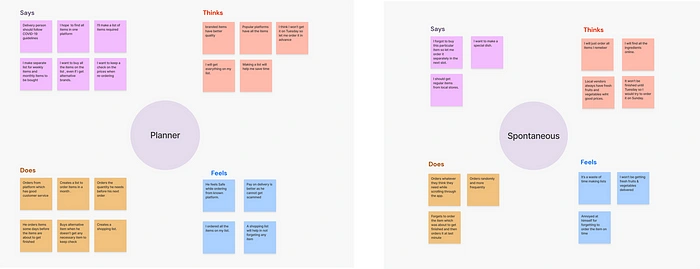 This task helped us know the user better and how they think, act and feel. We made Empathy Maps for two user sets the Planner and the Spontaneous.