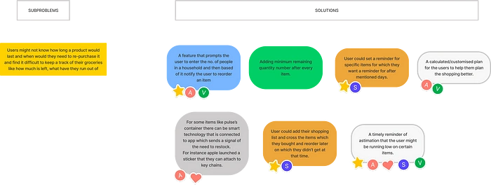 We then made assumptions of users and the industry around the subproblems in order to help in the brainstorming exercise as well as to dig deep inside the problem and think of it from every perspective.