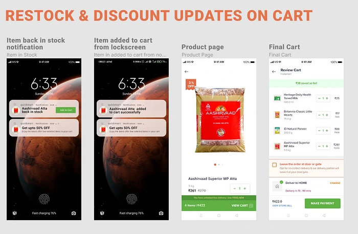 Notifications/ Reminders: This Feature will help users get the best deals. They would also be notified when a sold-out item is back in stock.