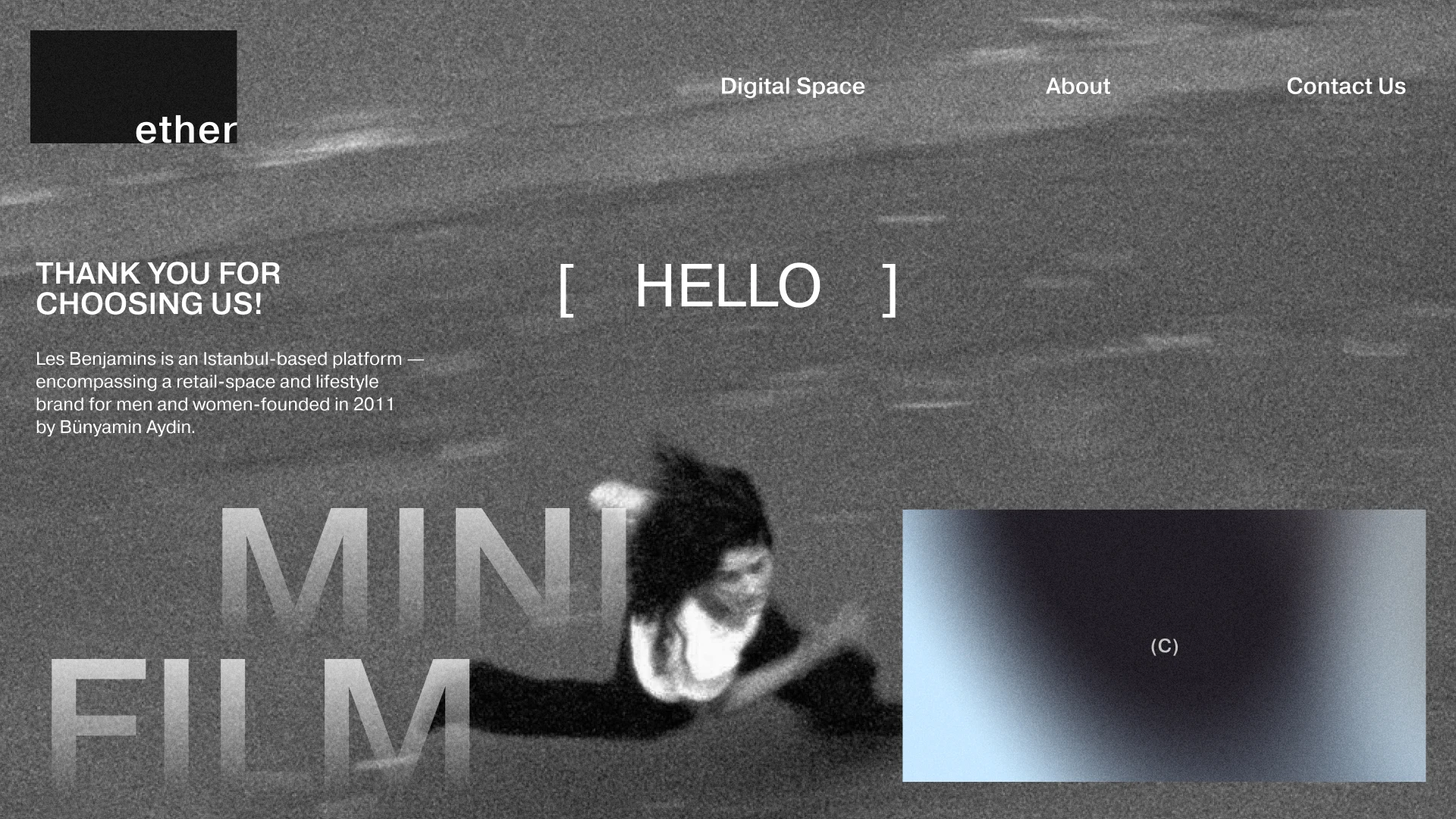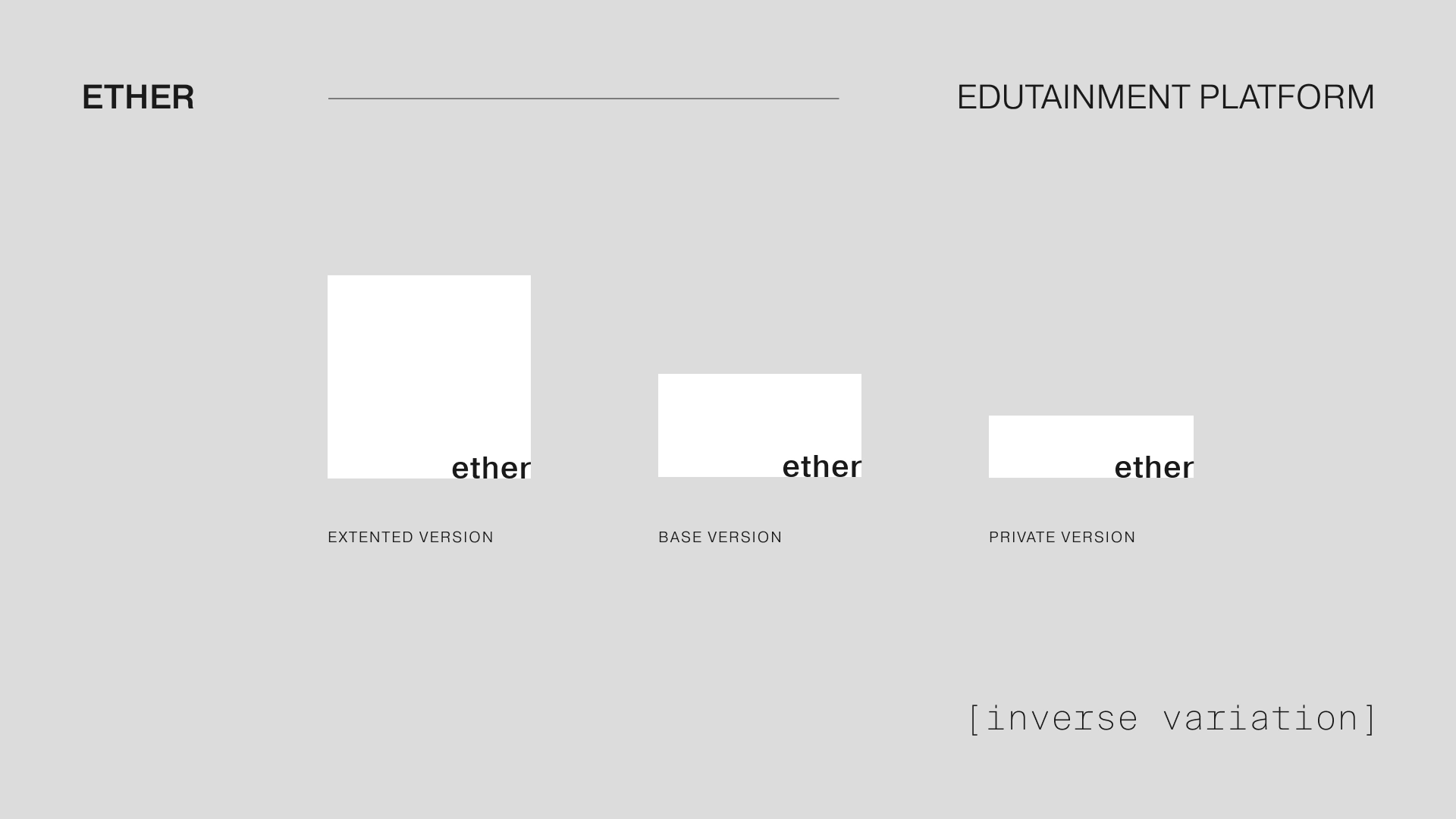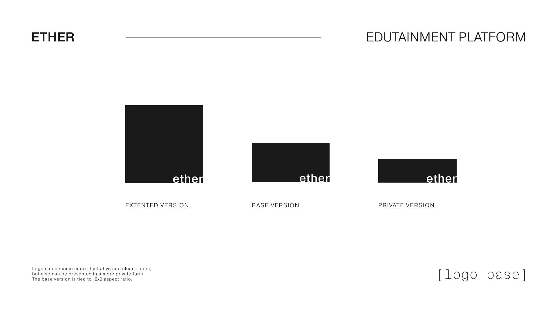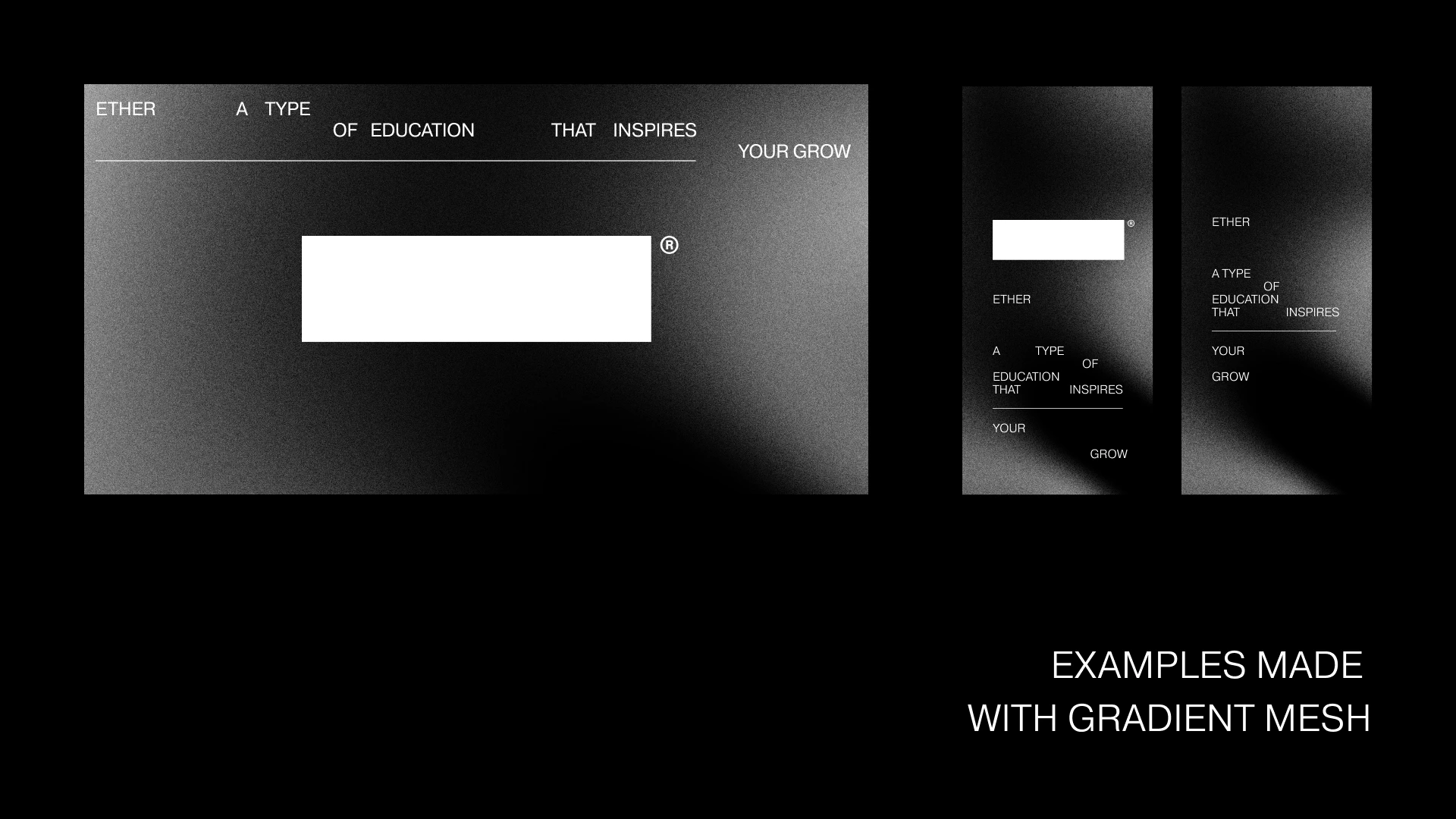 Ether’s visual language is built around open composition, clean space, and fluid gradients. The design creates an ambient, almost cinematic environment where learning feels atmospheric and intuitive, not structured or rigid. The logo visualizes a concept of the space. It is adapting to the story the platform is telling about, the space also depends on the story tone.