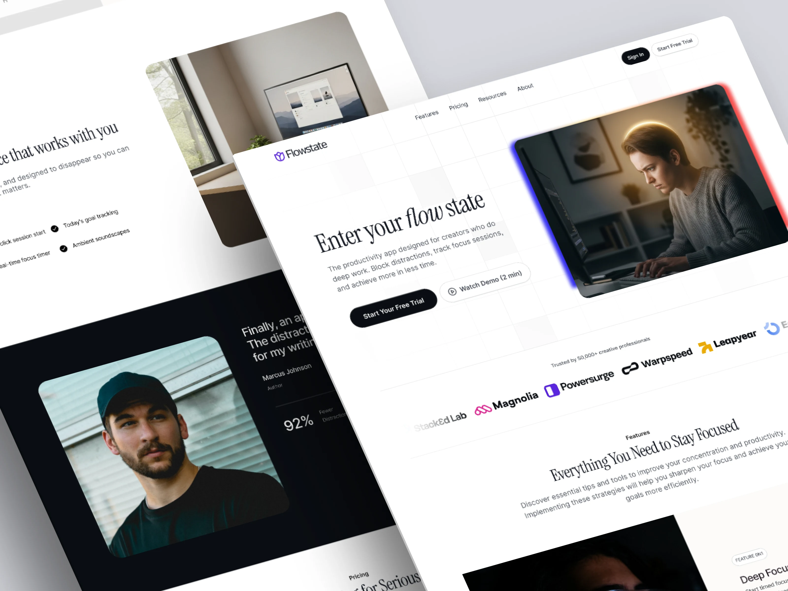 This project is a marketing landing page for a productivity SaaS designed to help users enter a deep flow state.