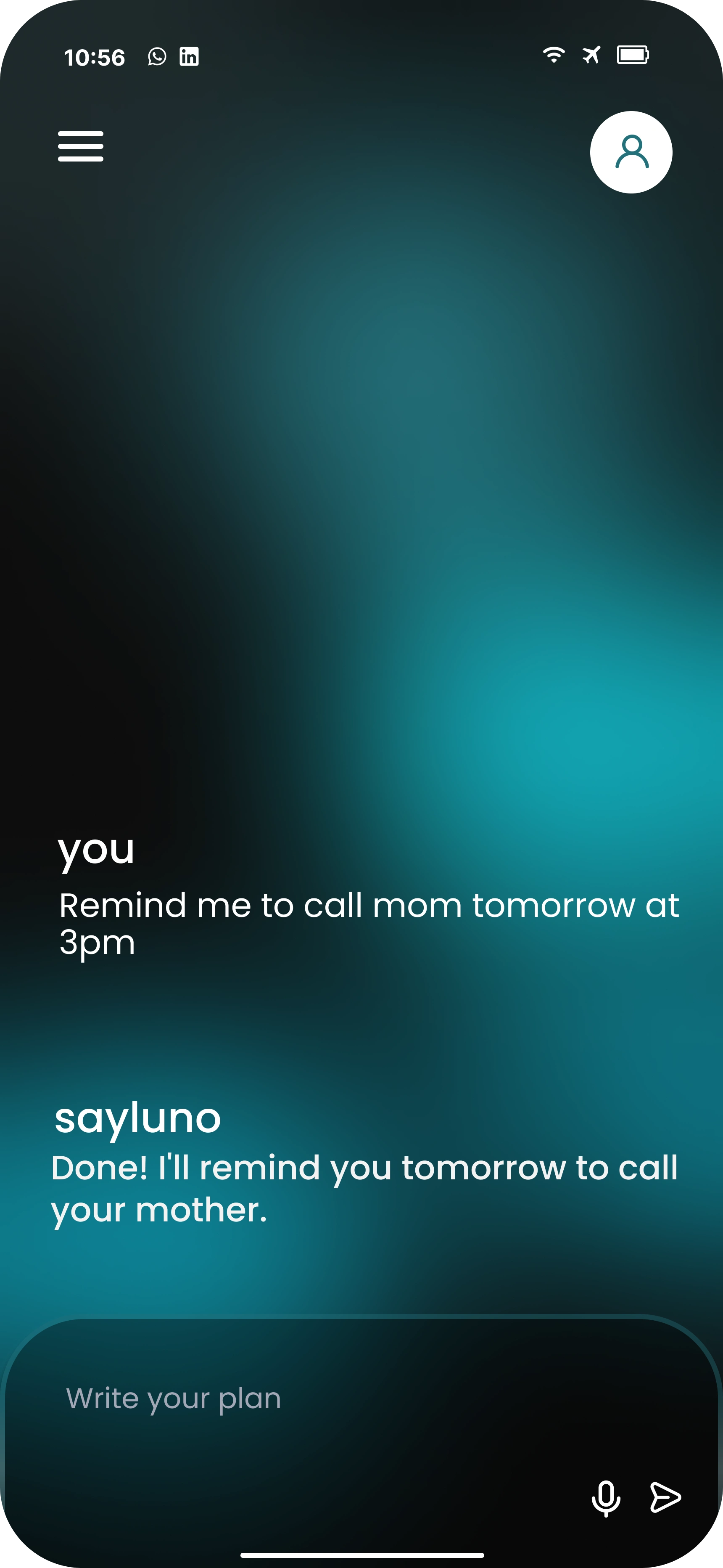 SayLuno is an voice-based scheduling app that allows users to simply speak their tasks and have them automatically scheduled at the appropriate time