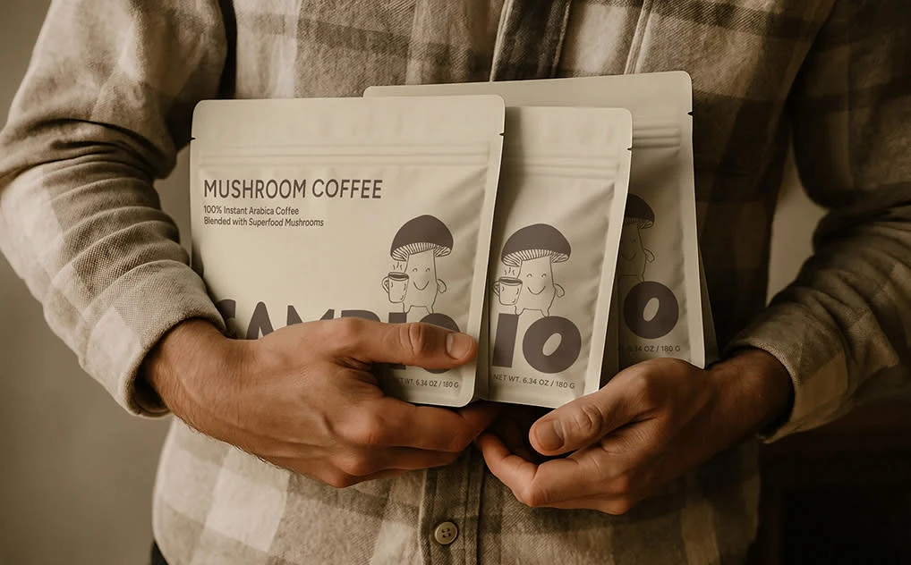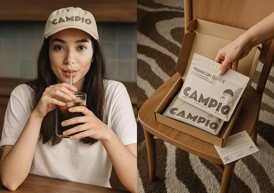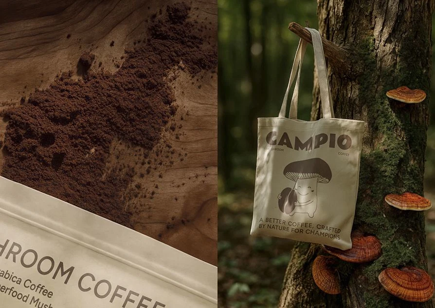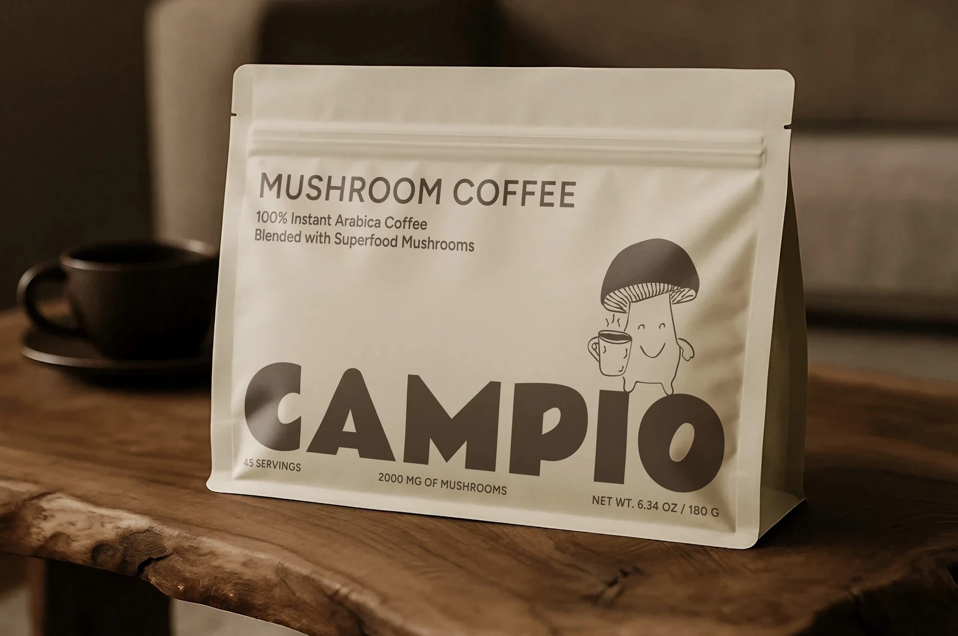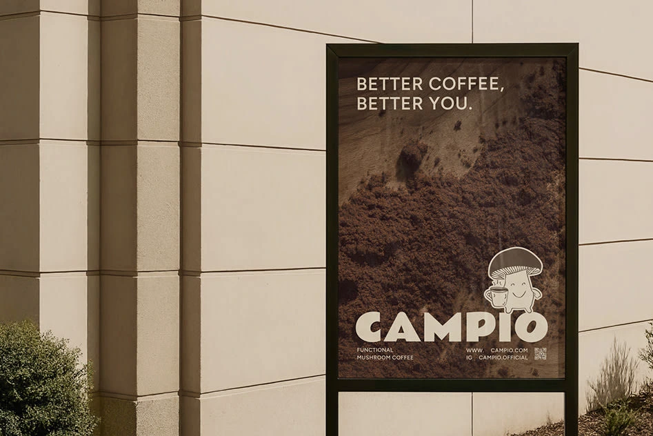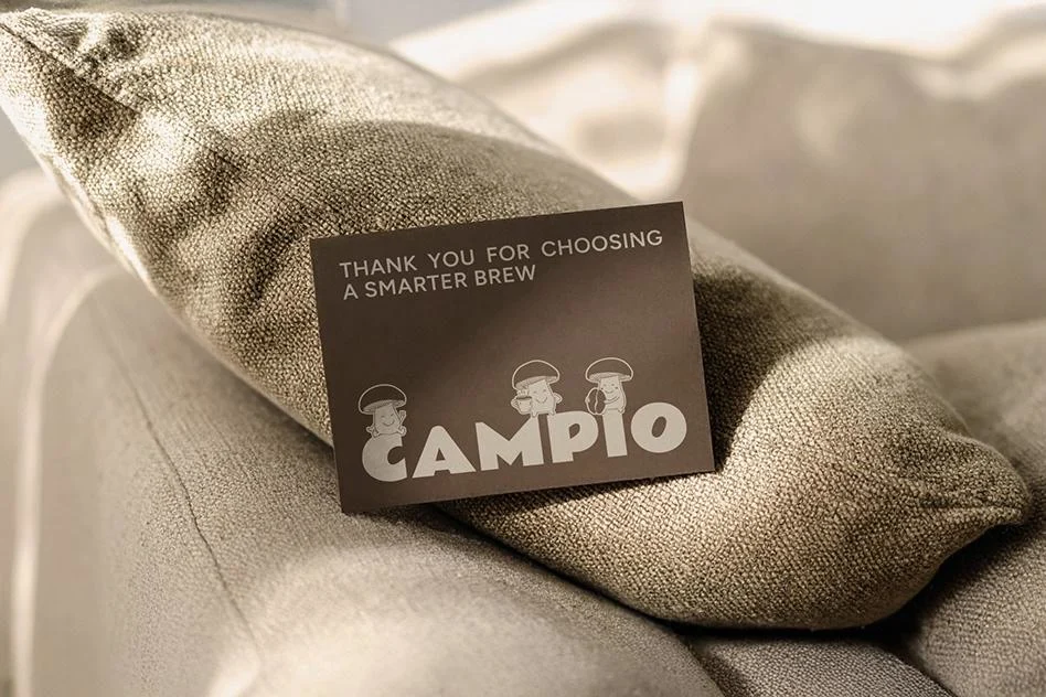 Campio is a mushroom-infused coffee brand created for people who want their daily boost without the burnout. Designed for a wellness-savvy audience, the identity brings a distinct, lighthearted tone warm, grounded, and quietly confident. A bold logotype, earthy color palette, and a set of adaptable mascot variations form a visual system that’s expressive but restrained, energizing without ever trying too hard.