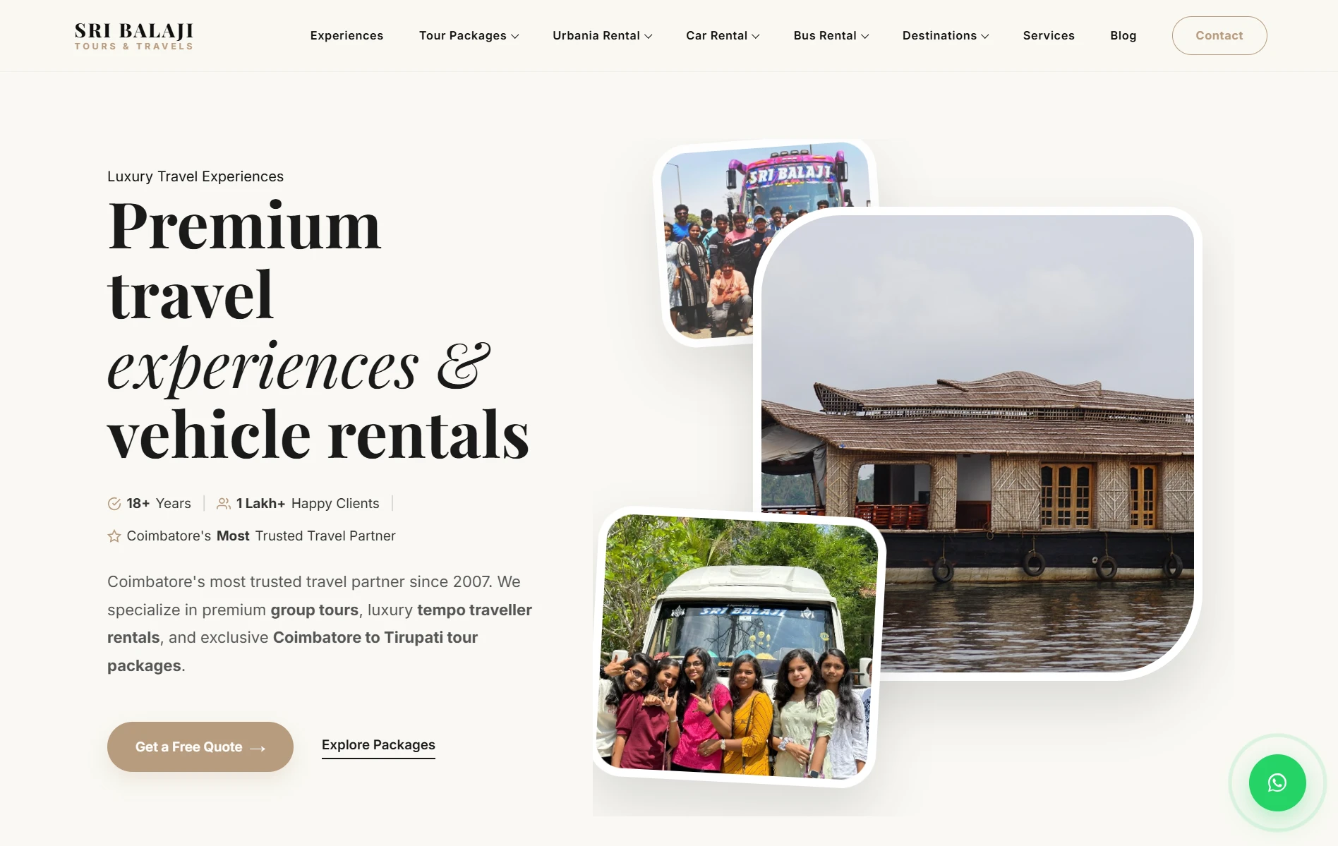 Built a modern travel website showcasing services, improving user experience, and enabling quick customer contact through forms and WhatsApp.