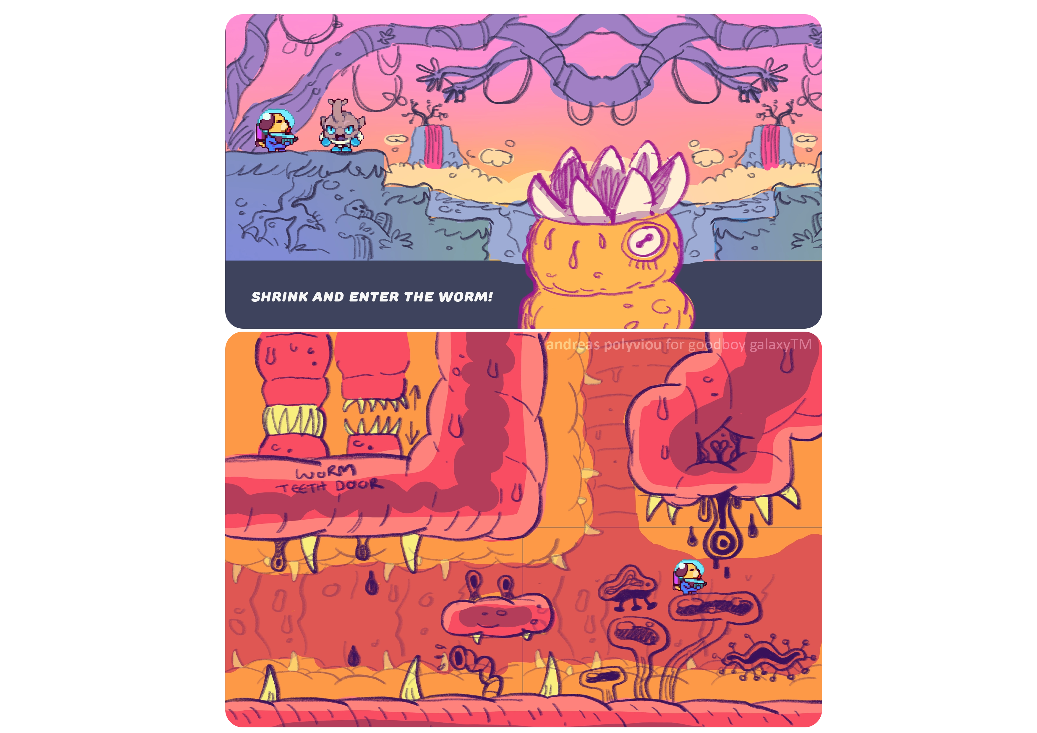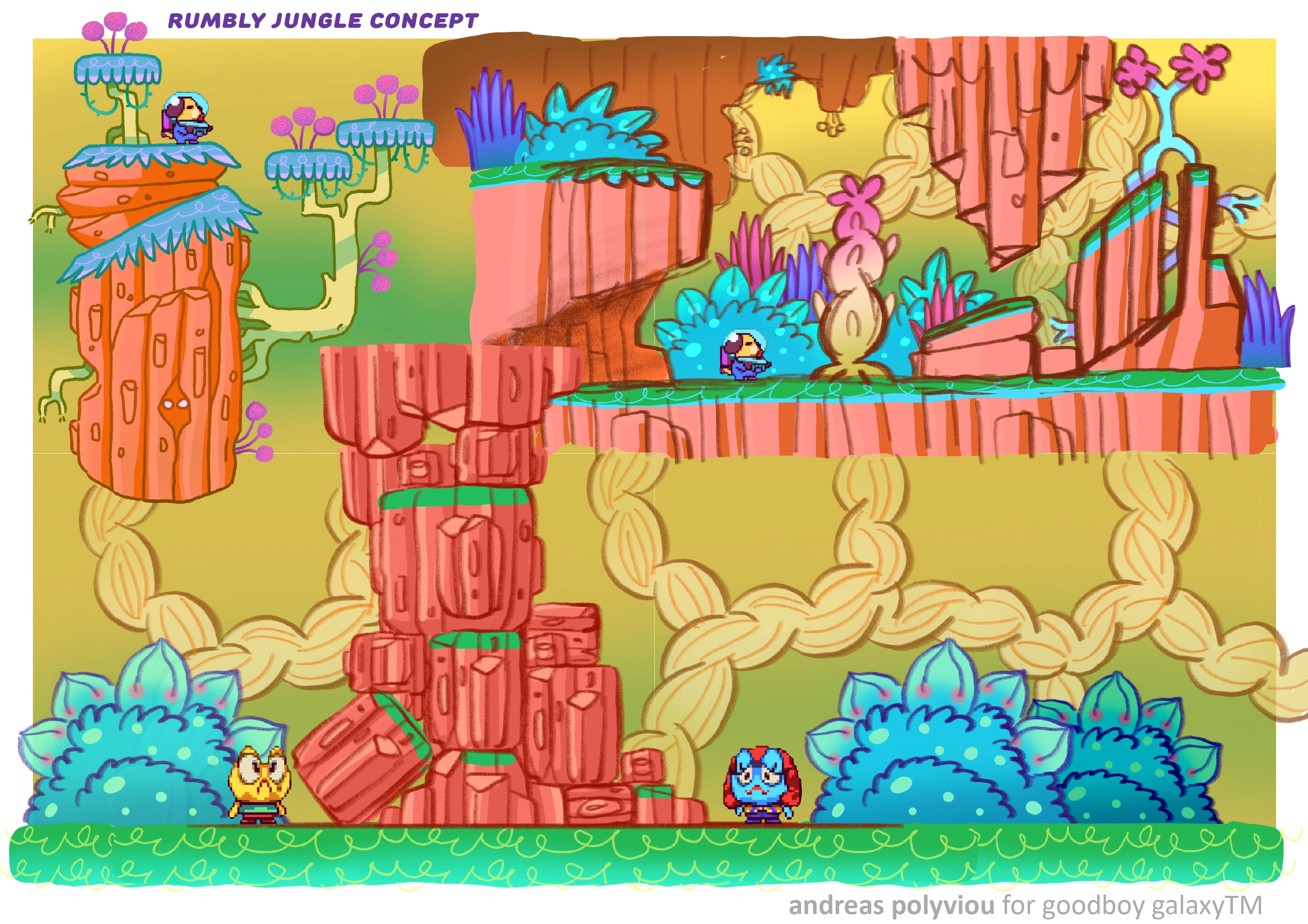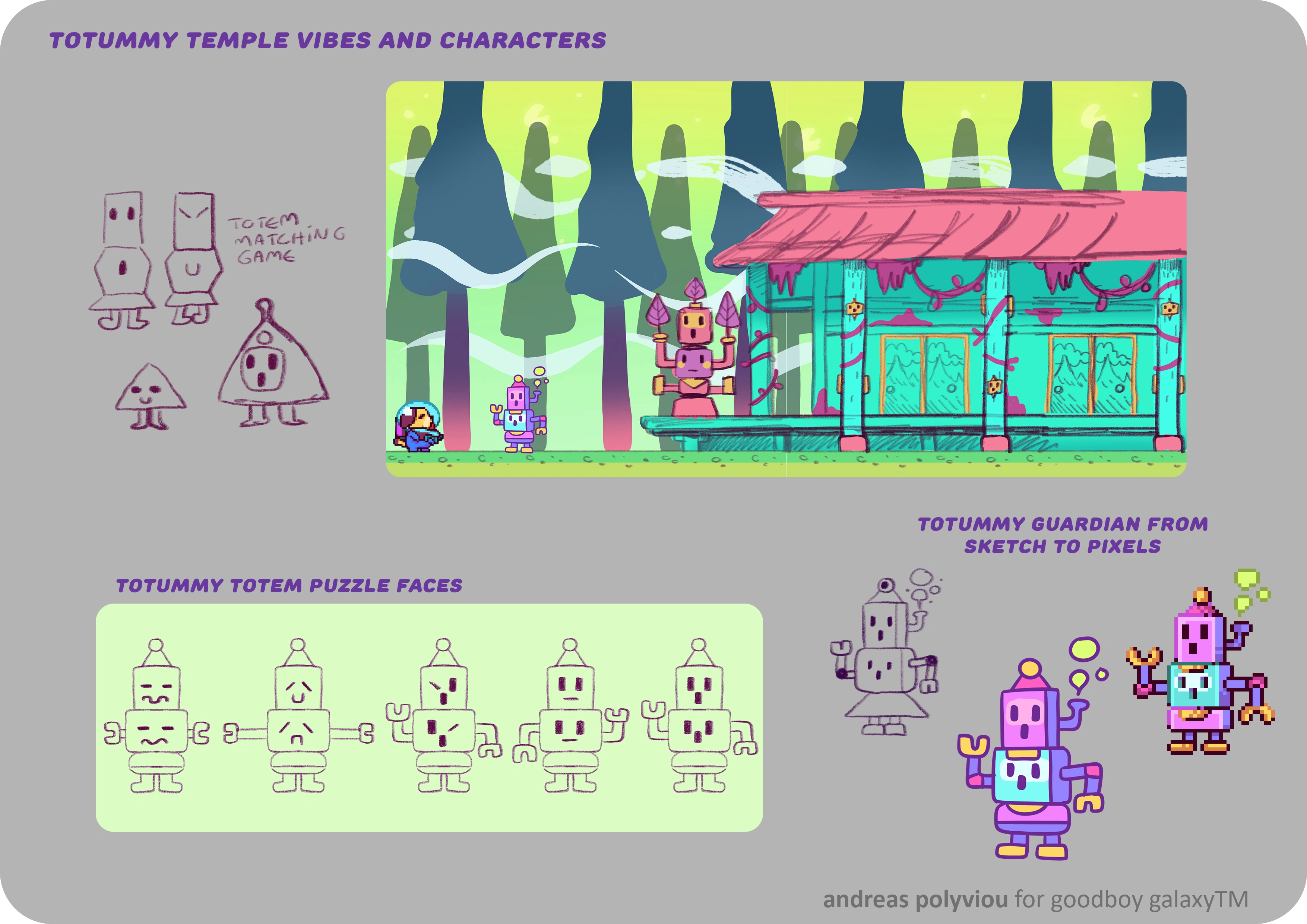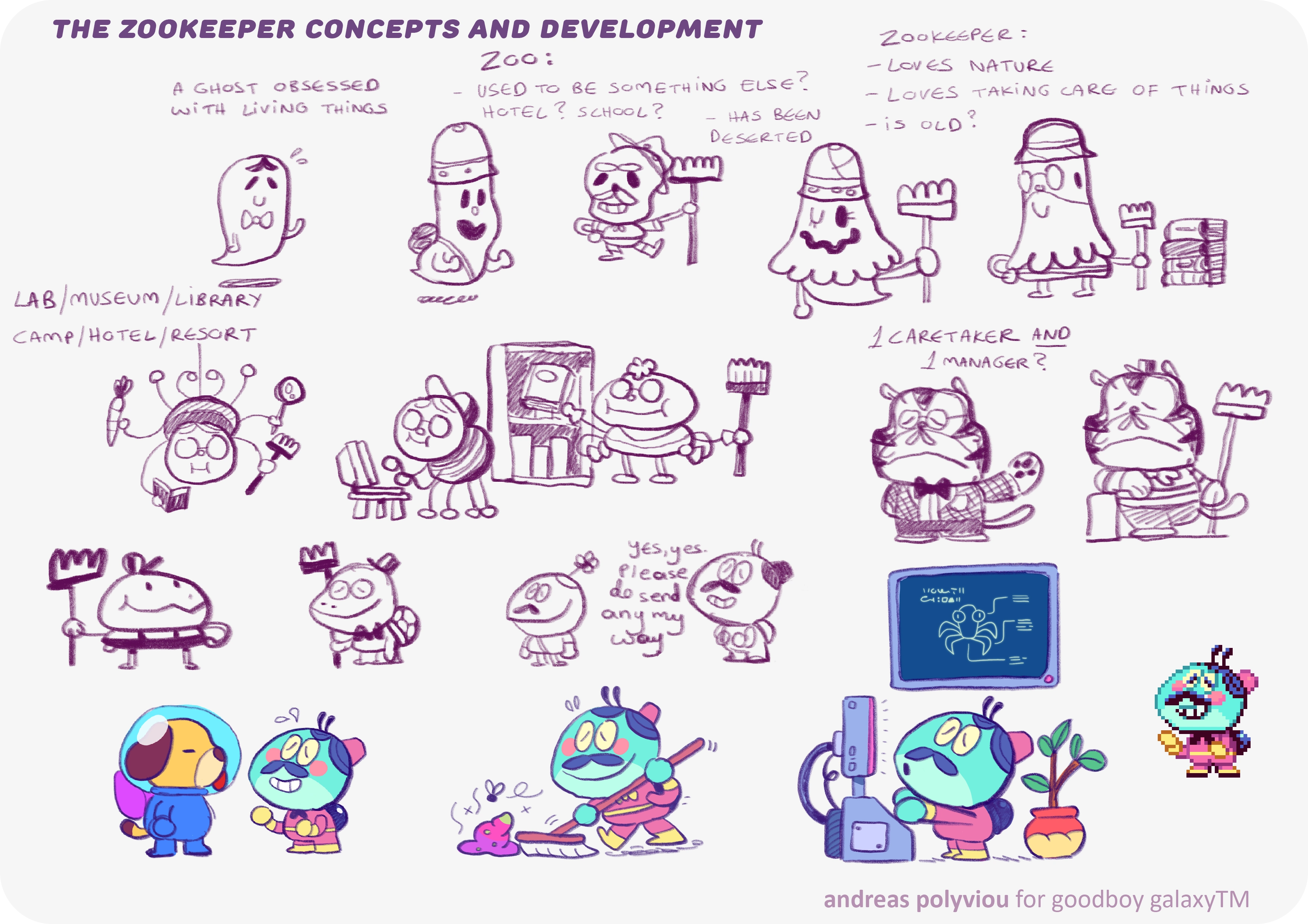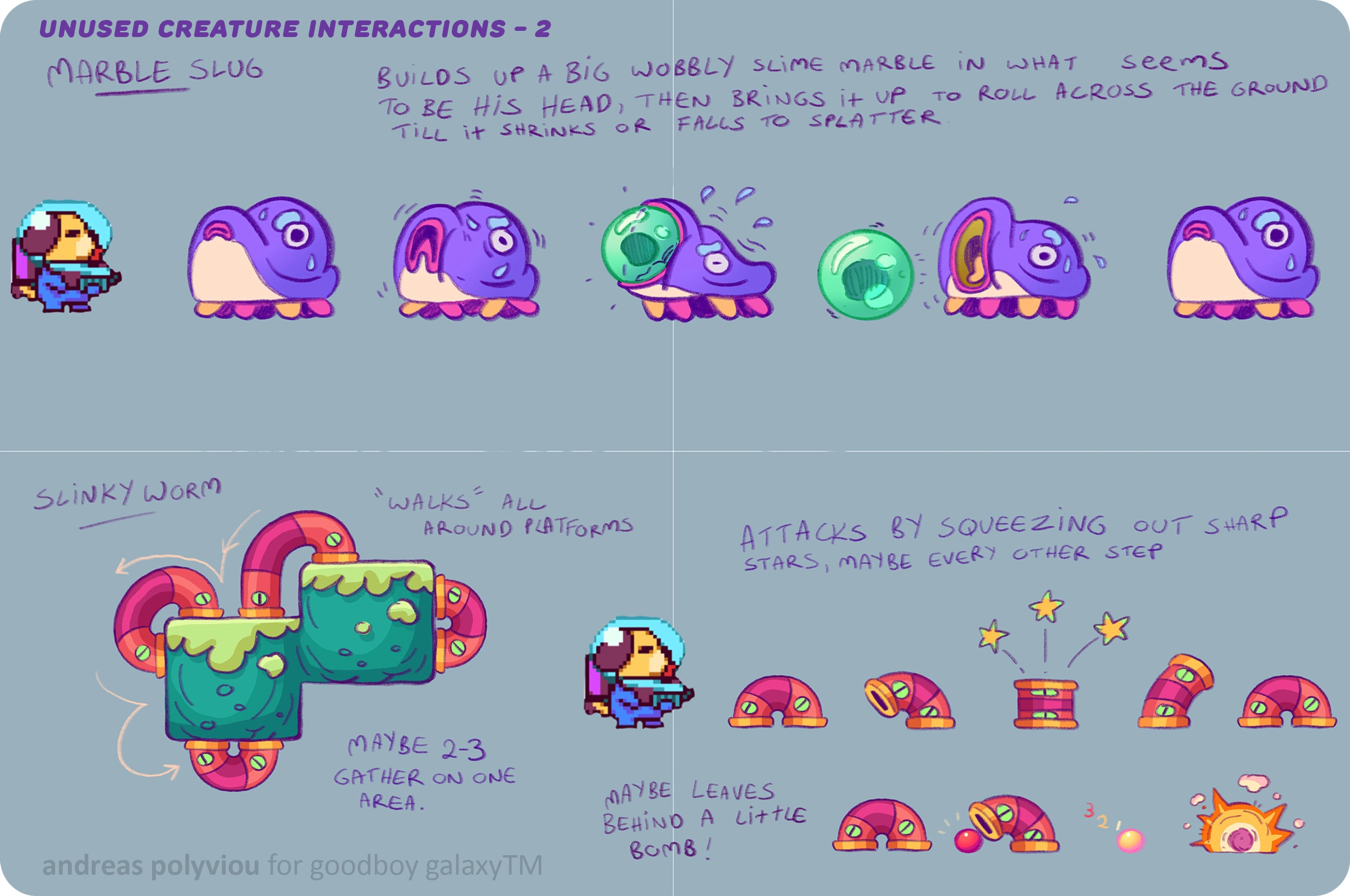 Goodboy Galaxy is an action adventure game designed for the Nintendo GBA, full of fun characters and strange new worlds to explore. I had the great pleasure of working on this game, creating characters, visualising worlds and helping out with story ideas. I made paintings and sketches, pixel art and animations and had an amazing time - please enjoy some of my work!