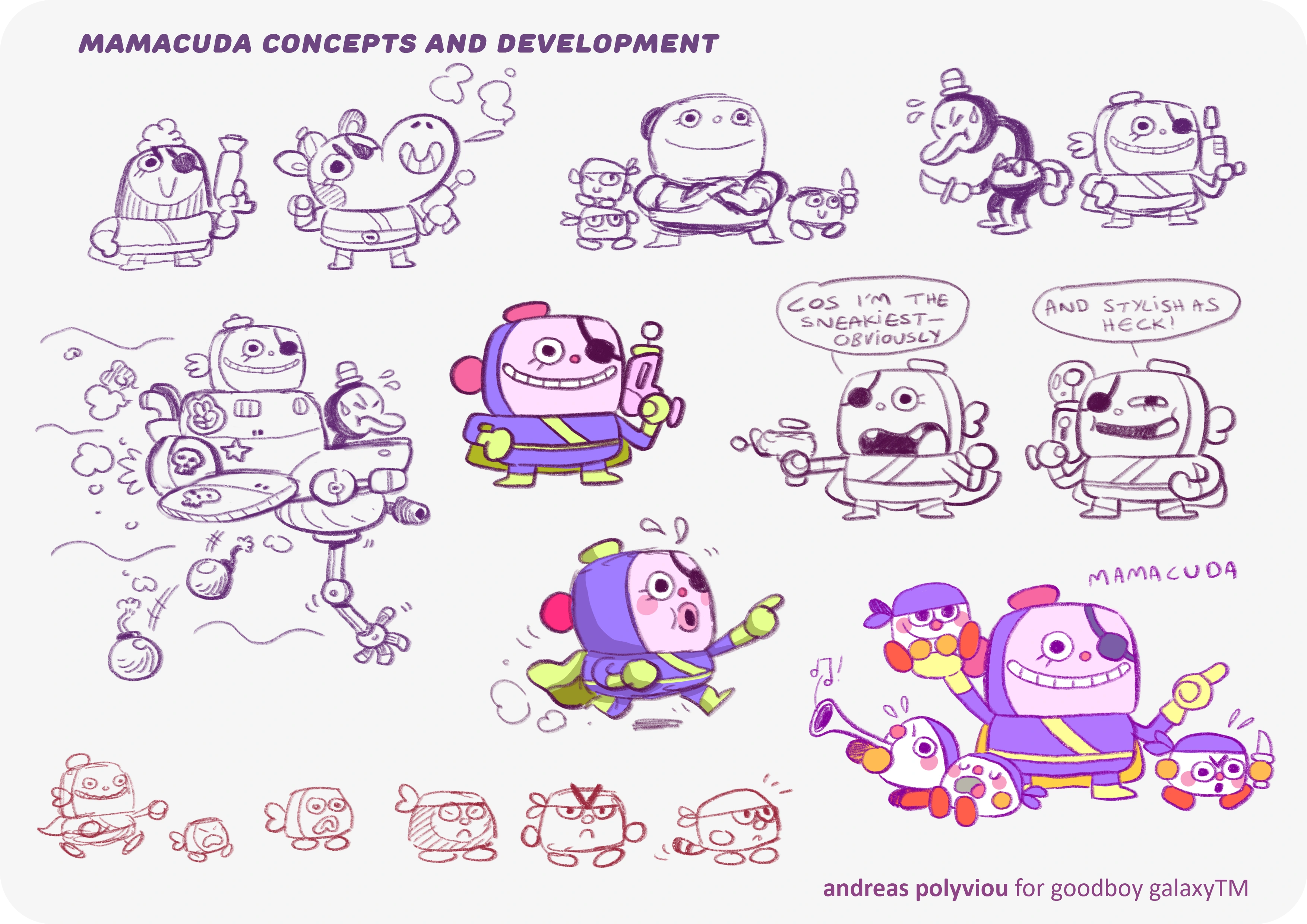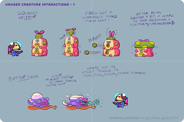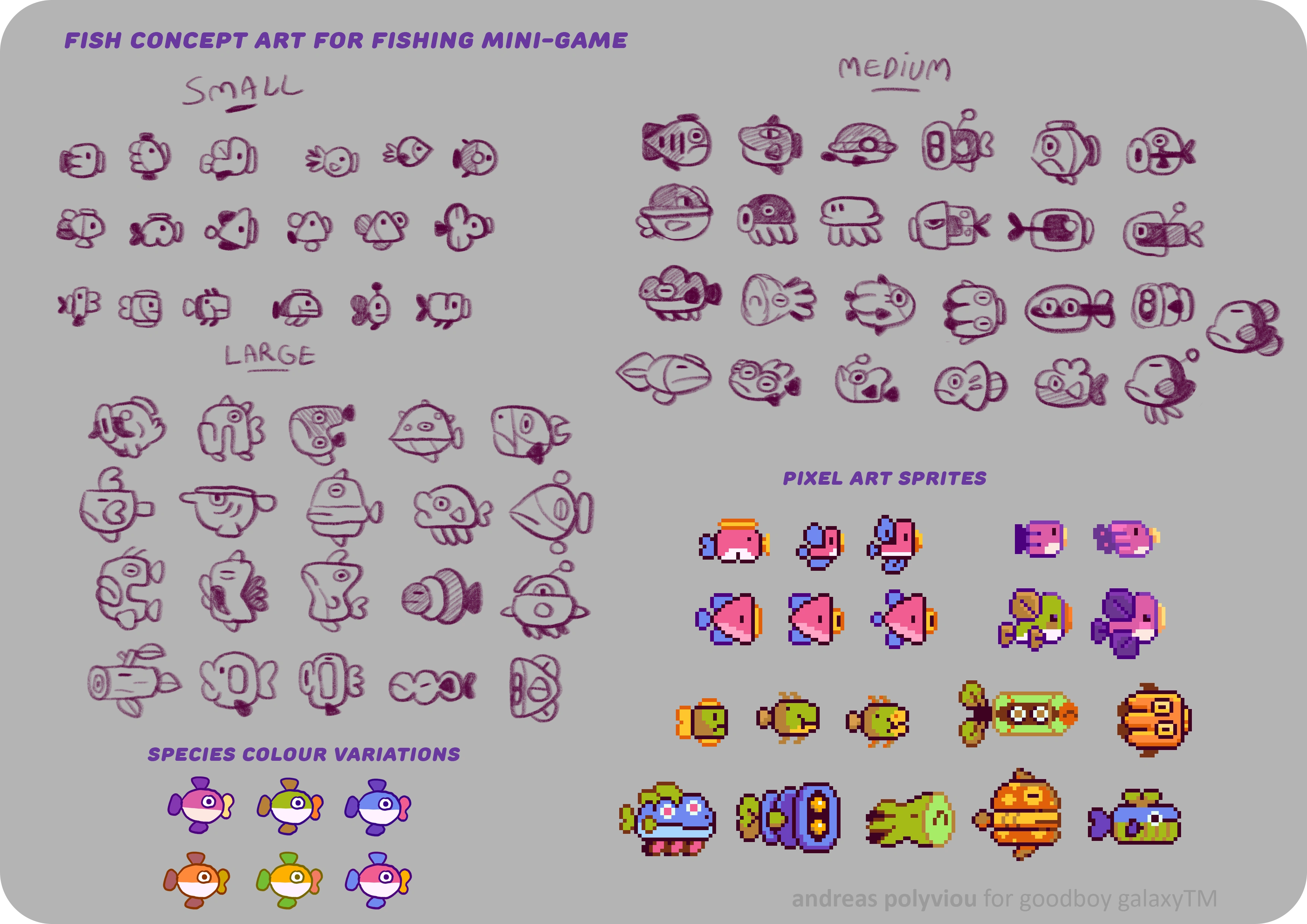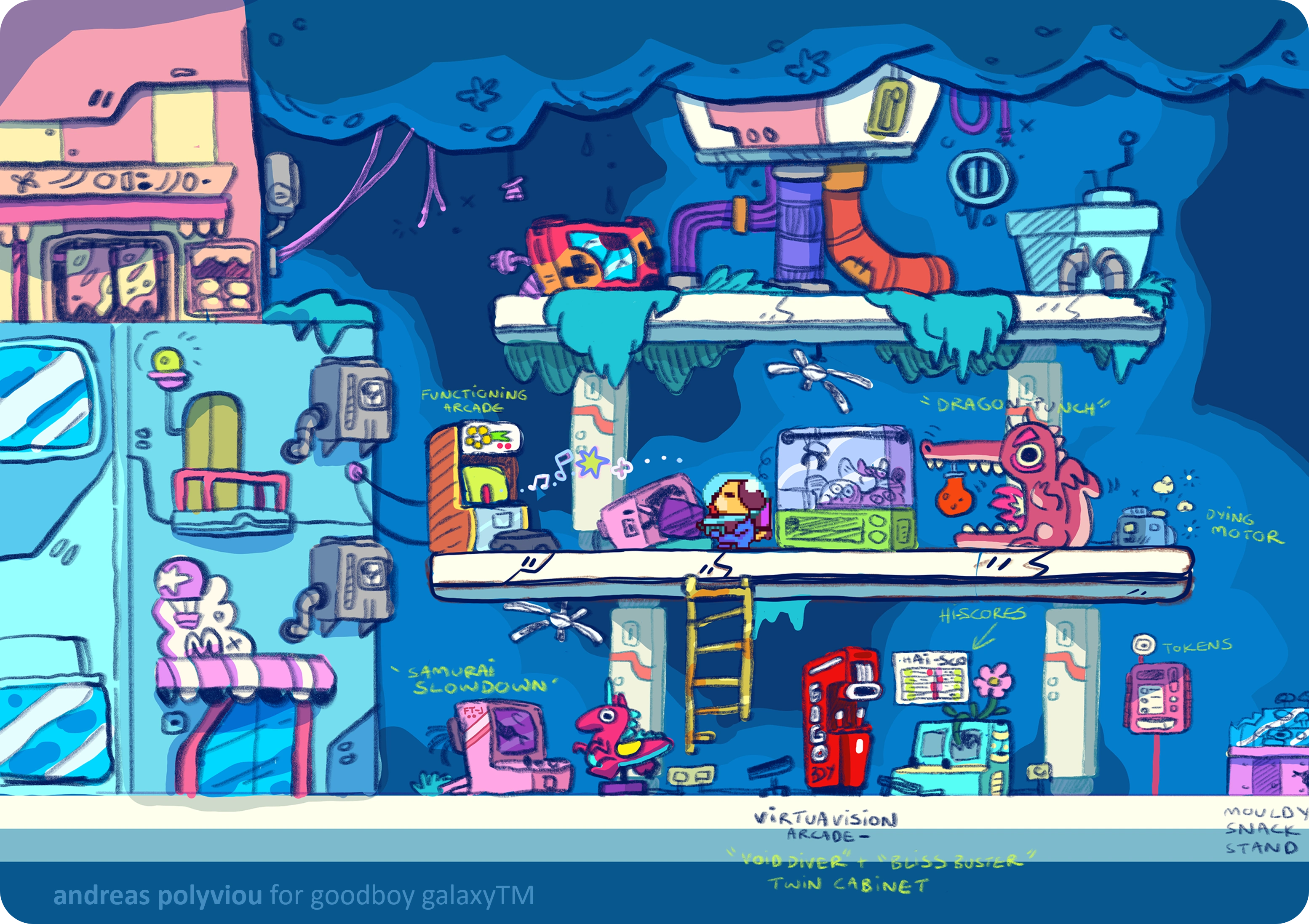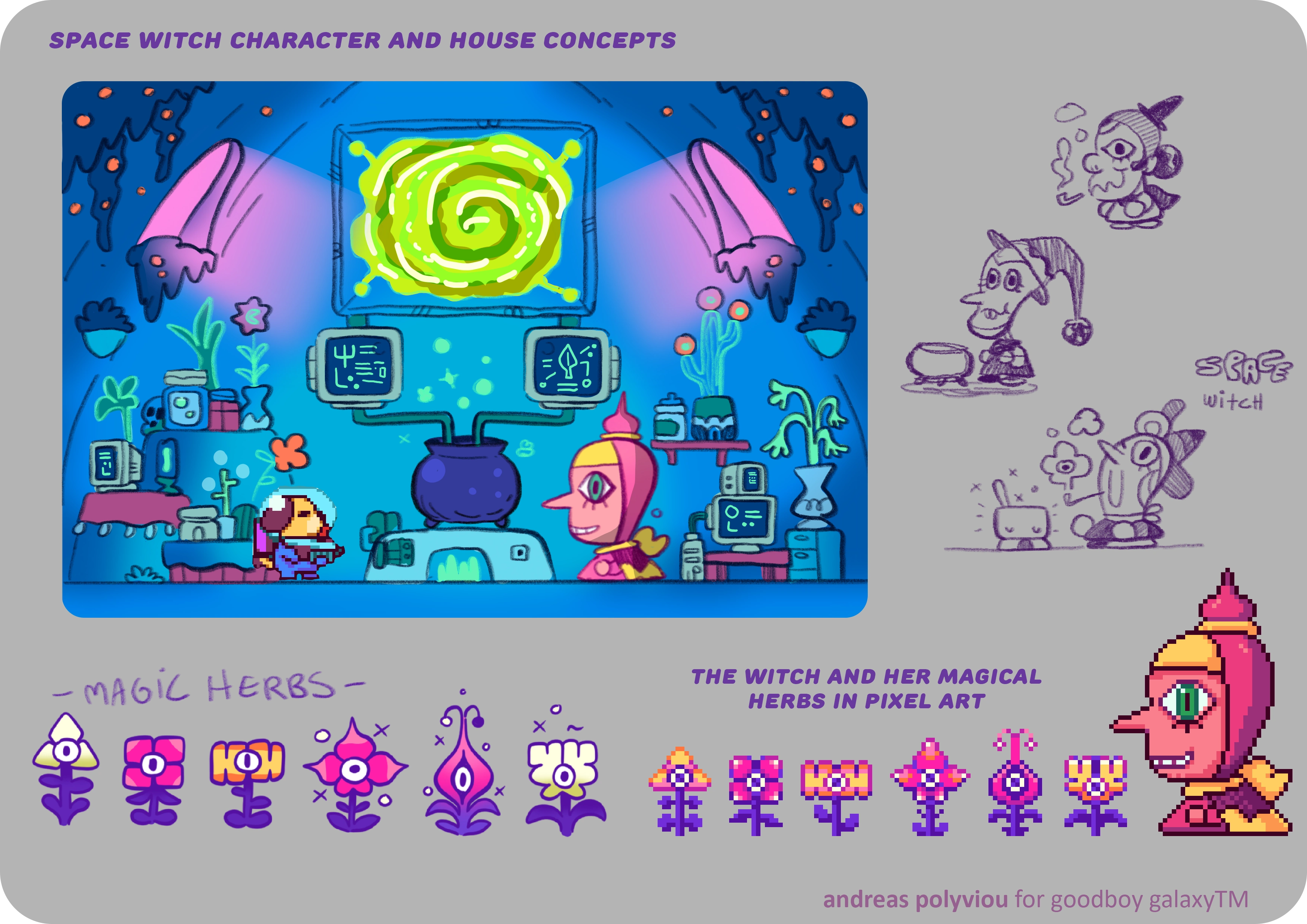Goodboy Galaxy is an action adventure game designed for the Nintendo GBA, full of fun characters and strange new worlds to explore. I had the great pleasure of working on this game, creating characters, visualising worlds and helping out with story ideas. I made paintings and sketches, pixel art and animations and had an amazing time - please enjoy some of my work!
