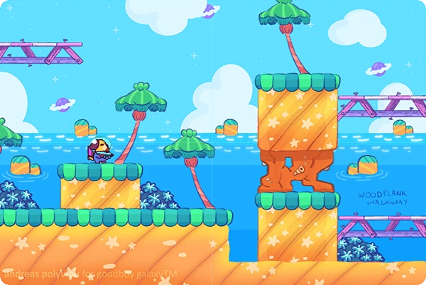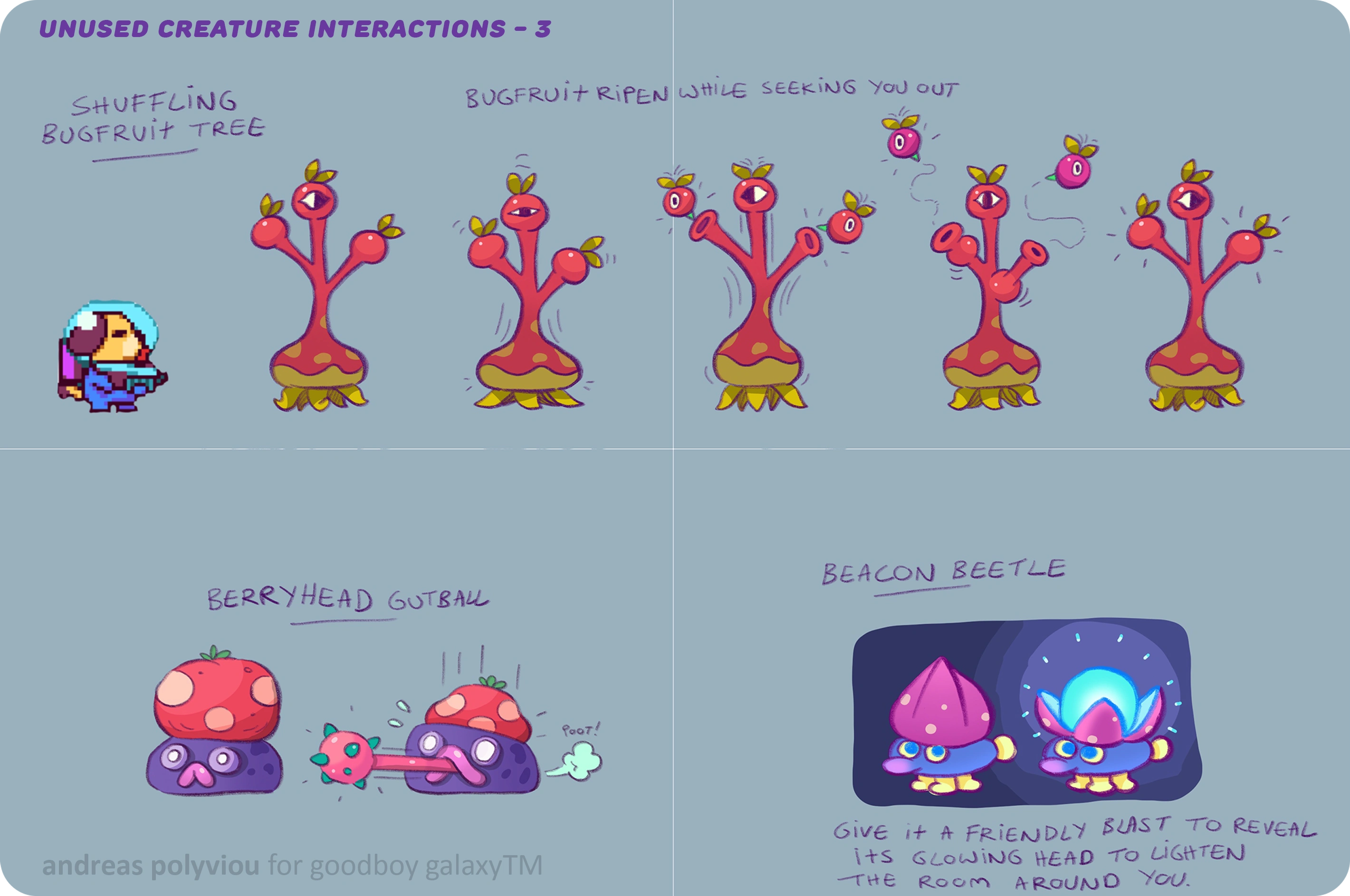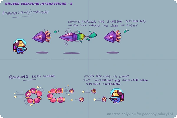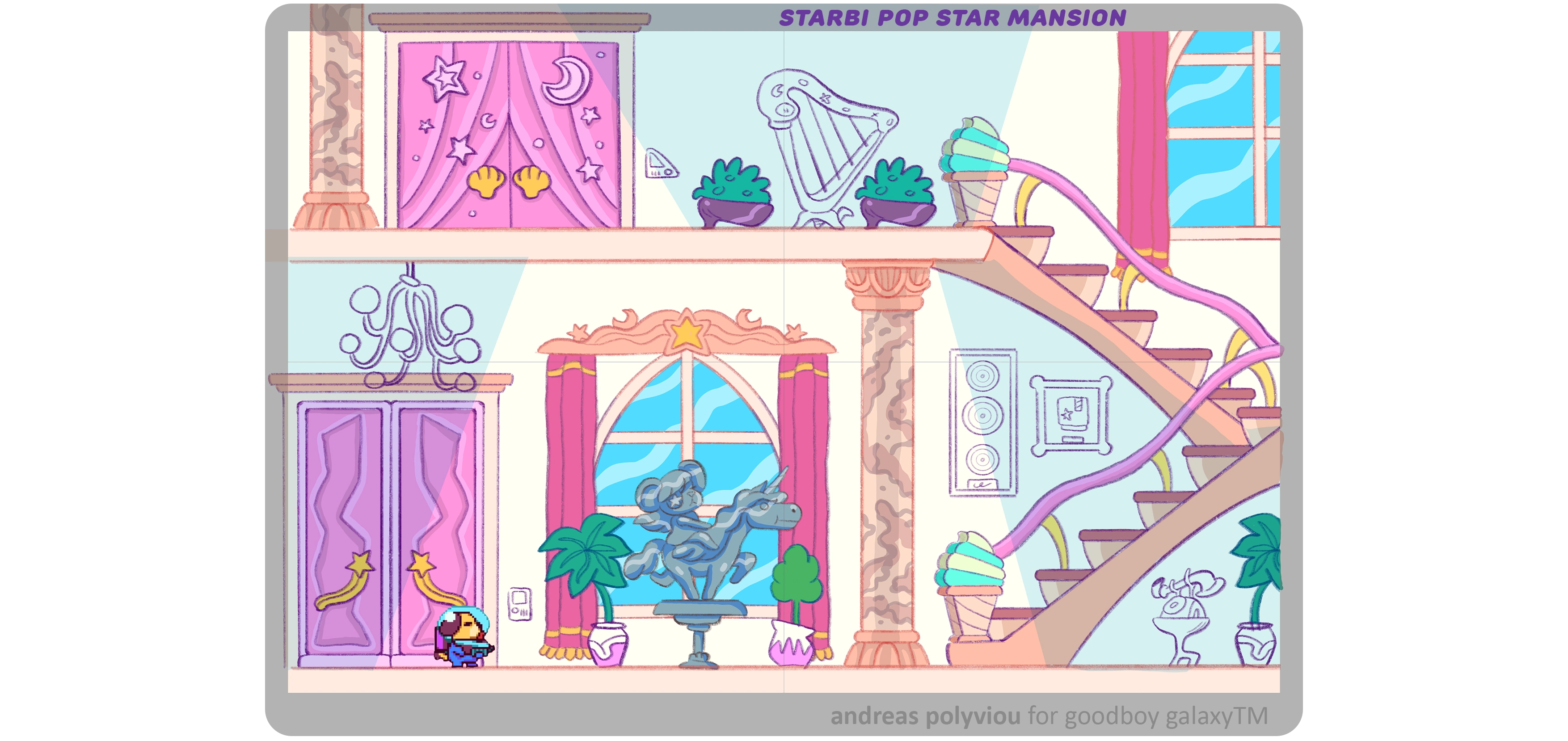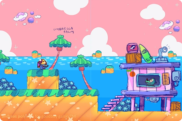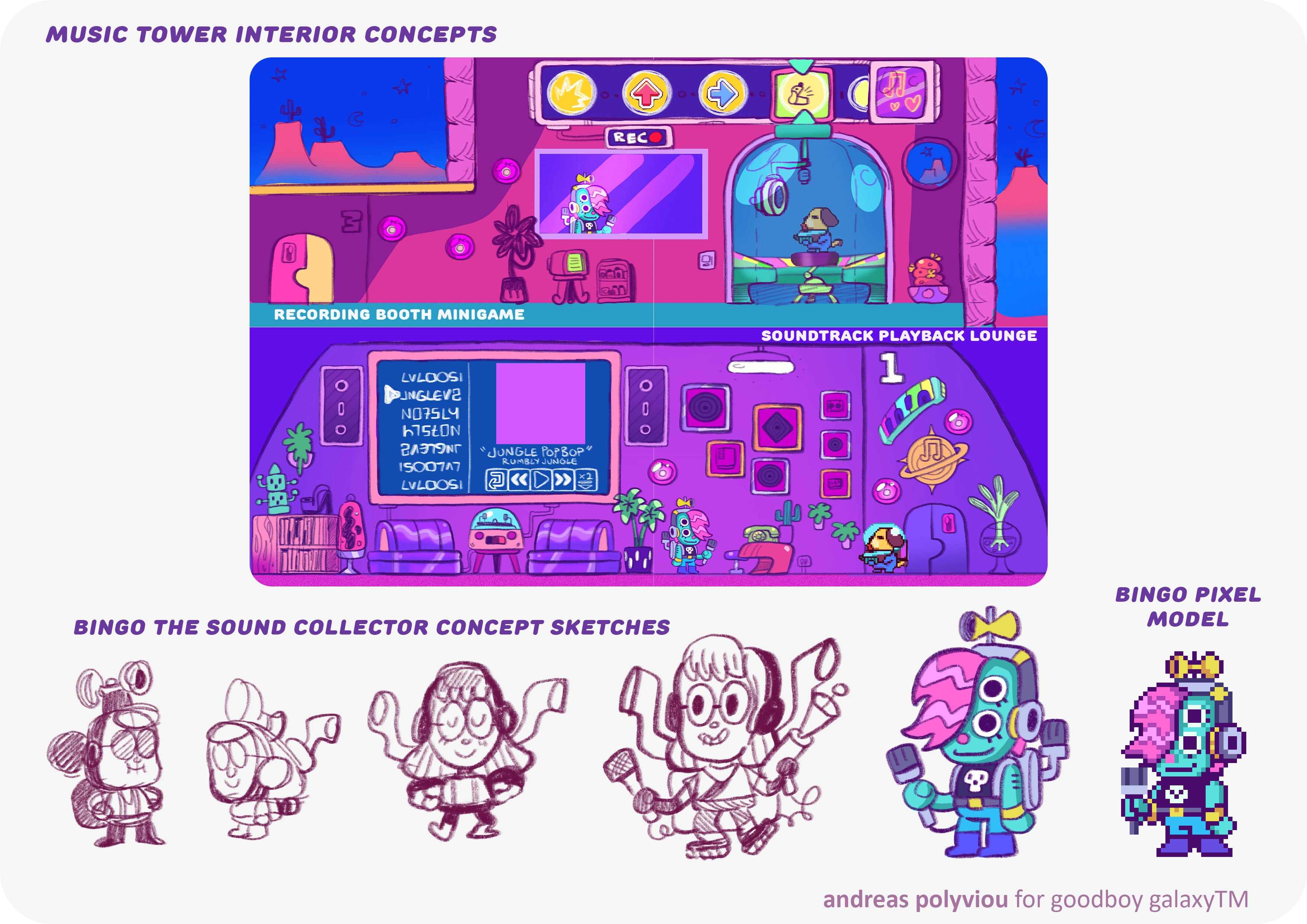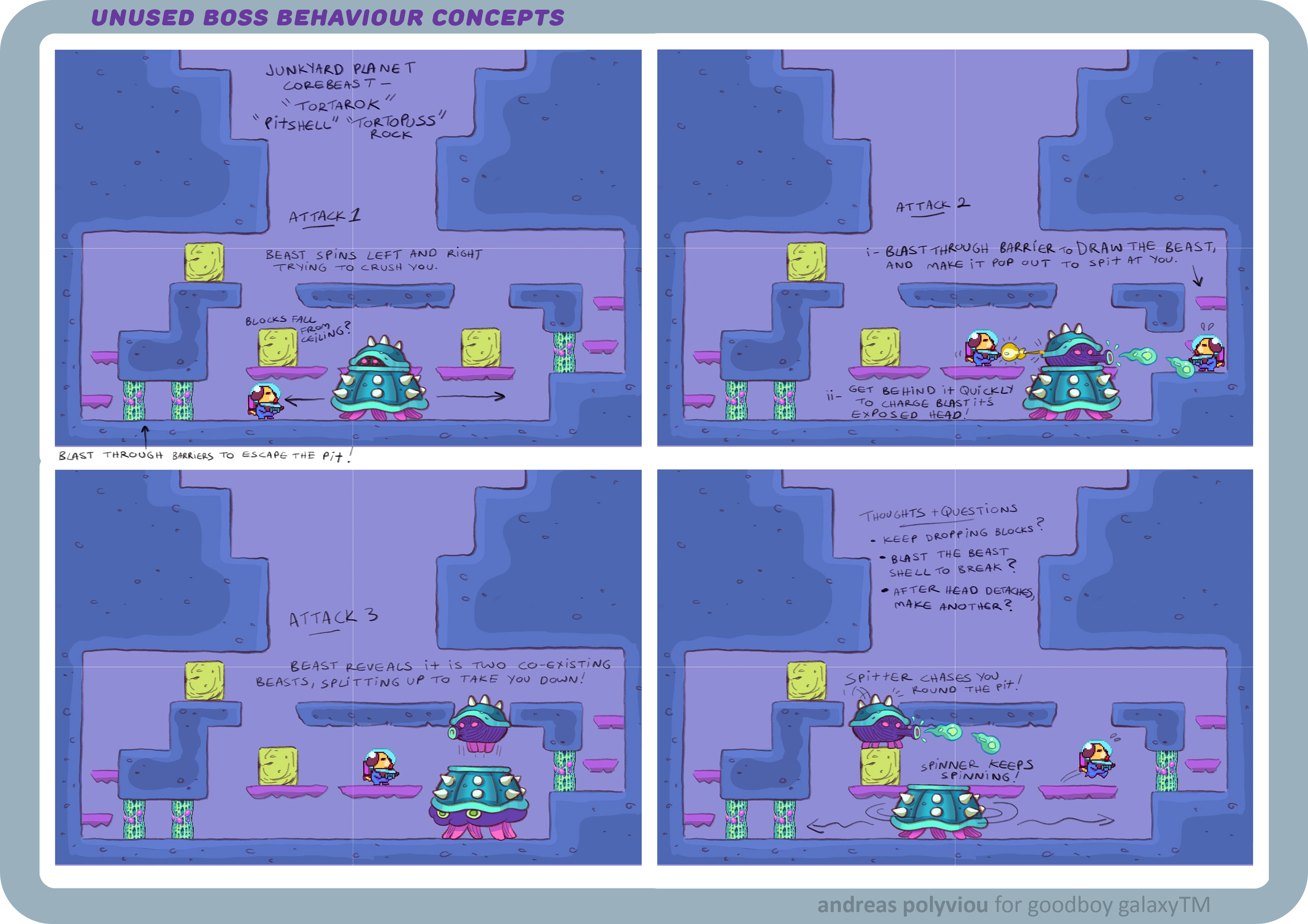 Goodboy Galaxy is an action adventure game designed for the Nintendo GBA, full of fun characters and strange new worlds to explore. I had the great pleasure of working on this game, creating characters, visualising worlds and helping out with story ideas. I made paintings and sketches, pixel art and animations and had an amazing time - please enjoy some of my work!