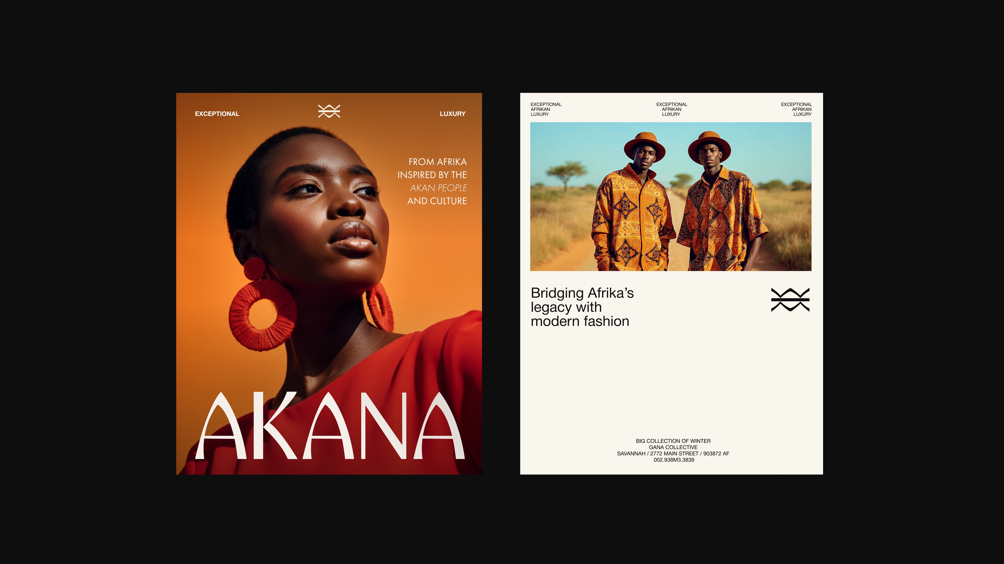Akana is a premium fashion brand rooted in the rich cultural legacy of the Akan people of Ghana. The goal was to create a sophisticated and modern identity that honors ancestral symbolism while appealing to a high-end global audience.
