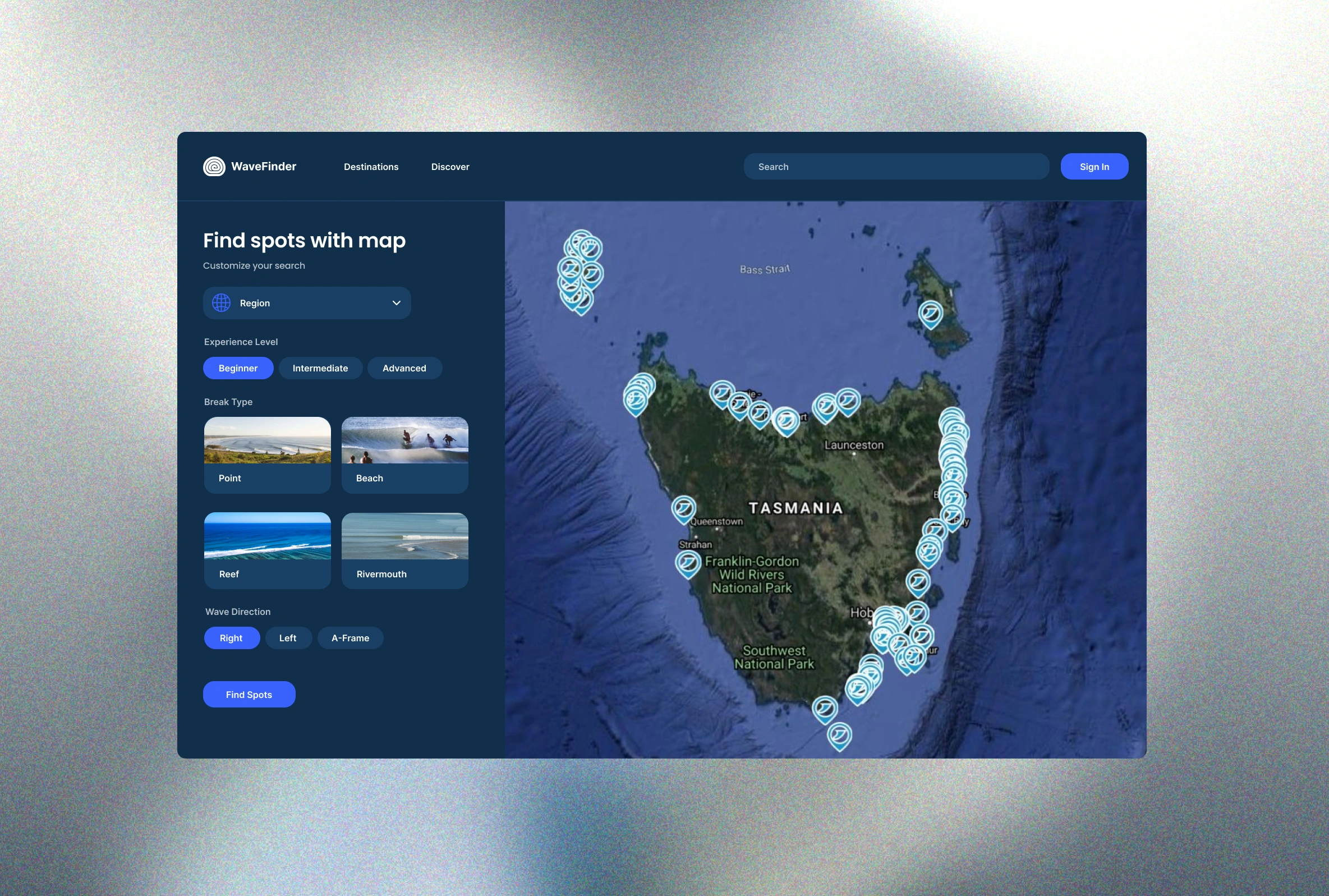 The goal was to make WaveFinder feel like it was built by surfers, for surfers - not just another generic travel app trying to crack the surf market.