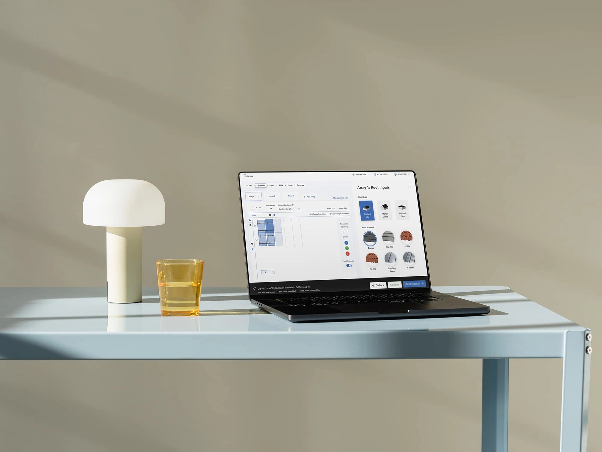 A powerful web app that lets installers plan panel layouts, generate a bill of materials, and order everything they need.