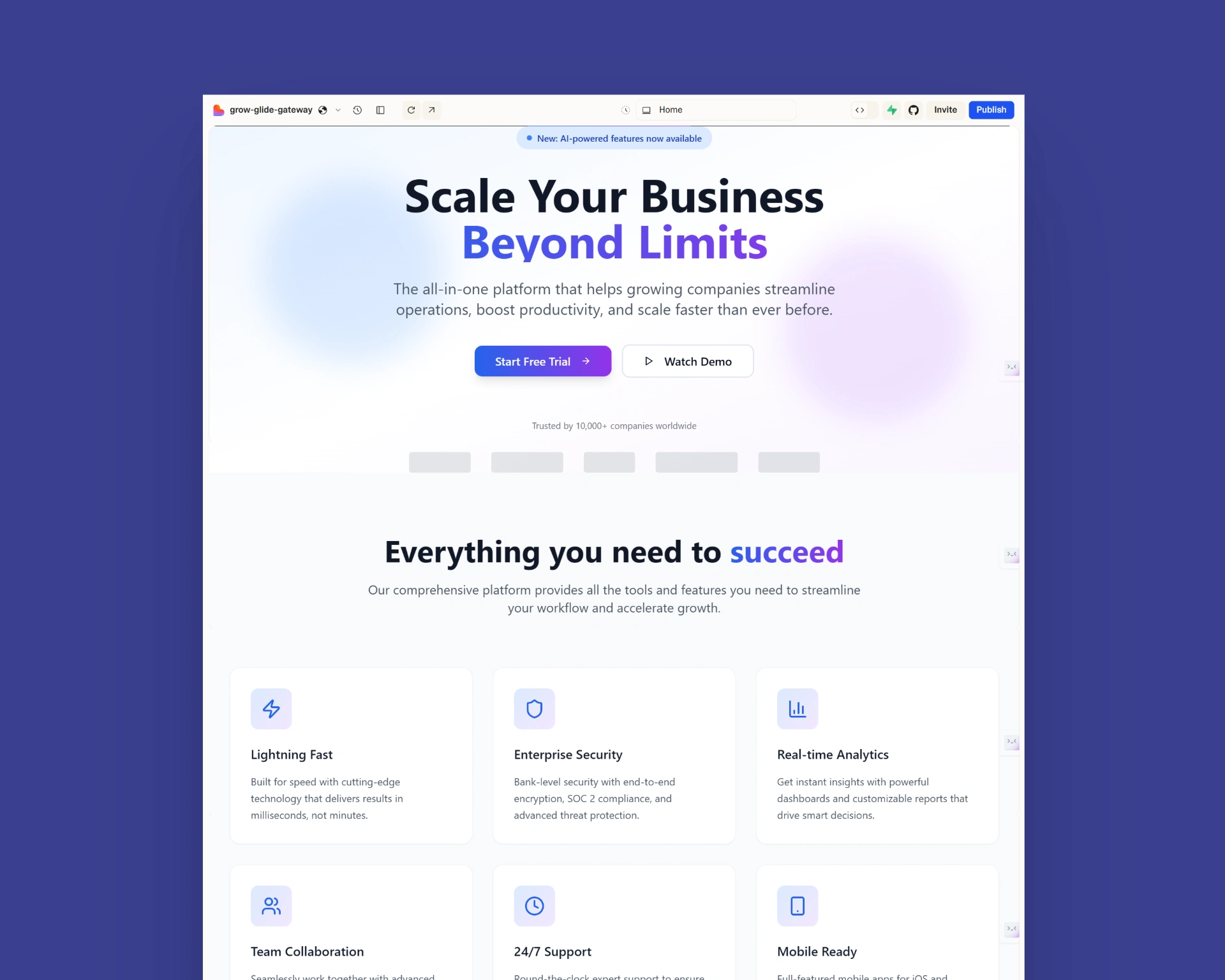 Project Goals: Clean, modern SaaS design (inspired by top SaaS brands like Notion, Linear, or Framer)