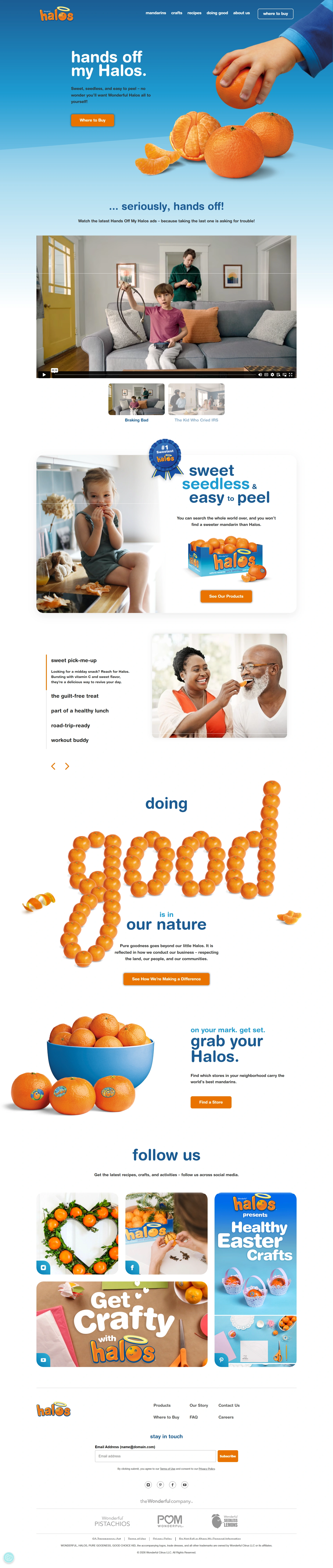 Playful, brand-driven Squarespace website for Wonderful Halos mandarins.
