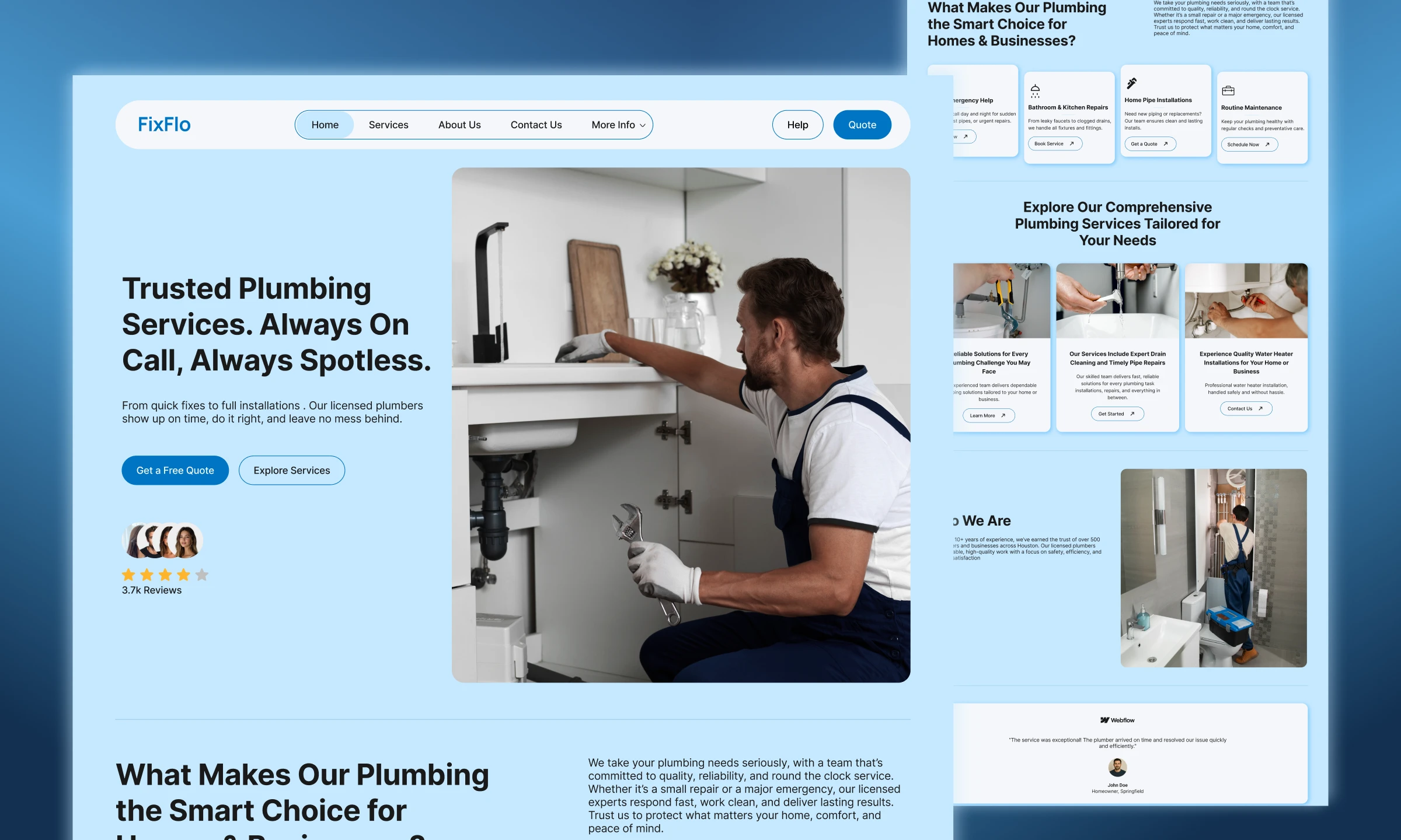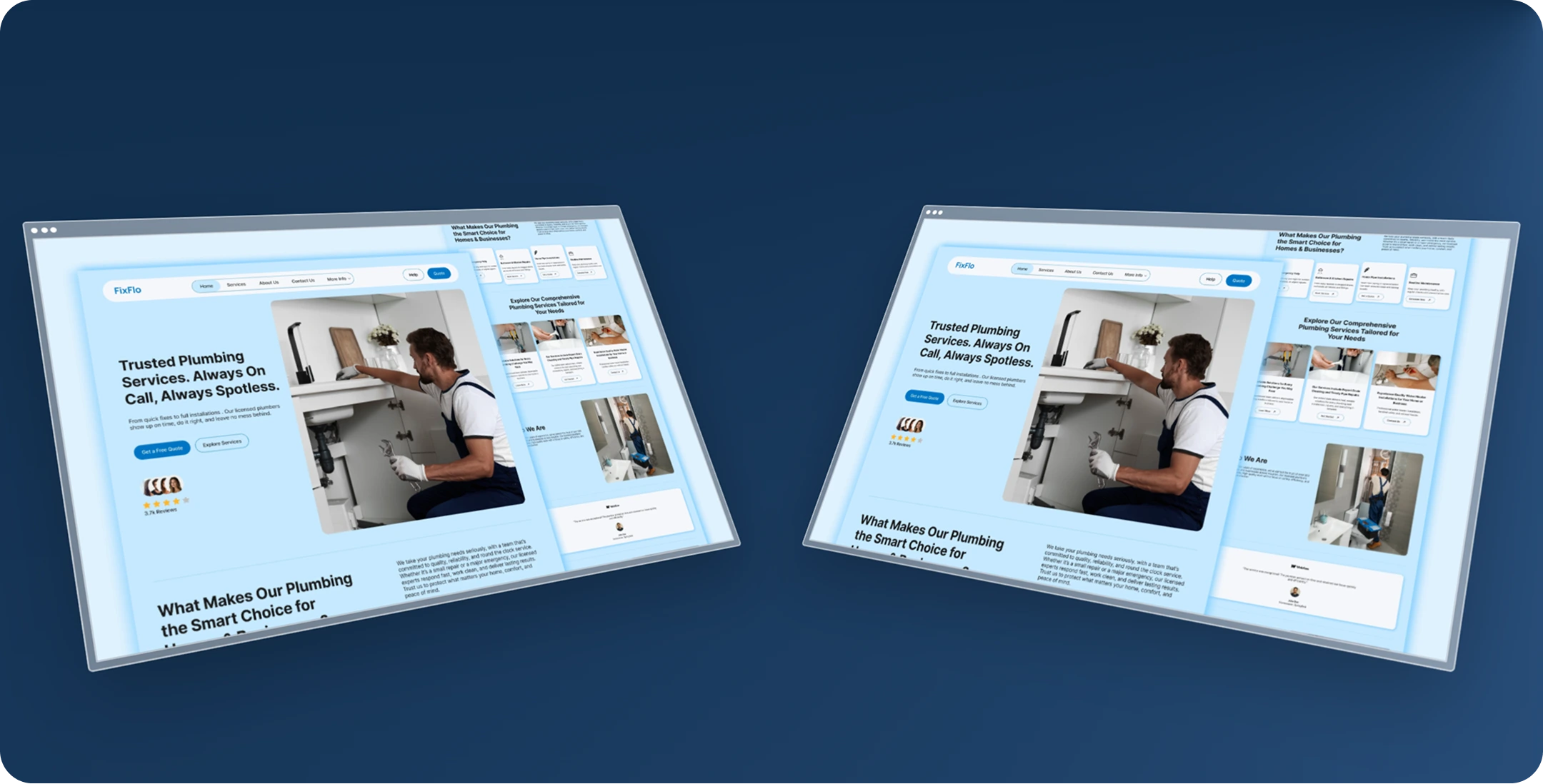 The biggest challenge was designing a layout that communicates essential service information clearly without overwhelming the user. Plumbing is a very practical industry, so it was important to highlight urgency, reliability, and trust in the design while still keeping the interface modern and visually appealing.