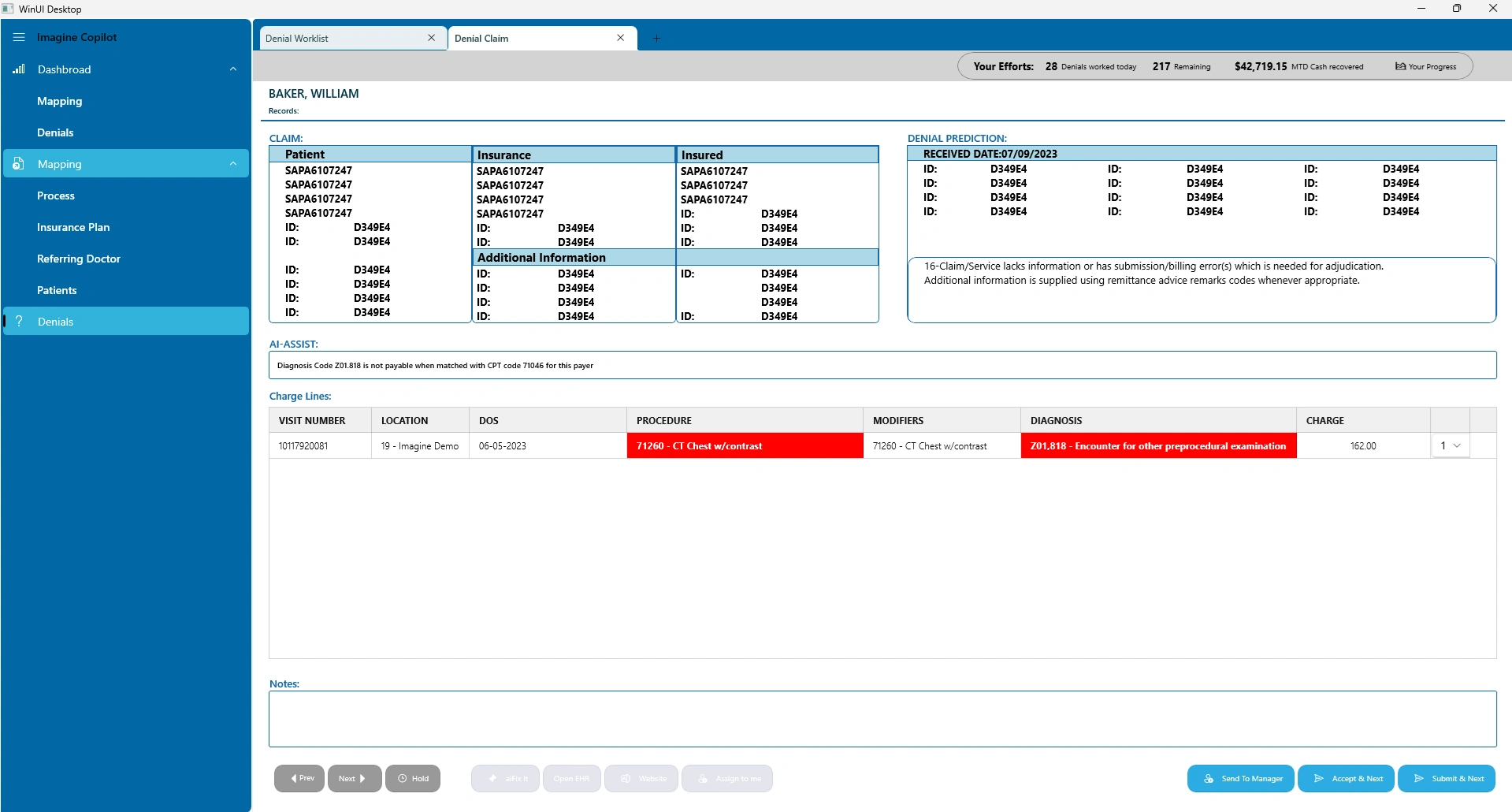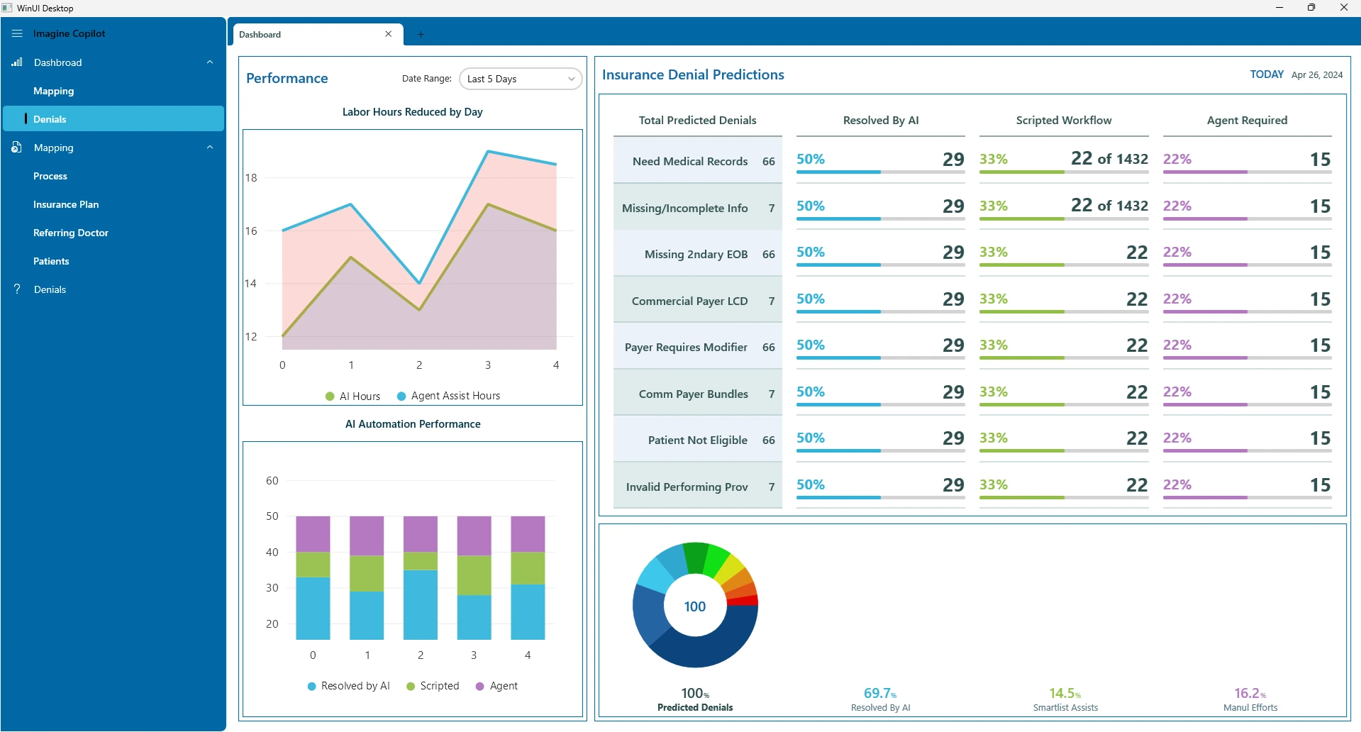 Developed a WinUI3 desktop app for managing patient insurance, handling claims, policies, reporting, and improving workflow efficiency.