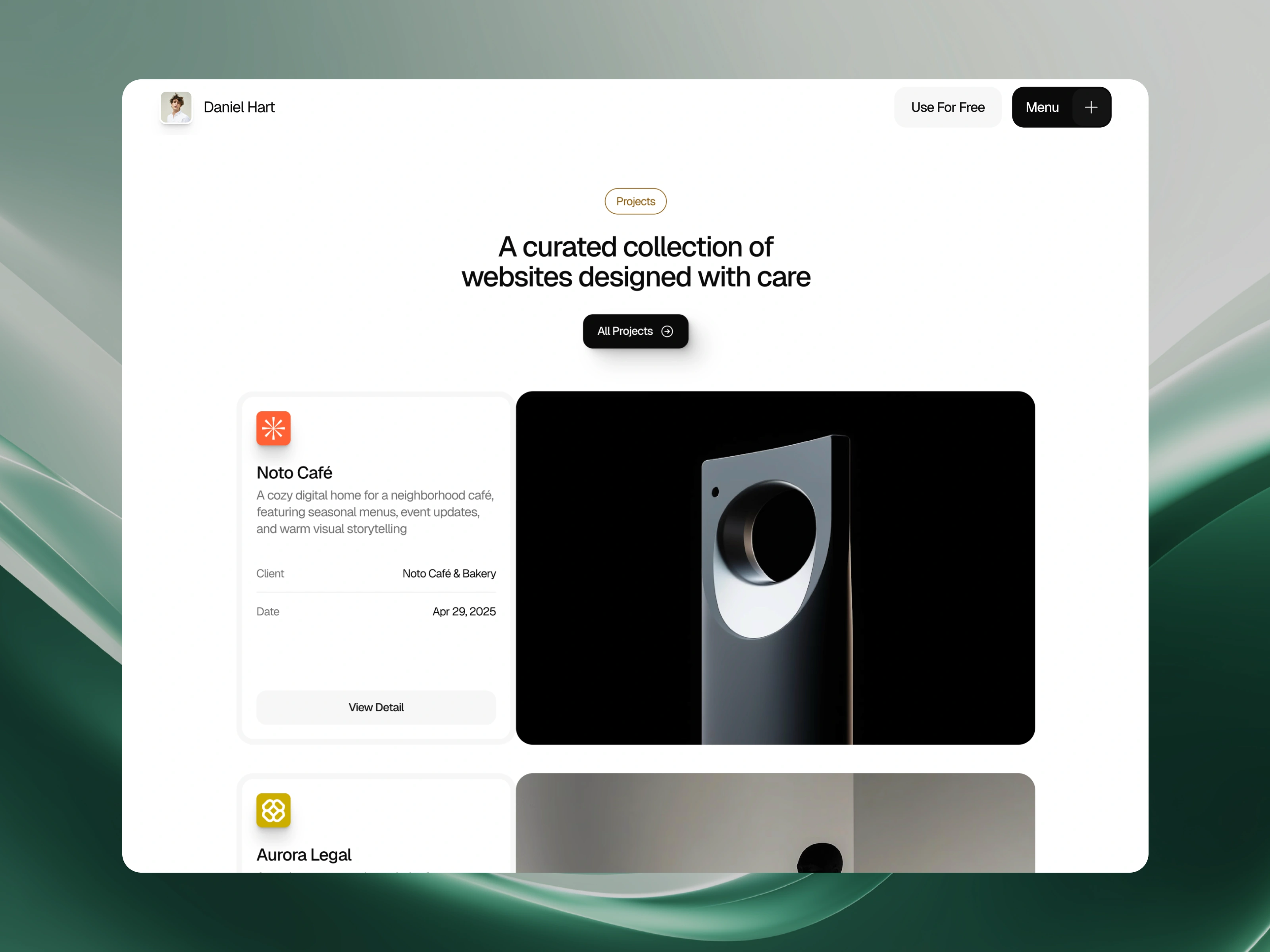 A premium, minimal portfolio template designed for web designers and creatives to showcase their work elegantly and professionally