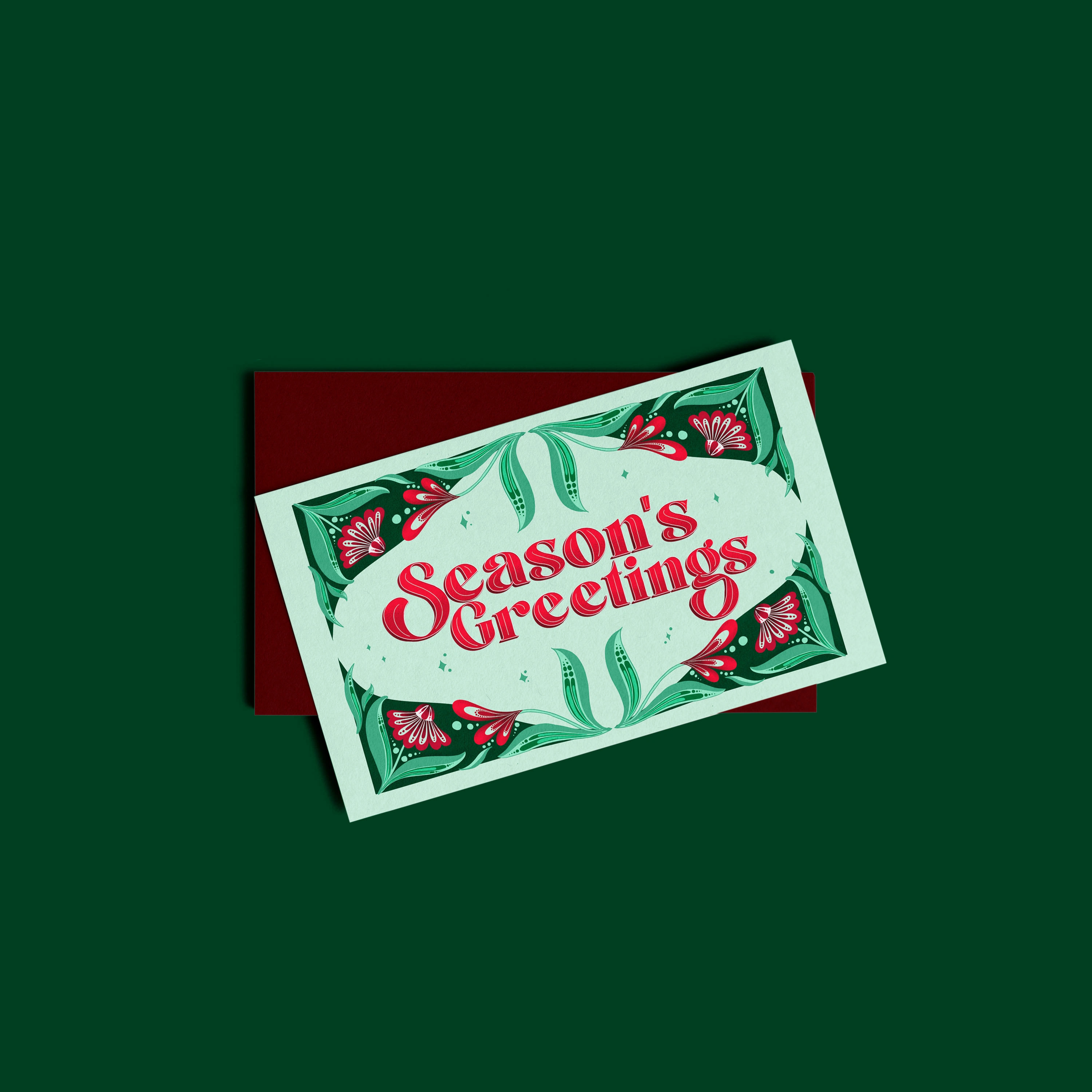 A greeting card designed for the 2022 holiday season, all of the details inside of the letting were hand drawn by the designer