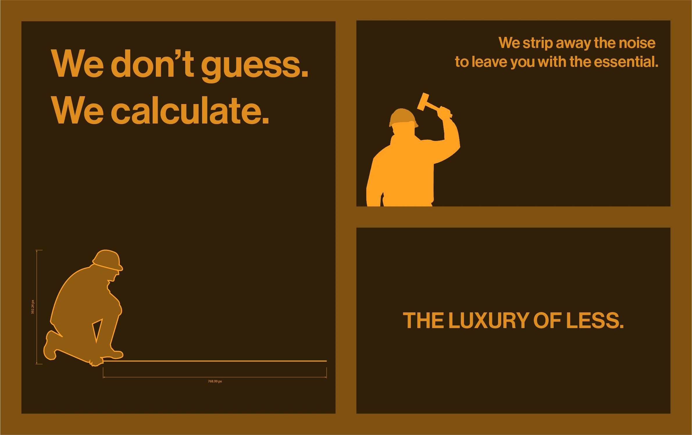 Visually, we stripped away decorative noise, introduced a rigorous X-variable typographic system, and built an identity that feels solid before you even step onto the site. The result is a brand that looks authoritative to high-end minimalists and turns structural integrity into a visible, premium luxury.