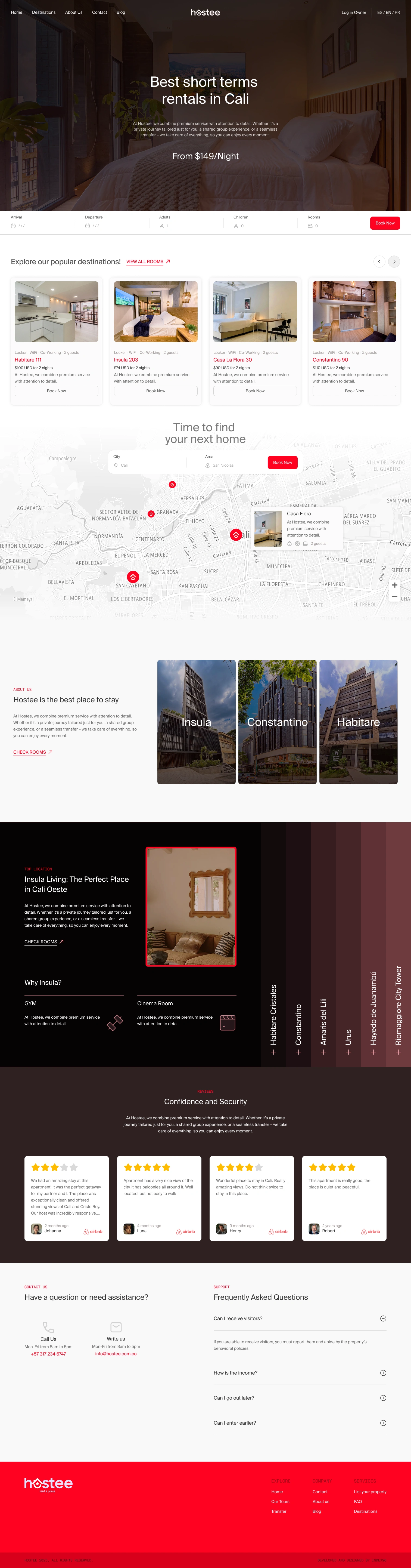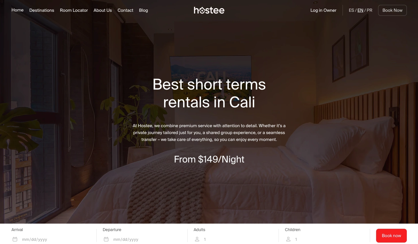 In May 2025, while staying at an Airbnb in my hometown of Cali, I met Manuel, the owner of Hostee, the company managing my stay. After a few conversations, he asked me to design and develop Hostee’s new website with two goals: modernize the brand and improve the booking experience.