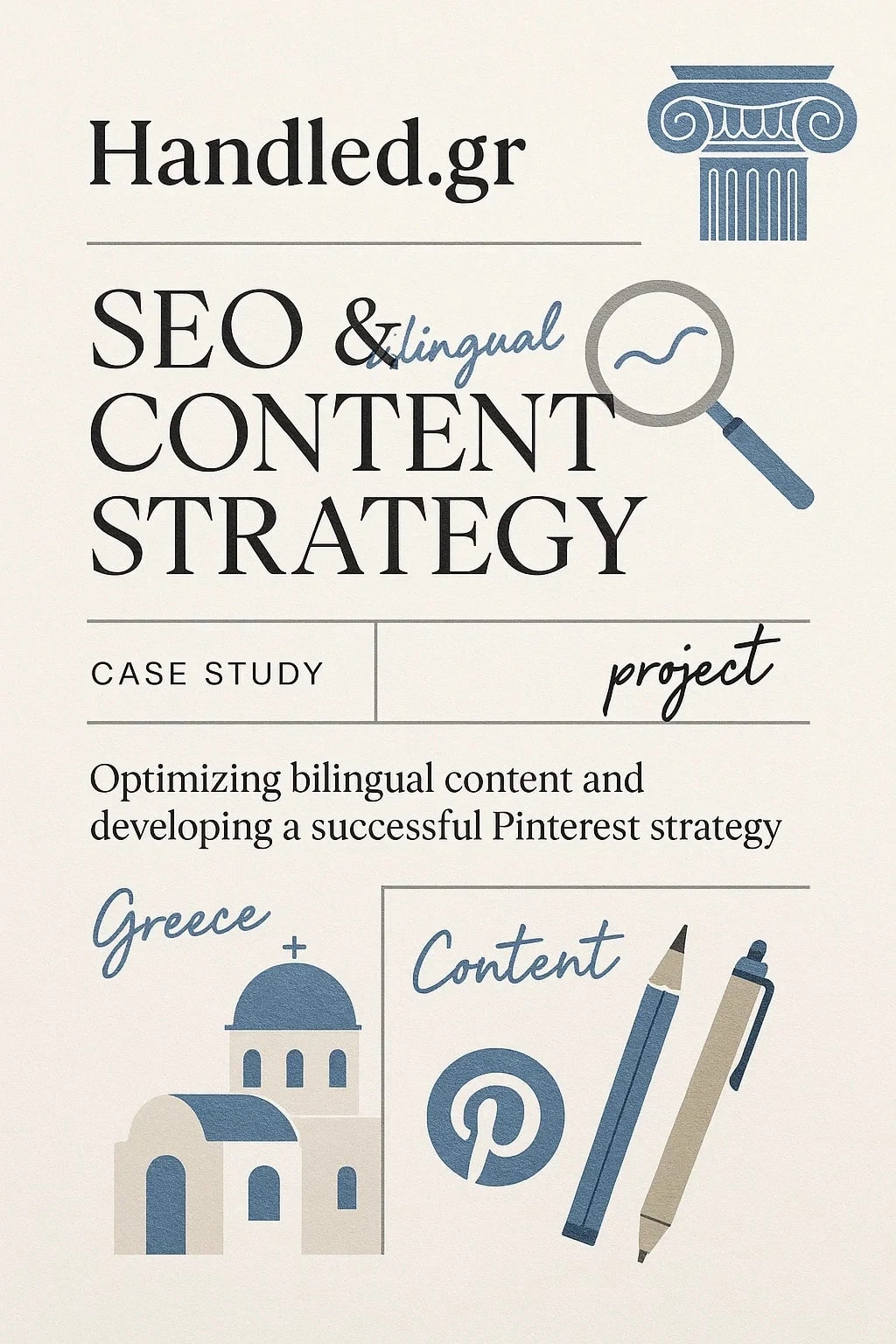 I created and executed a full SEO and content strategy for Handled.gr — a bilingual (Greek & English) estate services company based in Greece. The work included keyword research, technical audits, on-page SEO, local SEO, blog writing, and Pinterest setup for backlinking and content reach.