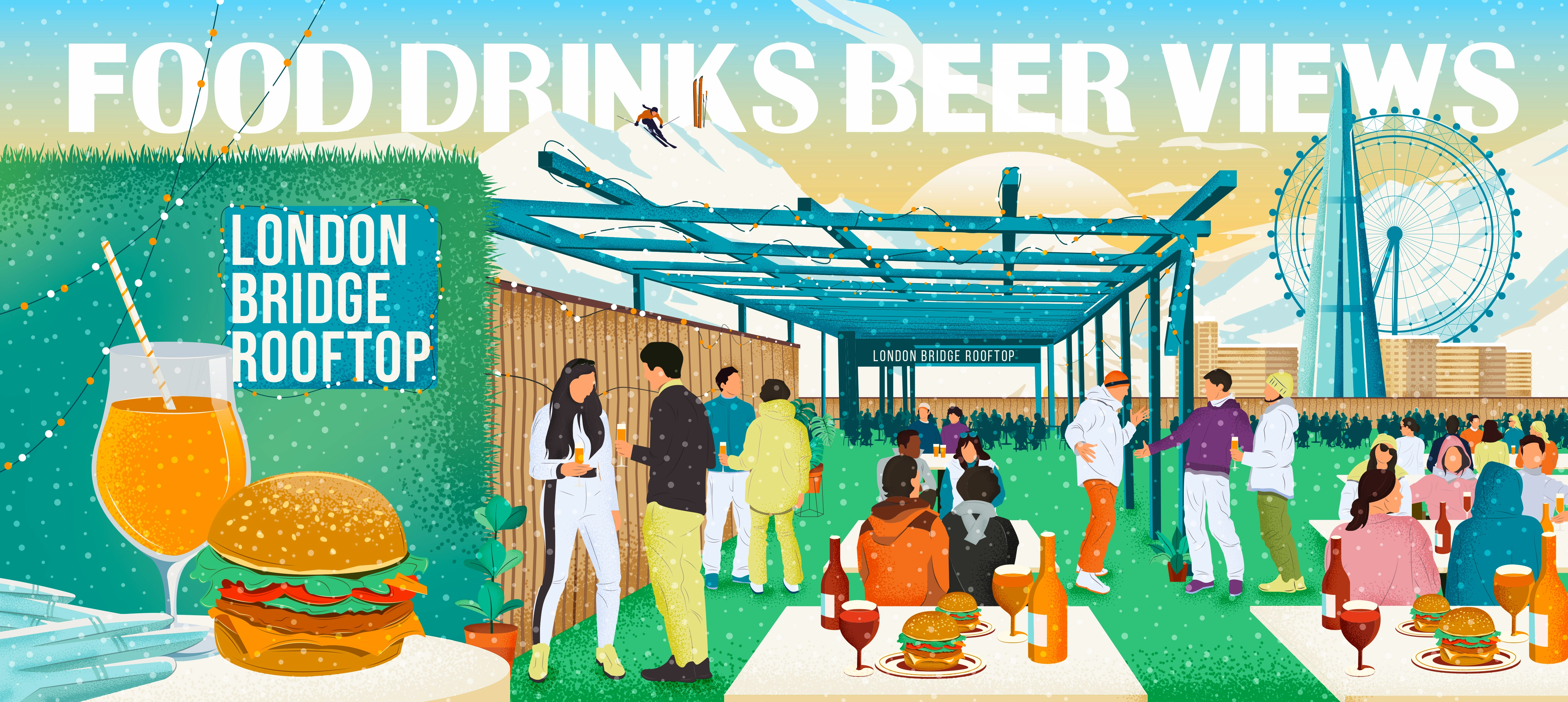 A little while back, I had the pleasure of working on an illustration for a seasonal Aprés Ski-themed installation at London Bridge Rooftop Bar. The piece brought to life a snowy London scene, featuring the iconic Shard and the London Eye, welcoming visitors to the festive Aprés Bar