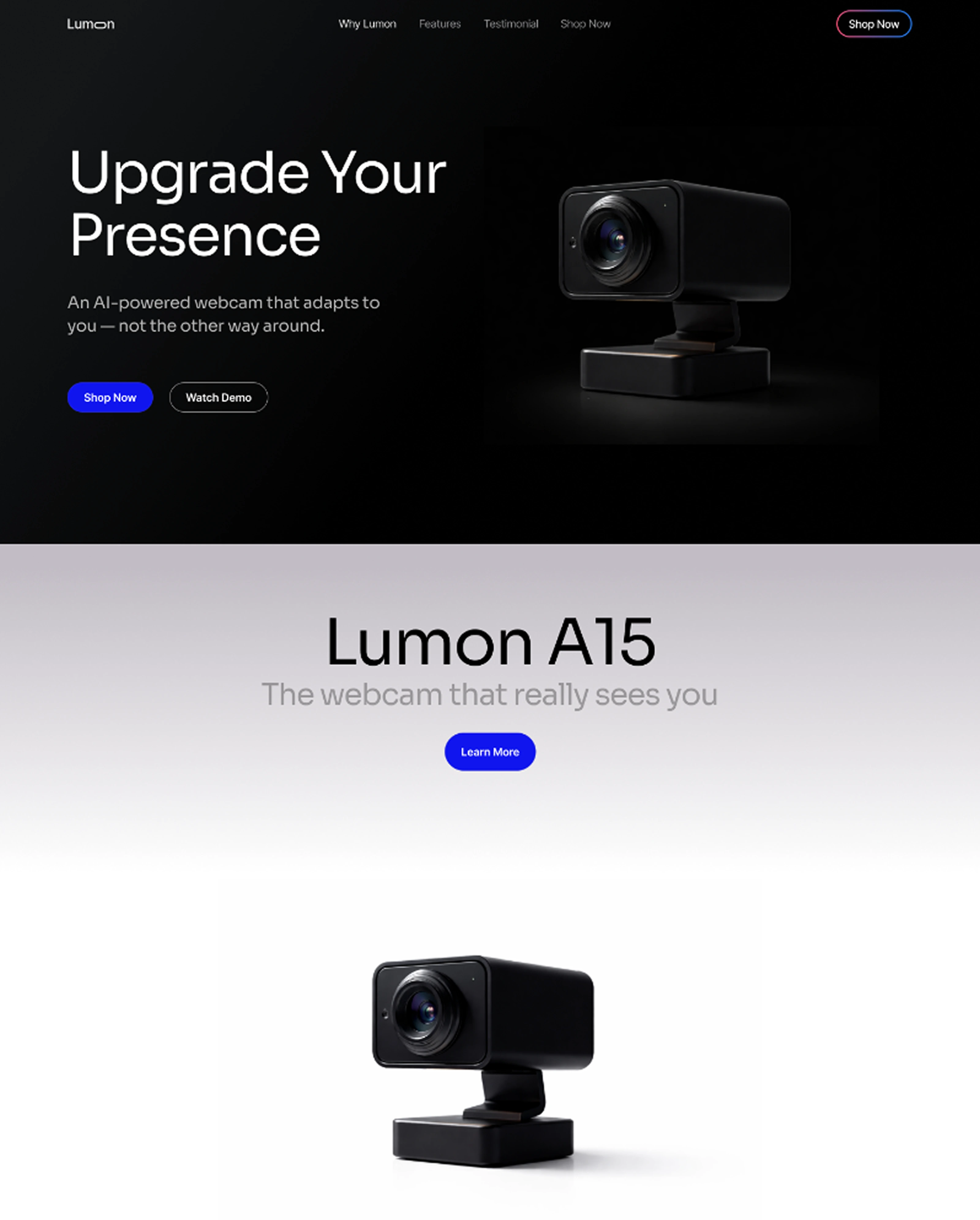 For the landing page, I focused on clarity and restraint. Simple layouts, generous white space, and confident copy. Instead of listing features aggressively, the page guides the user through a narrative. The problem with modern video calls, the role Lumon AI plays, and the improved experience it delivers.
