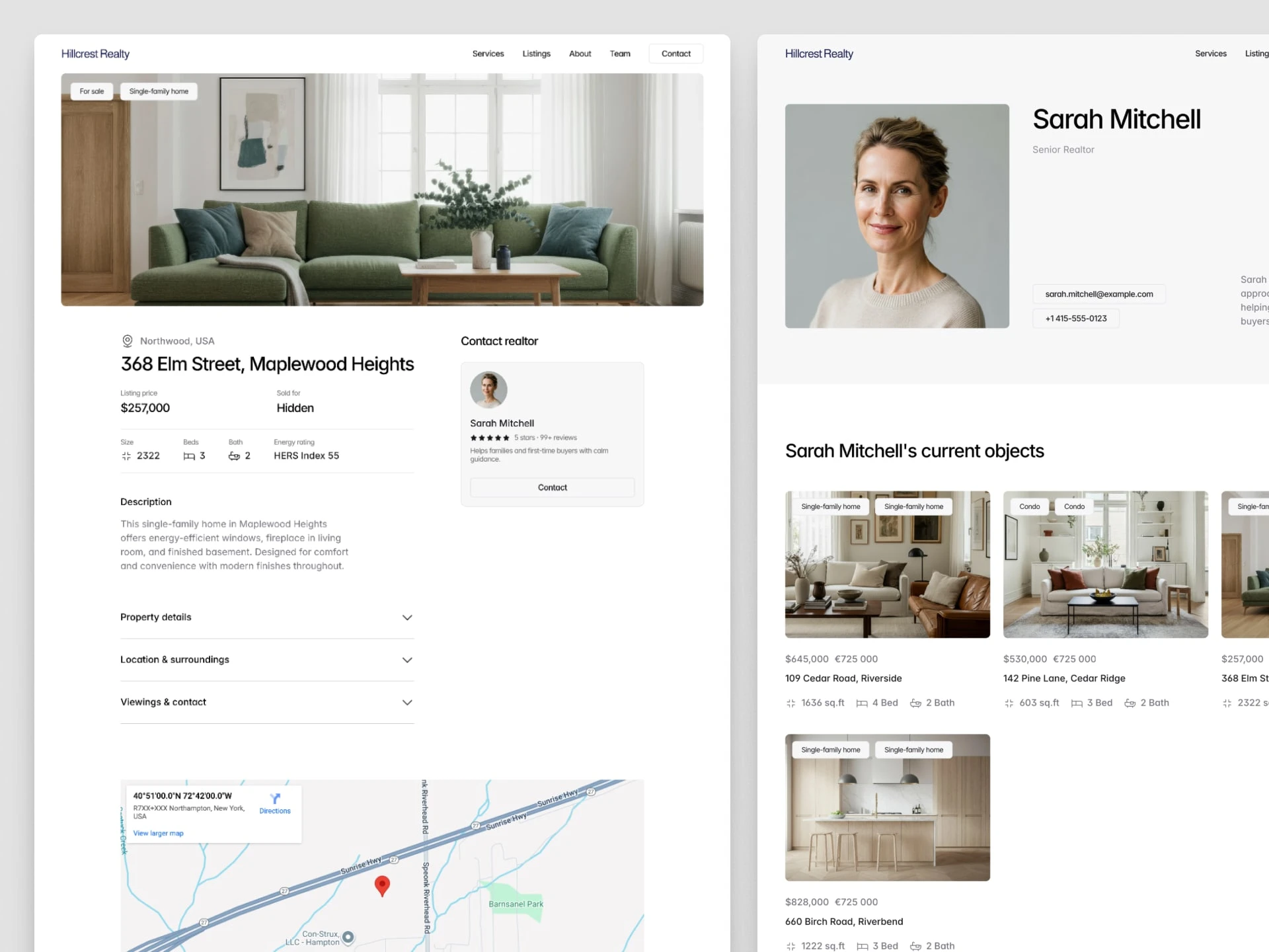 A clean, professional real estate template built for clarity and trust. Designed around key actions—buy, sell, rent, and valuation—with a calm, modern layout and clear information hierarchy.