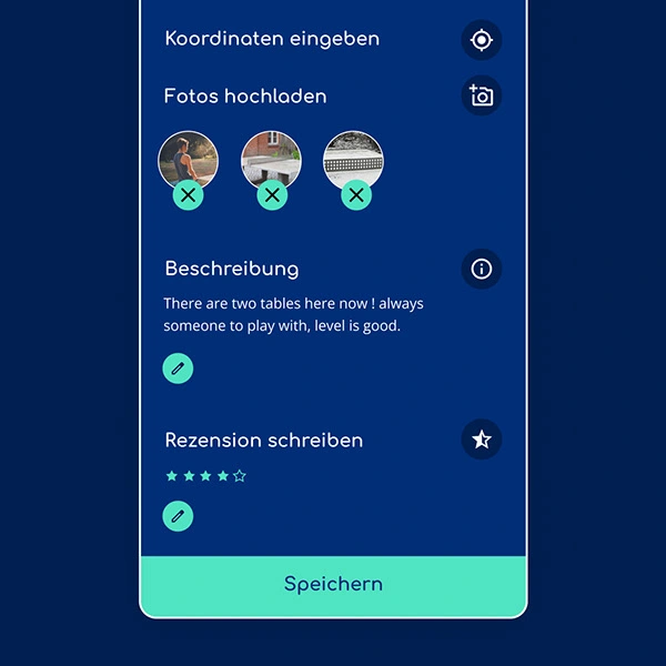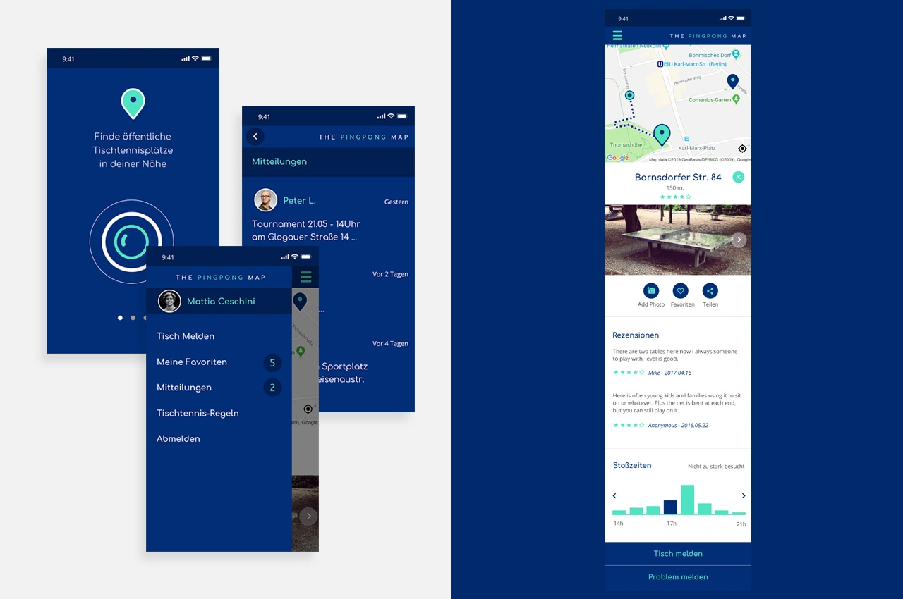 Concept for Mobile App to quickly and easily find a tennis table in your city