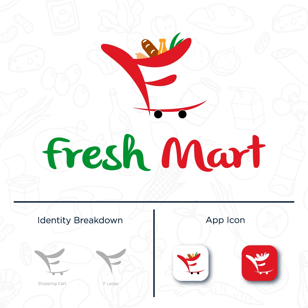 This is a fictional logo project designed for a grocery mart called Fresh Mart.