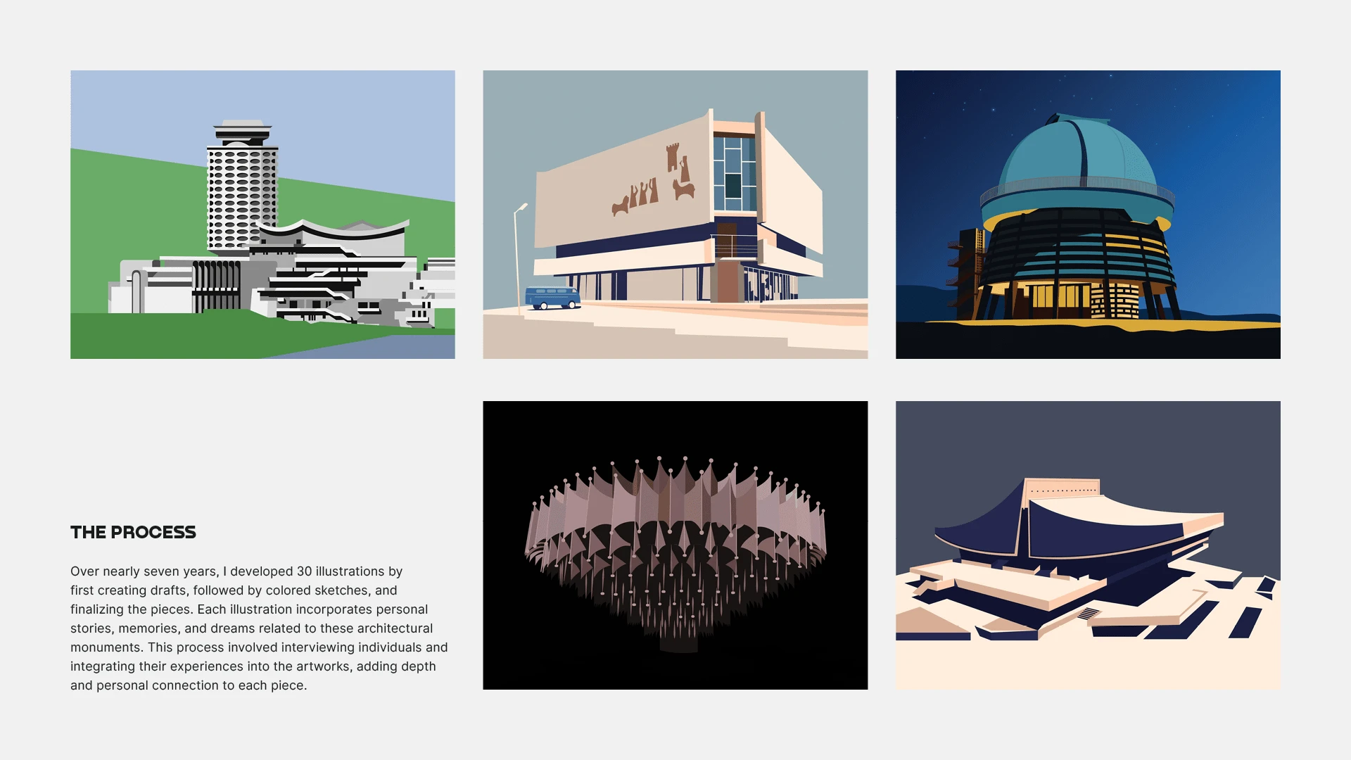 'Fragile Concrete' is a picture book of an illustration series dedicated to the modernist architecture in Armenia, created by graphic artist Nvard Yerkanian.