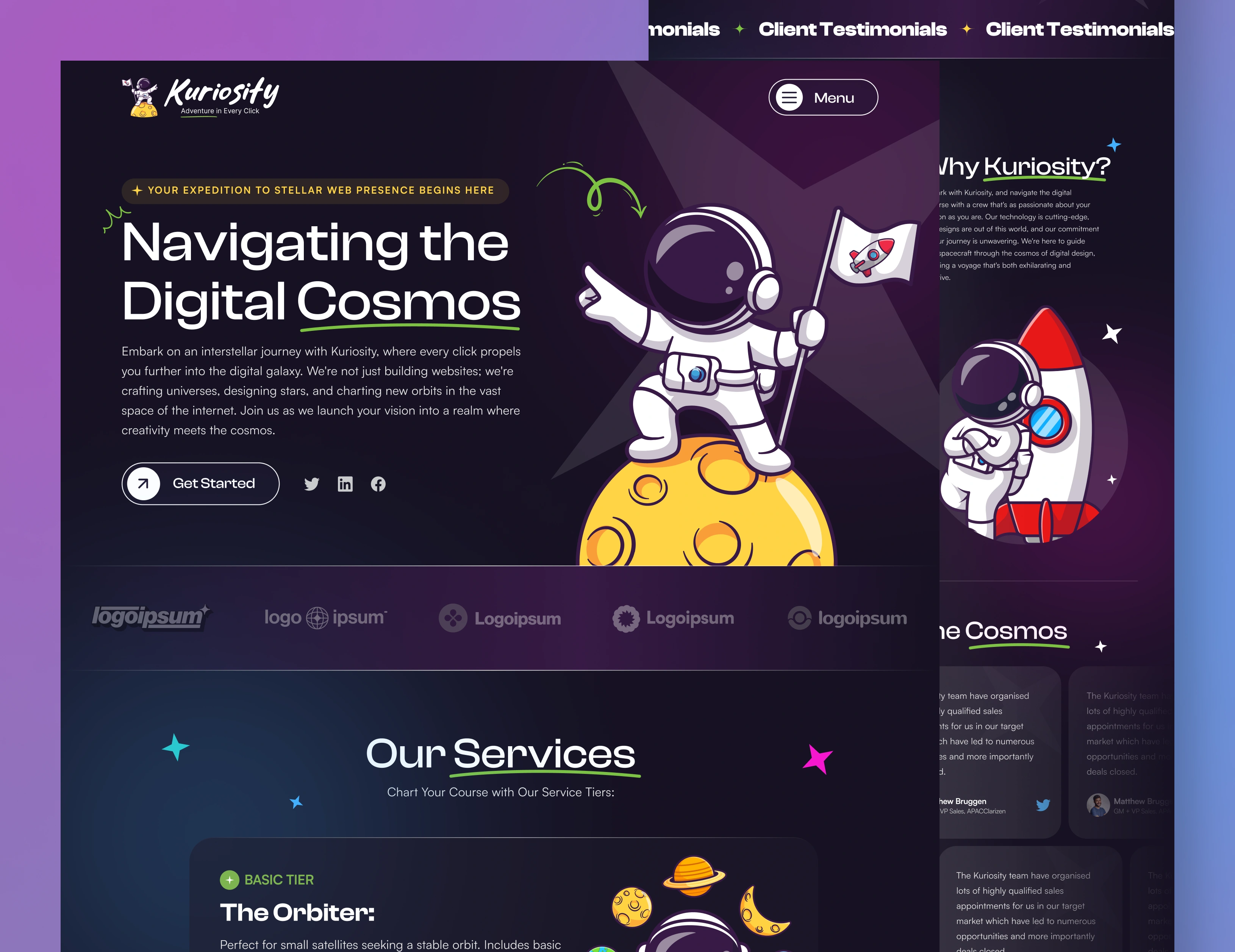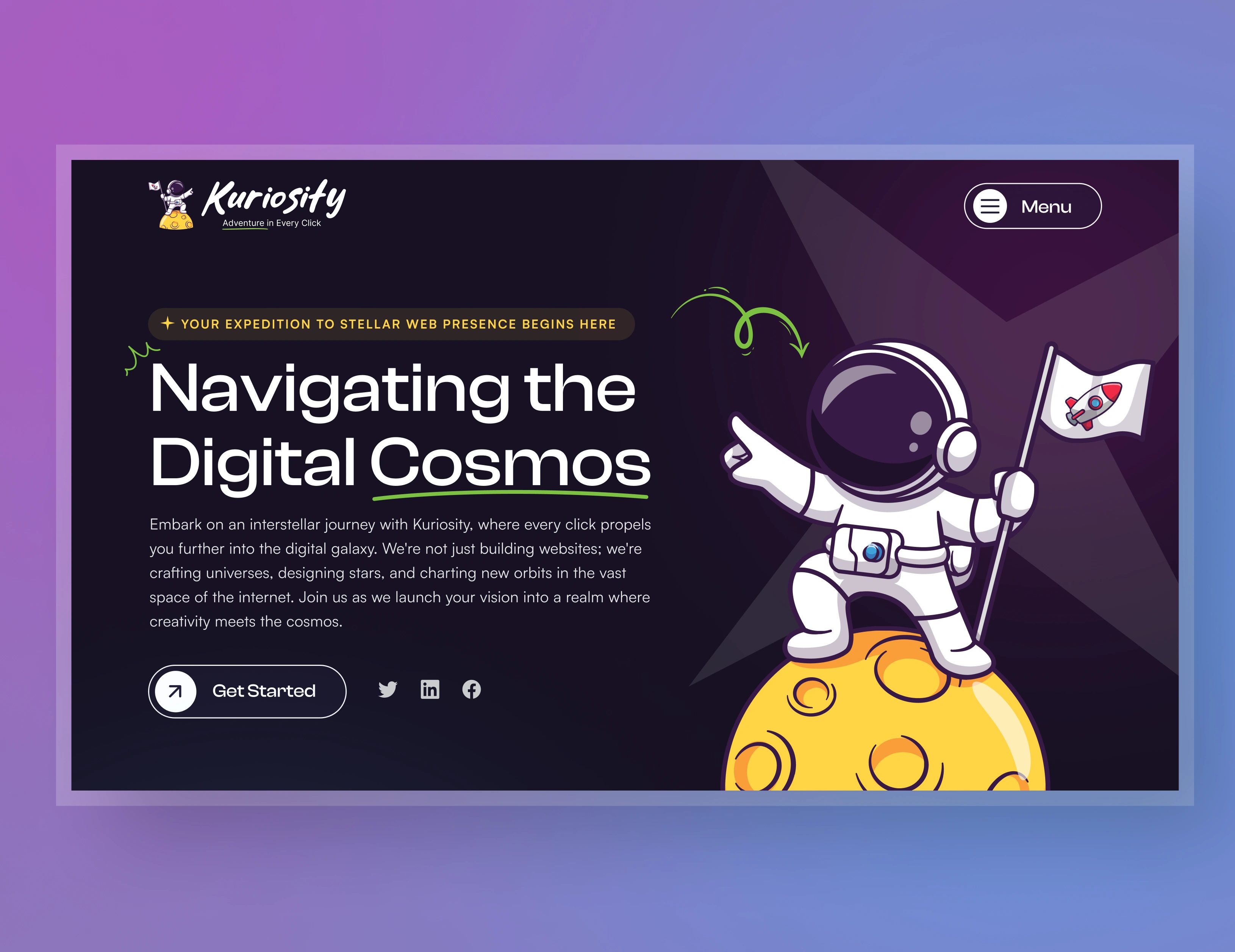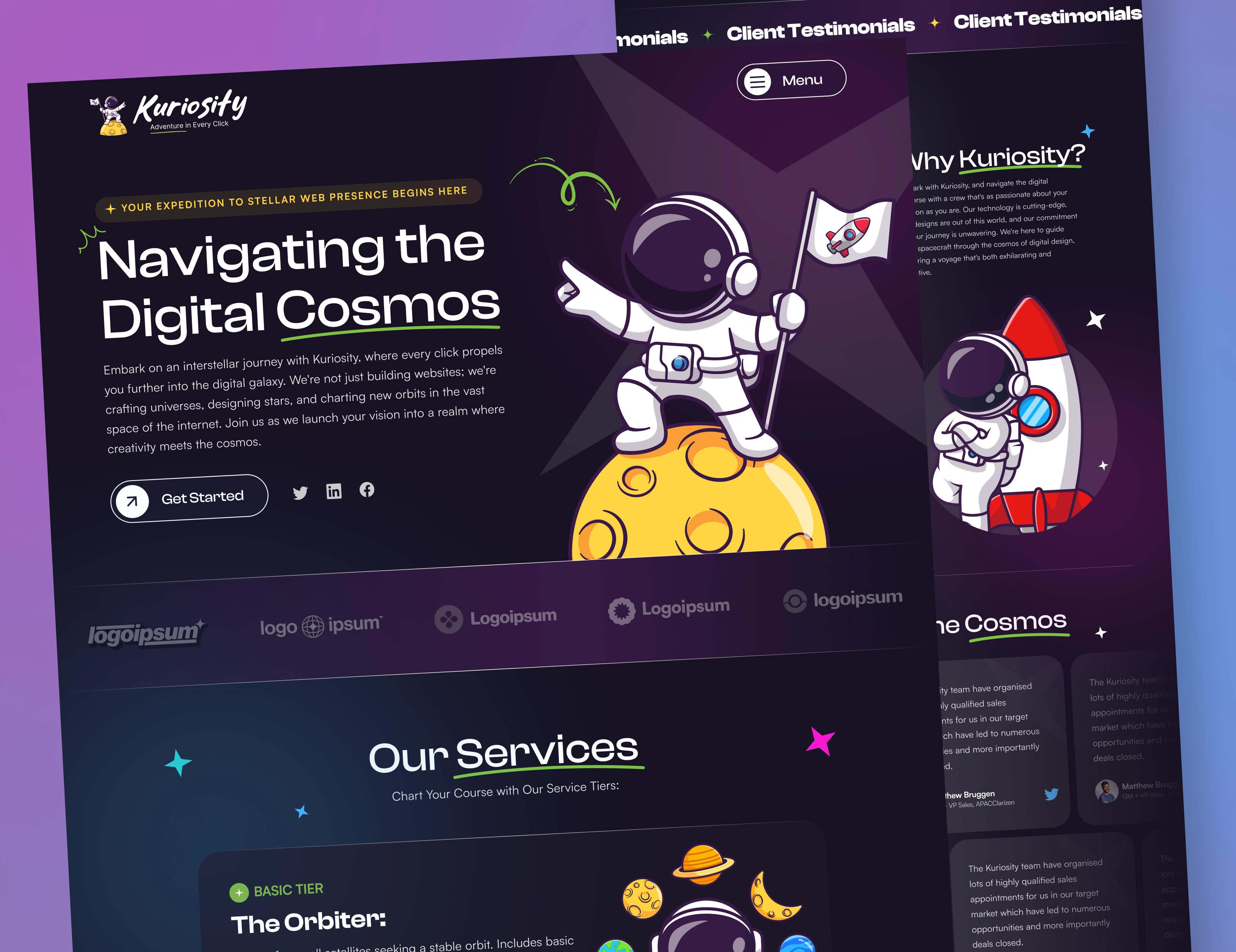 "Kuriosity" – a dynamic website project for an agency specializing in website development and graphic design. Crafted with creativity and precision.