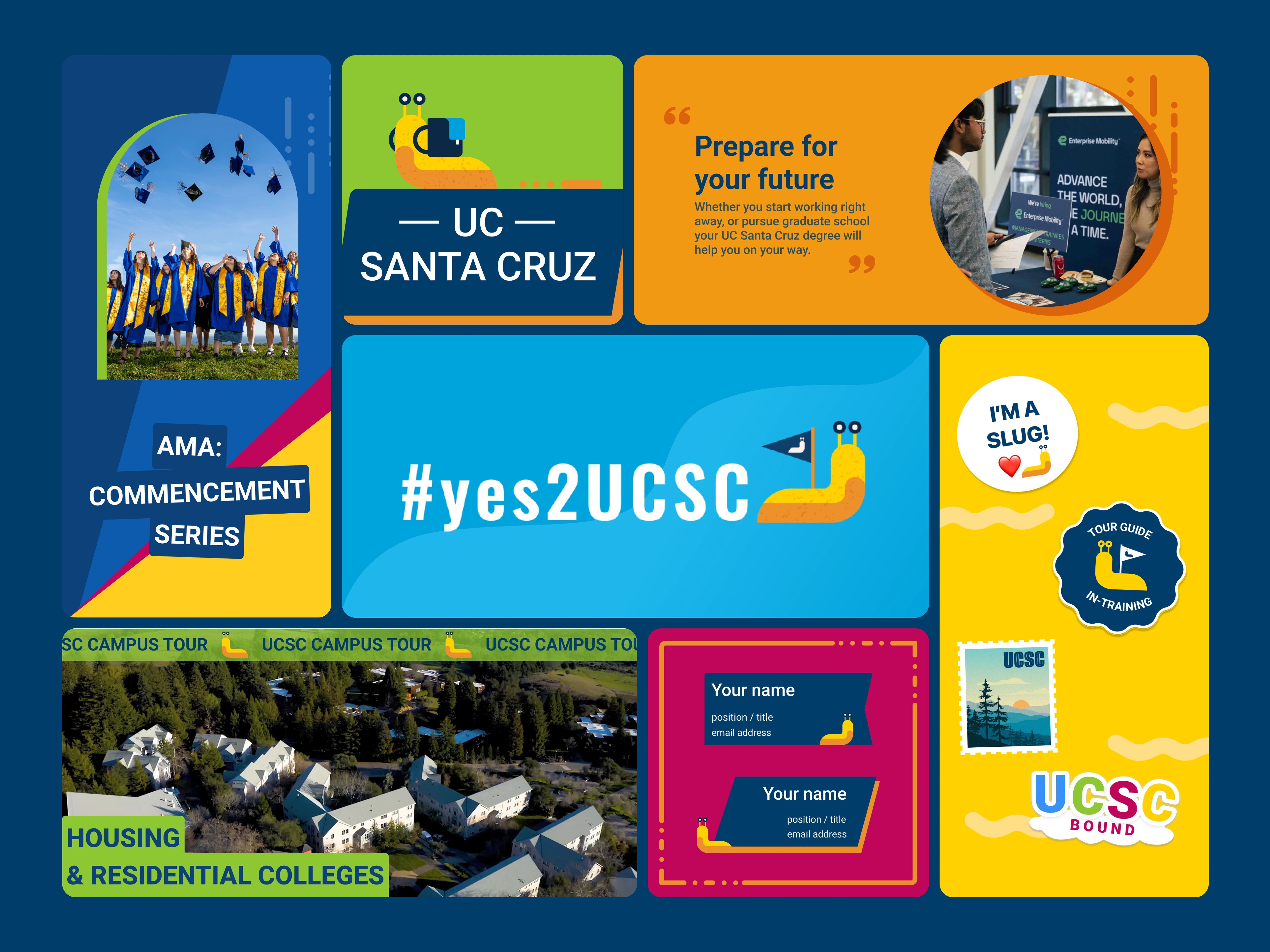 My work focused on translating admissions messaging into clear, approachable, and visually cohesive designs that could scale across platforms while staying consistent with UCSC’s brand system. Each campaign required balancing strong institutional branding with flexibility, ensuring assets could adapt to different audiences, formats, and timelines.