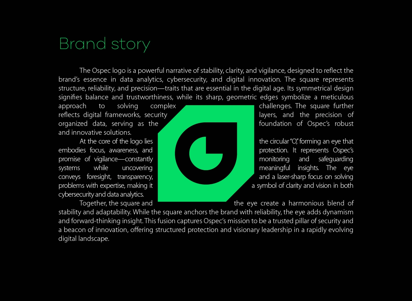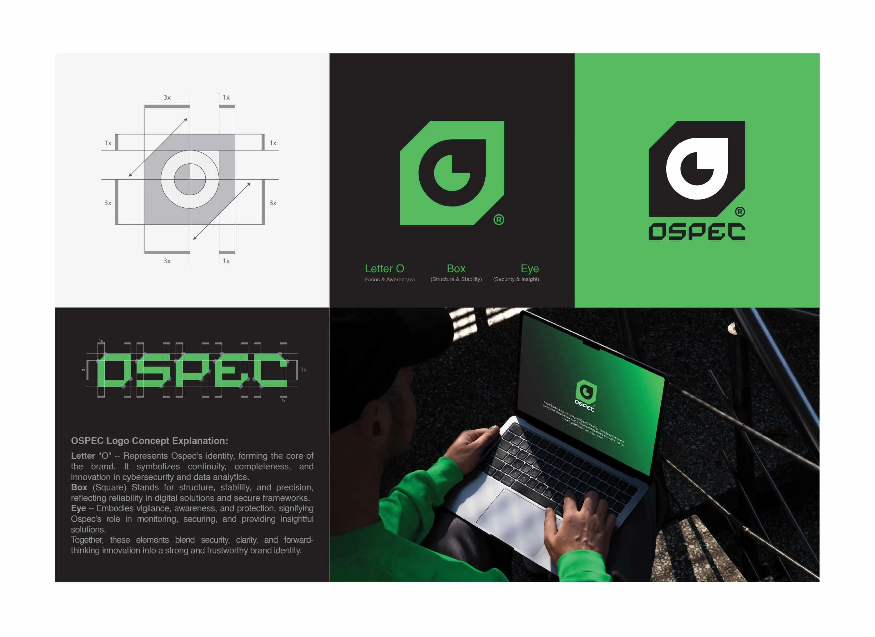 OSPEC is a forward-thinking brand positioned at the forefront of data analytics, cybersecurity, and digital innovation. The goal of this branding project was to create a visual identity that communicates a "powerful narrative of stability, clarity, and vigilance". The resulting system anchors the brand as a reliable protector of digital systems and a leader in data-driven solutions.