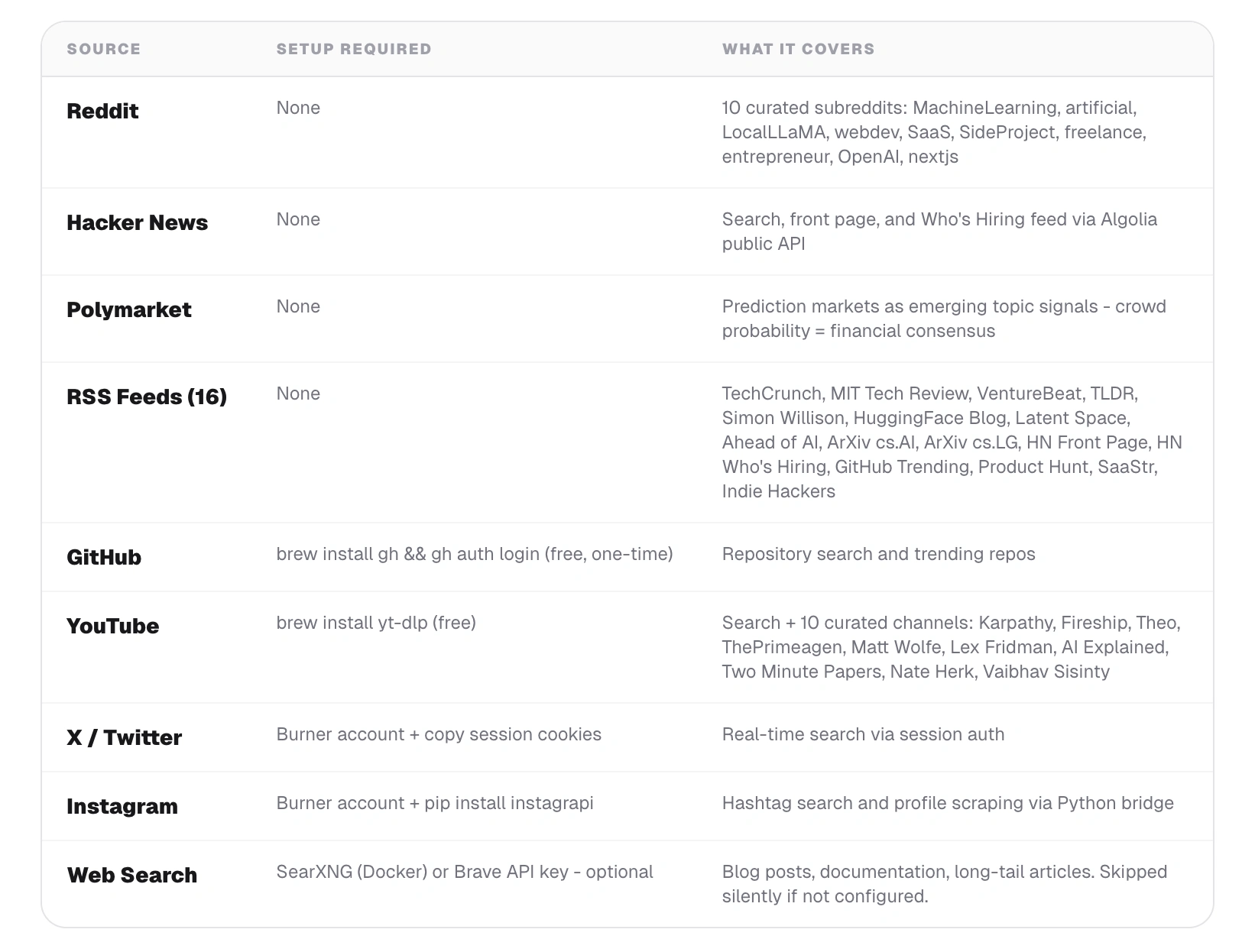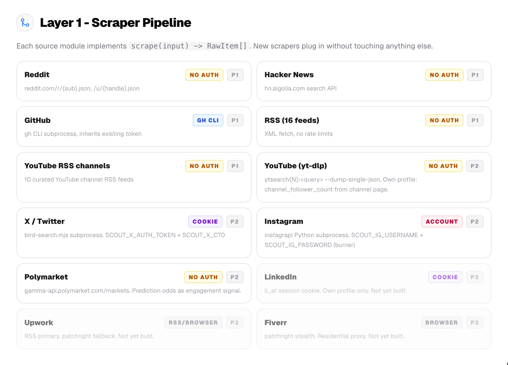 claude mcp add scout -- npx pathrix-scoutbrew install gh && gh auth login. Everything else is optional.npx pathrix-scoutPosted Apr 24, 2026