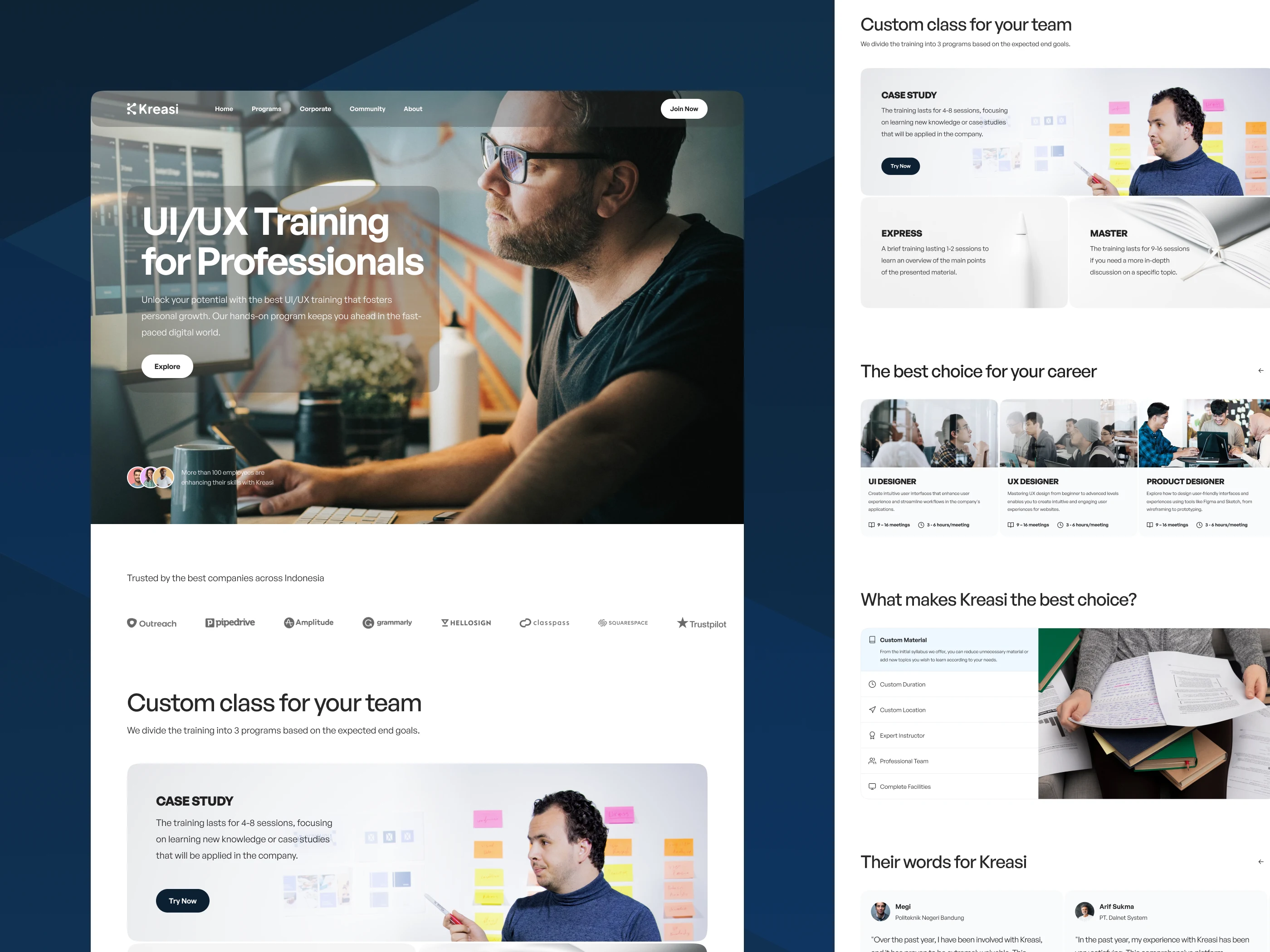 This project was designed for Kuasai, a leading IT training platform in Indonesia, with a timeline spanning 2 months. The design focused on delivering a clean, user-centric platform that effectively communicates Kuasai's expertise and training services.