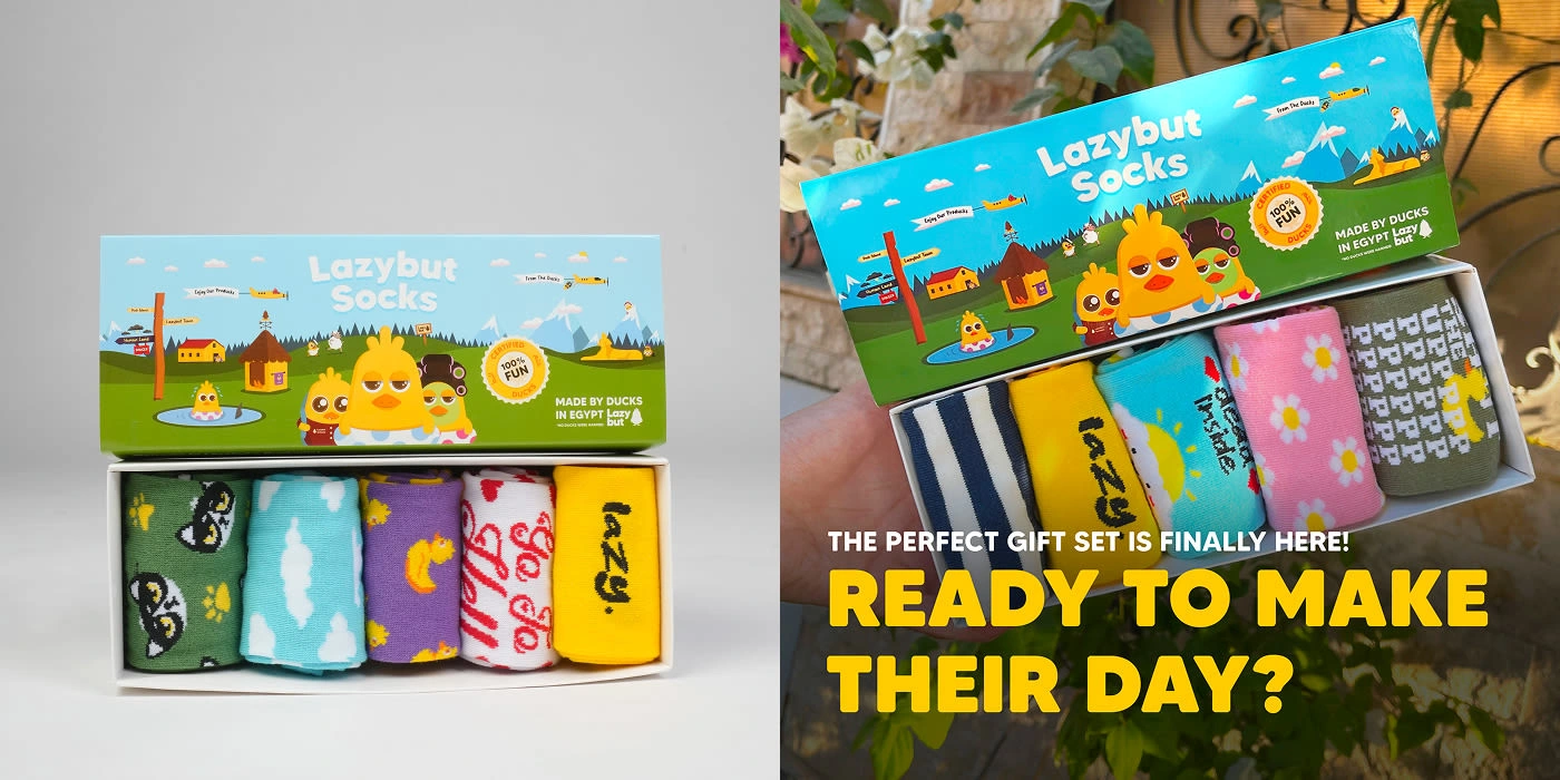 Lazybut is an Egyptian lifestyle brand built around one very lazy duck called Mosaad. We make socks, gifts, and collectibles that mix humor, design, and storytelling.