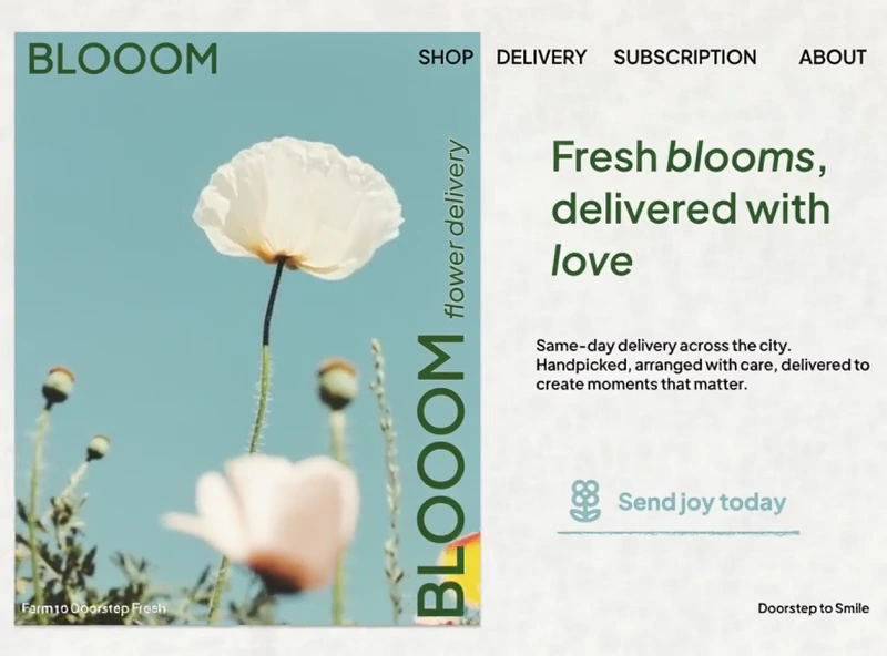 BLOOOM is a modern flower delivery service that bridges the gap between traditional floristry and contemporary e-commerce. The brand was created to transform flower delivery from a transactional experience into an emotional, memorable journey that celebrates life's meaningful moments.